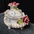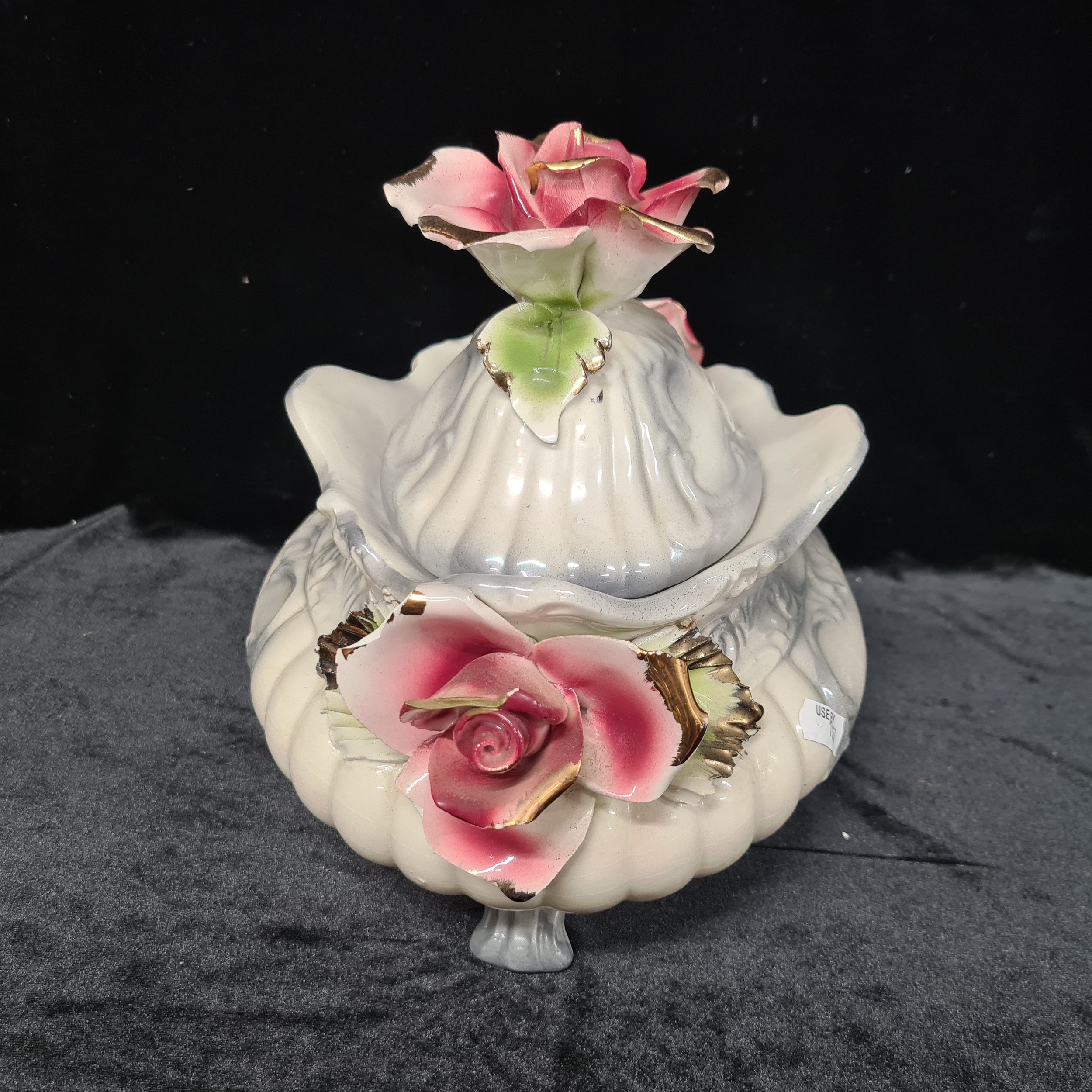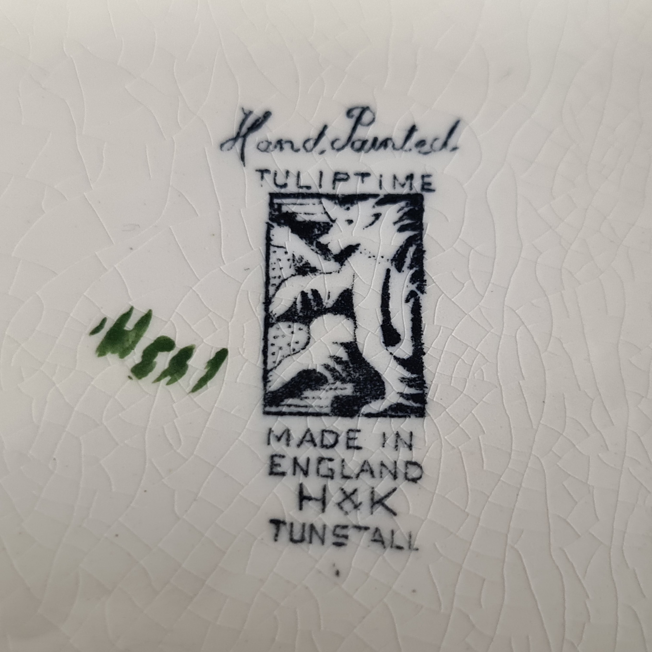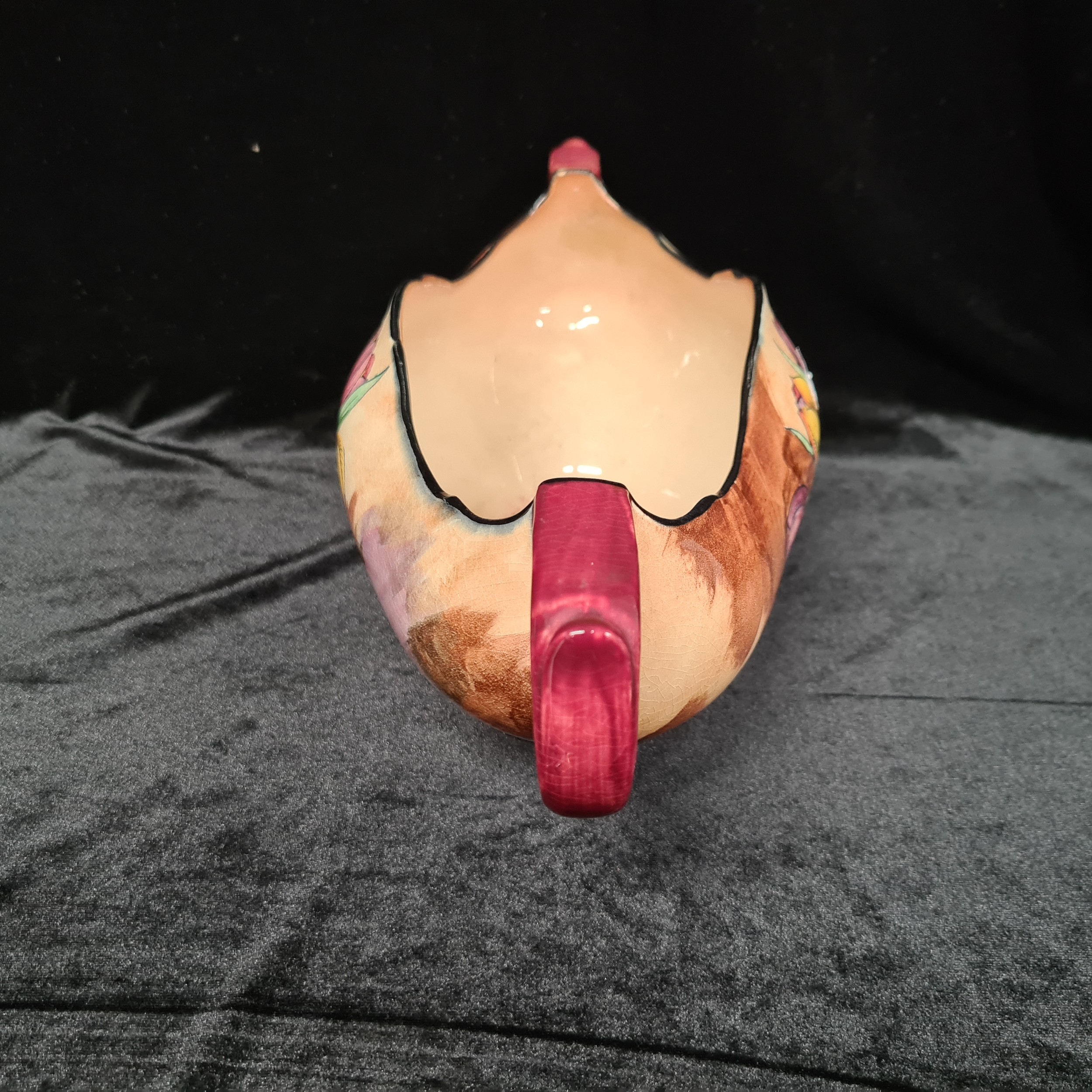 Four vintage ceramic items including an Art Deco Hollinshead & Kirkham two handled flower bowl in the "Tuliptime" pattern, circa 1939, in great condition. Selling for £120 on PremierAntiques.co.uk and three other pieces.