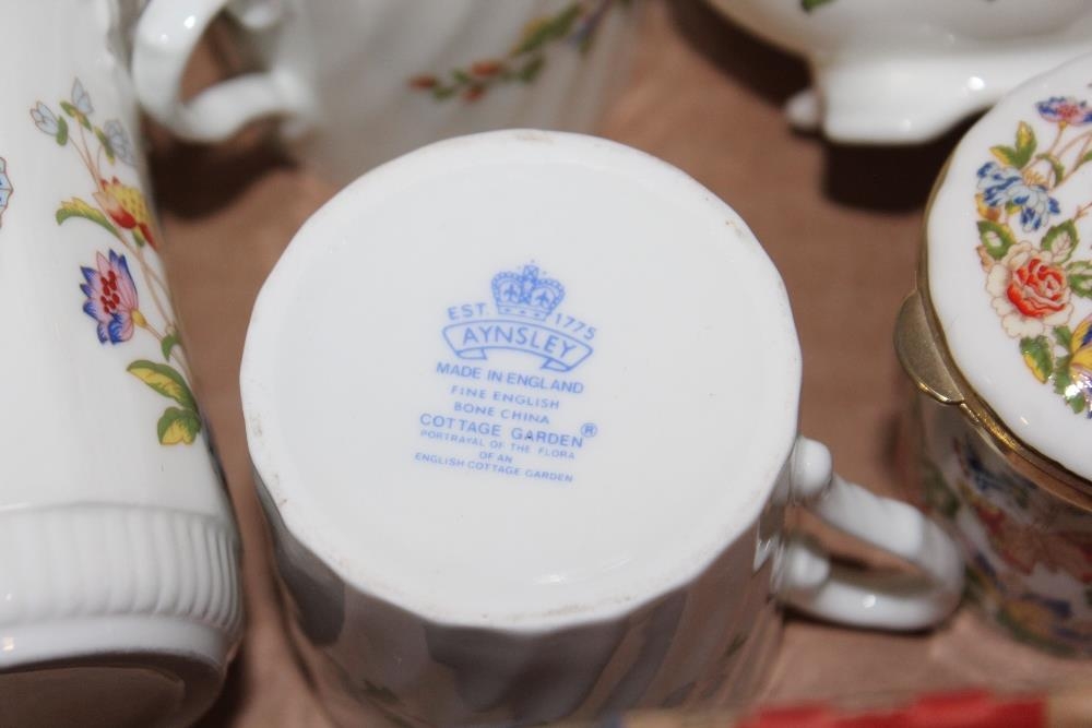 A SMALL TRAY OF AYNSLEY COTTAGE GARDEN CERAMICS TO INCLUDE COFFEE CUPS AND SAUCERS