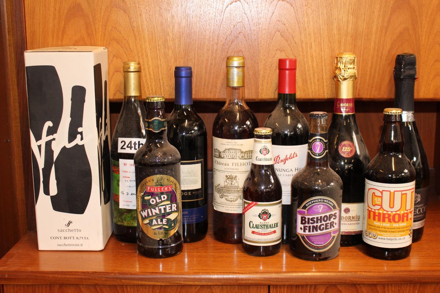 Collection of assorted Wines and Beers inc. Koonunga Hill Shiraz, Chateau Filhot etc