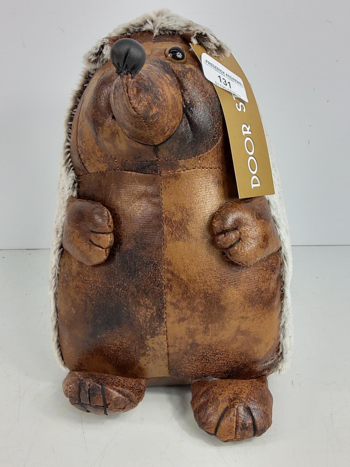 Faux leather door stop in the form of a hedgehog