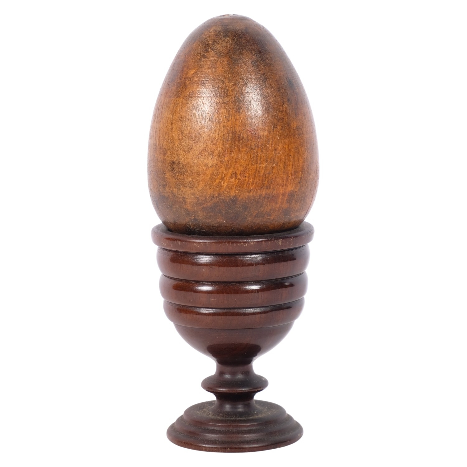 An Antique treen egg cup, and younger carved wooden egg, cup H7cm