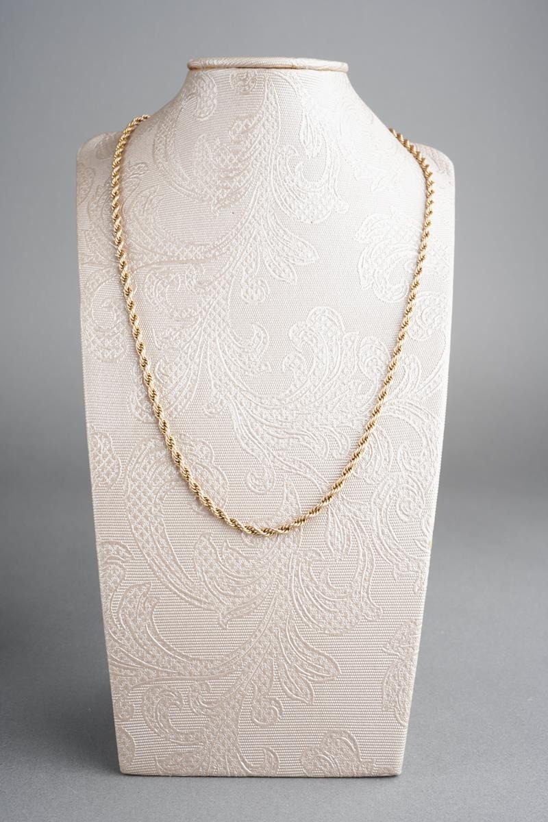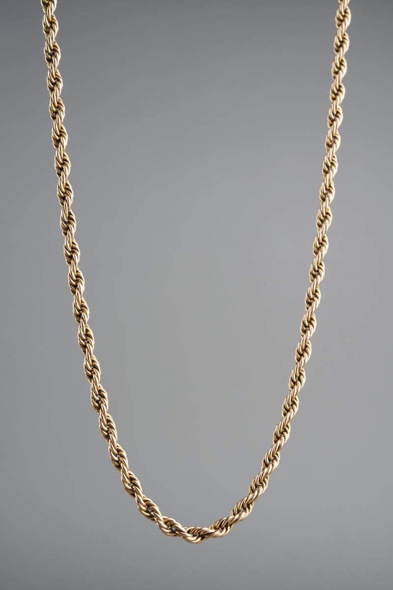 A 9ct gold rope twist necklace. Stamped 9ct to chain, approx length 442mms, approx gross weight 4.8 grams.