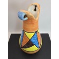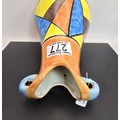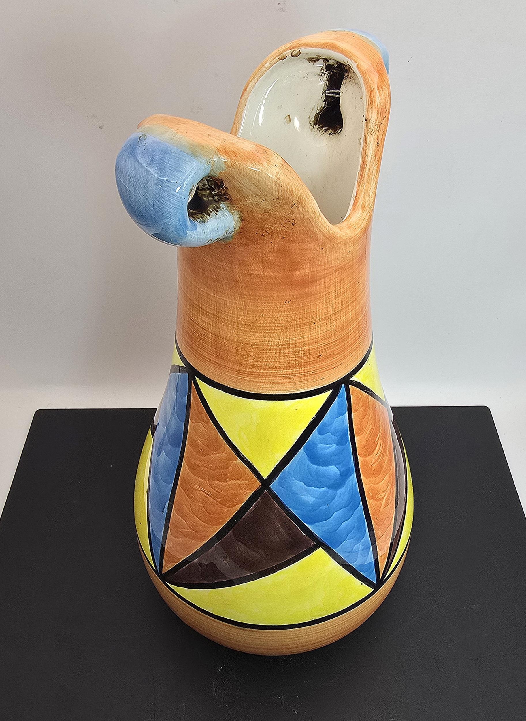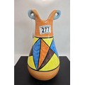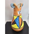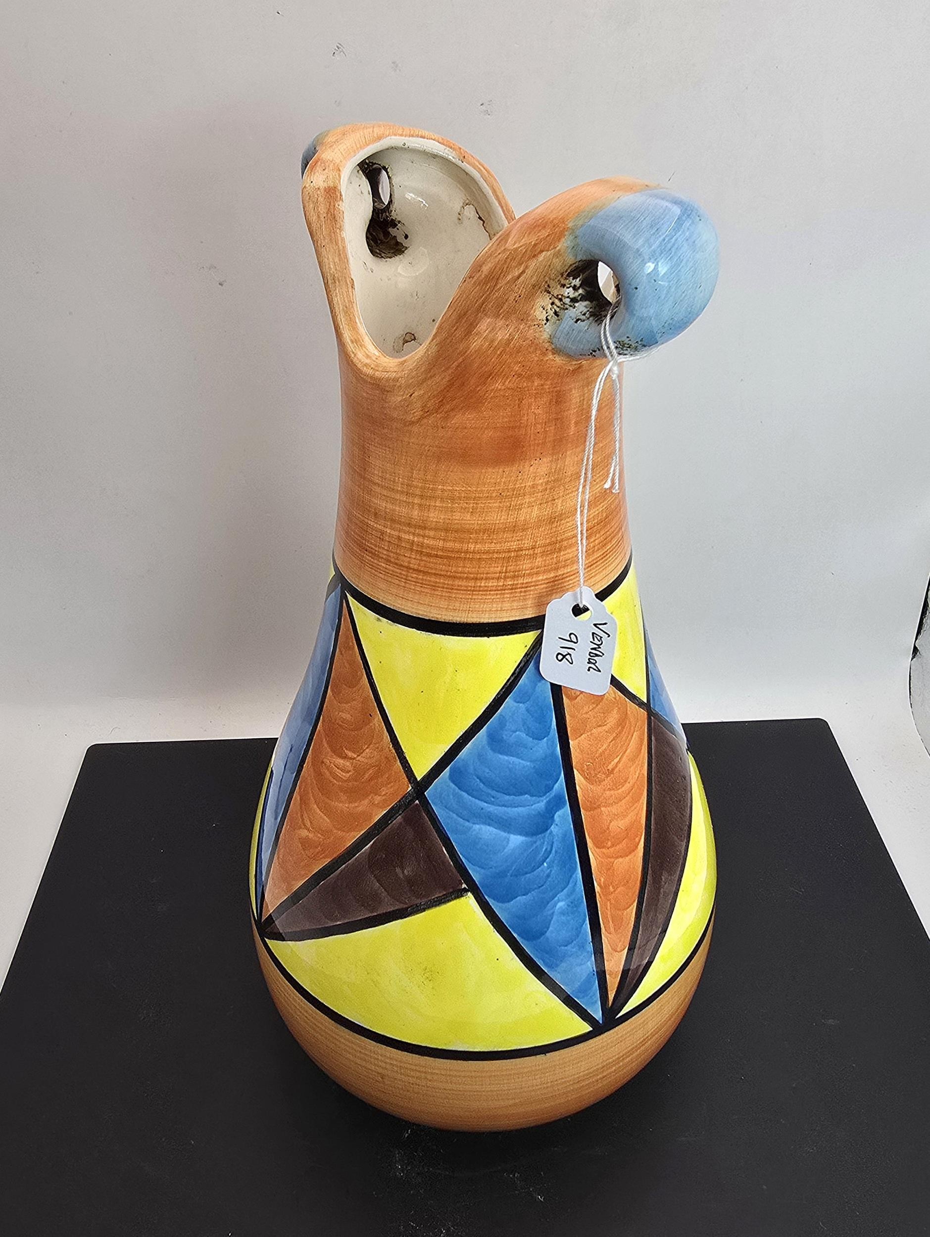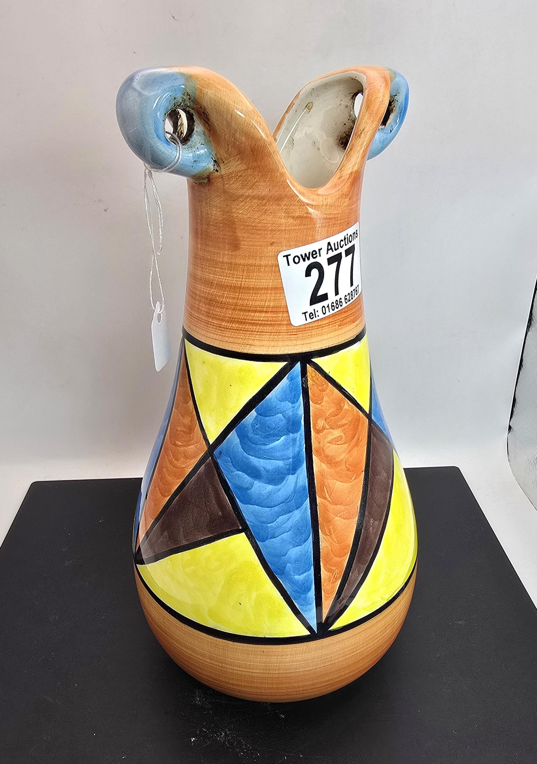 An attractive vintage vase having a vibrant geometric hand painted design, the vase displays nicely and is in good condition with no damage with no repairs, the vase is stamped, Bizarre Clarice Cliff Newport Pottery England has a height of 25cm with a diameter of 13cm.