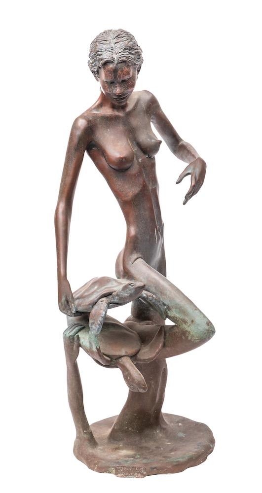 *Tom Bowers (1936-2021), reflection of a nude female and turtle, signed to the bronze Tom Bowers and dated 1995, 65cm high.