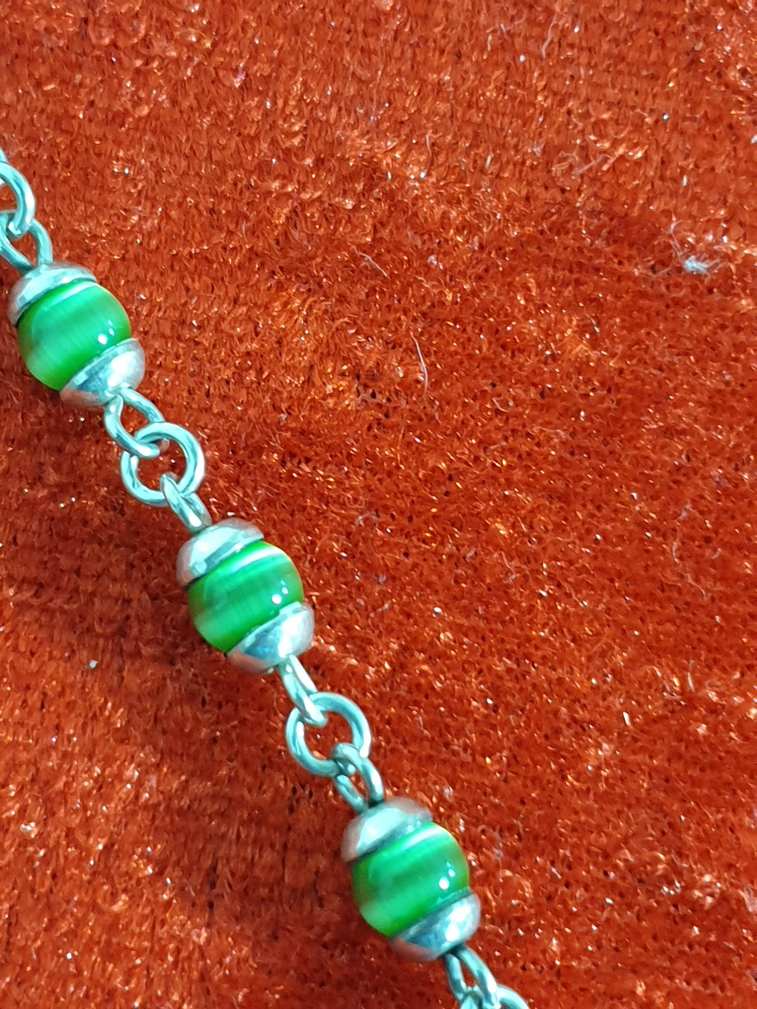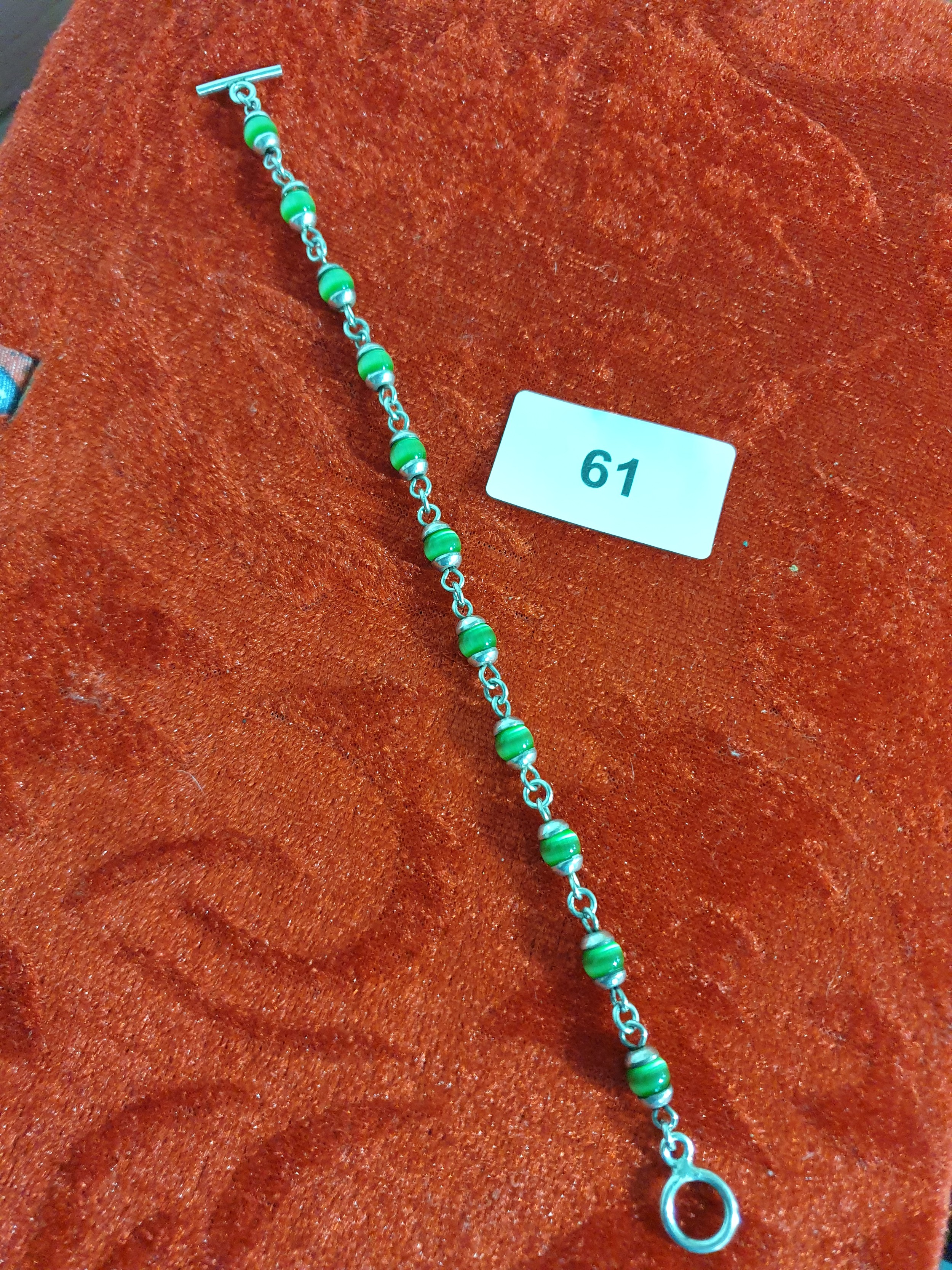 Stunning Silver And Green Stone Bracelet With T Bar Fixing