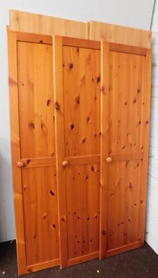 Triple pine effect wardrobe with solid pine doors, flatpacked, complete but sold as seen