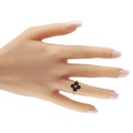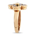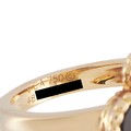 An 18K Yellow Gold Van Cleef & Arpels Alhambra Onyx Diamond Ring. The ring is designed with a polished band topped with an Alhambra motif with a black onyx inlay and a bezel-set round diamond center. Tracing the four-leaf shape is the Alhambra's distinctive beaded contour. The ring's top dimensions measure 14mm by 14mm. In excellent condition, accompanied by papers and the manufacturer's box. Ring size: H. Total weight: 6.4 grams.*This item is held at Cadmore USA Office in Pennsylvania, USA and will be shipped from there*