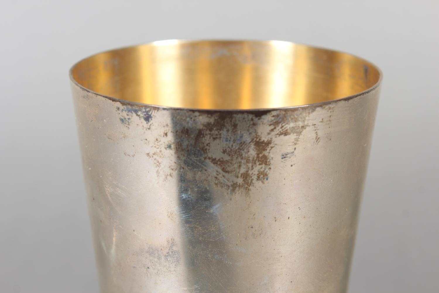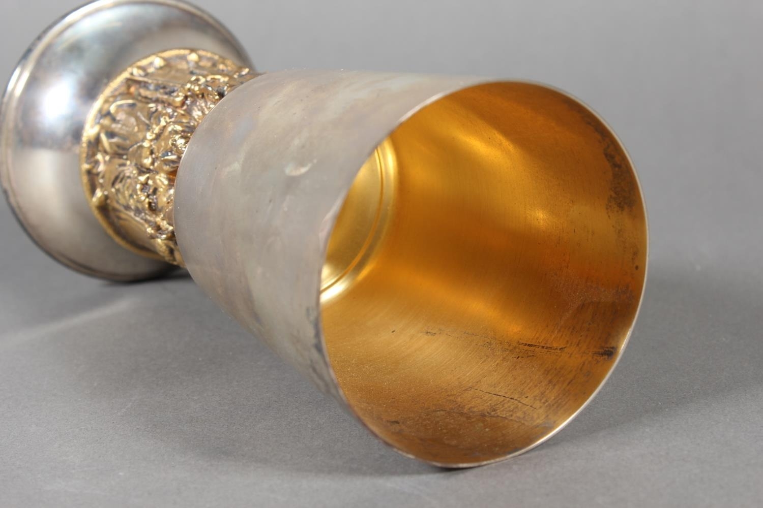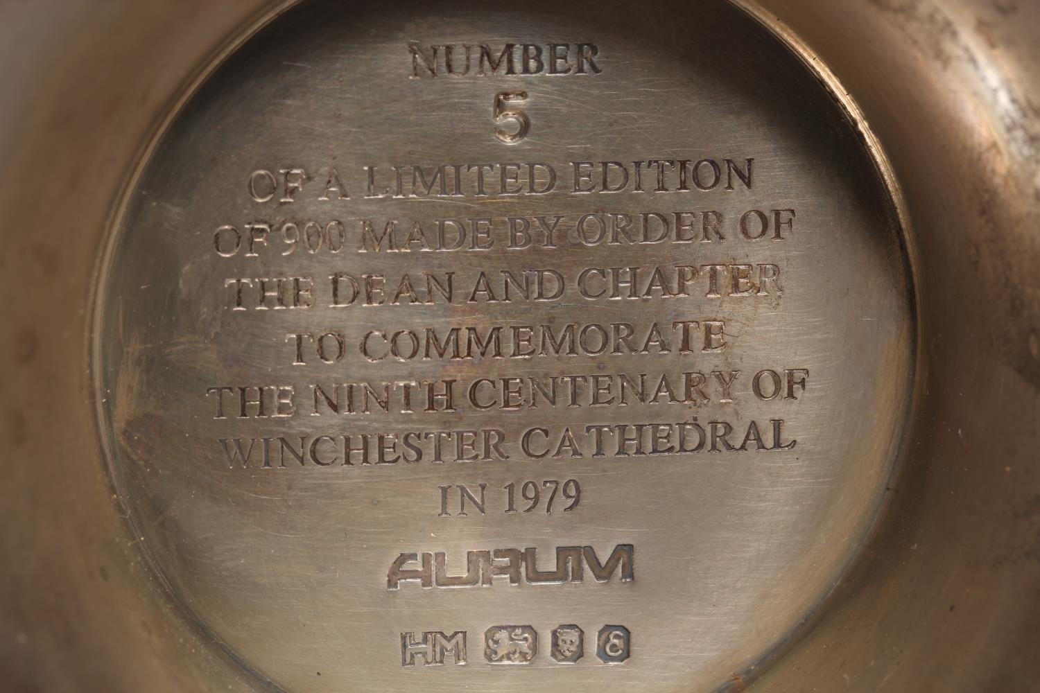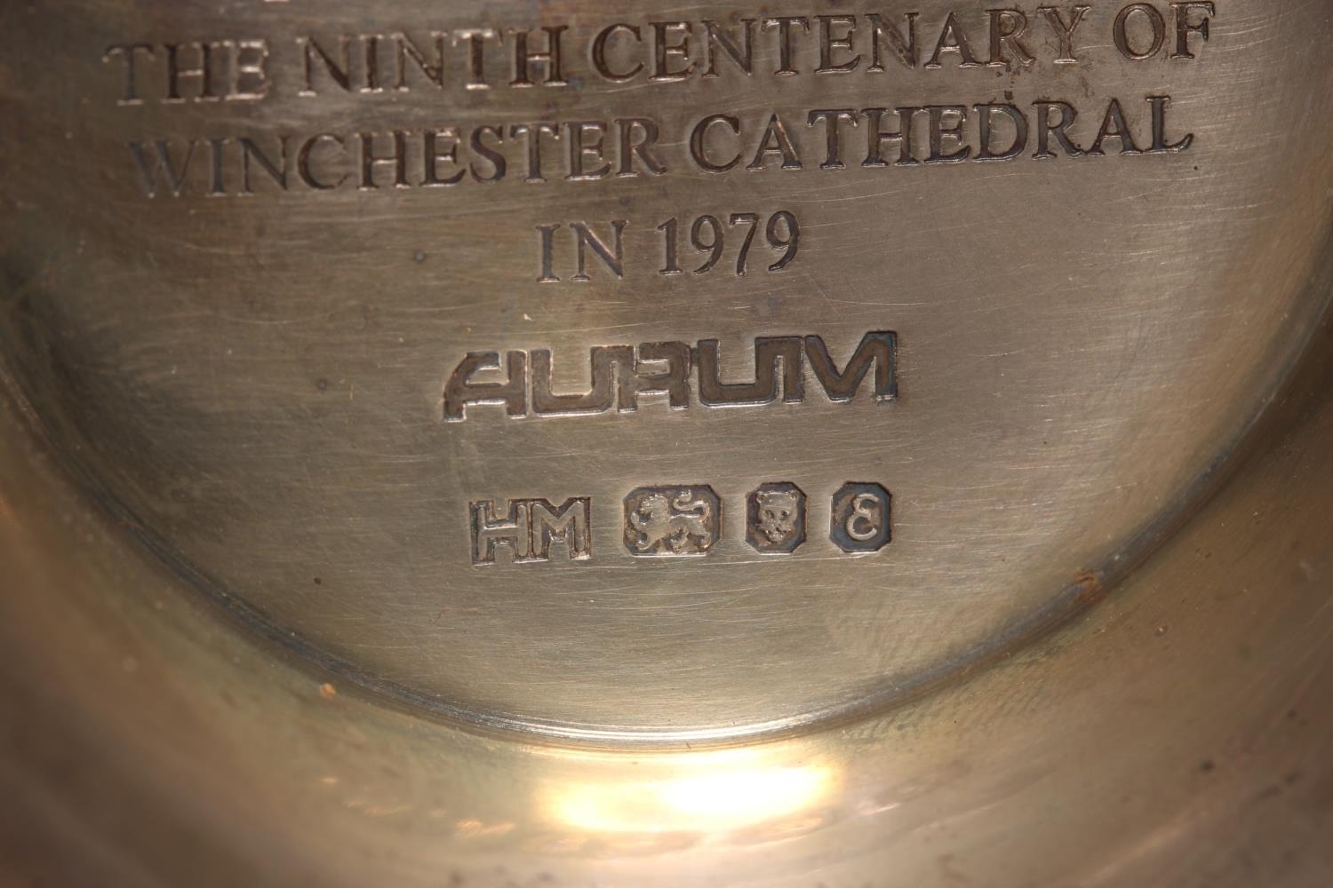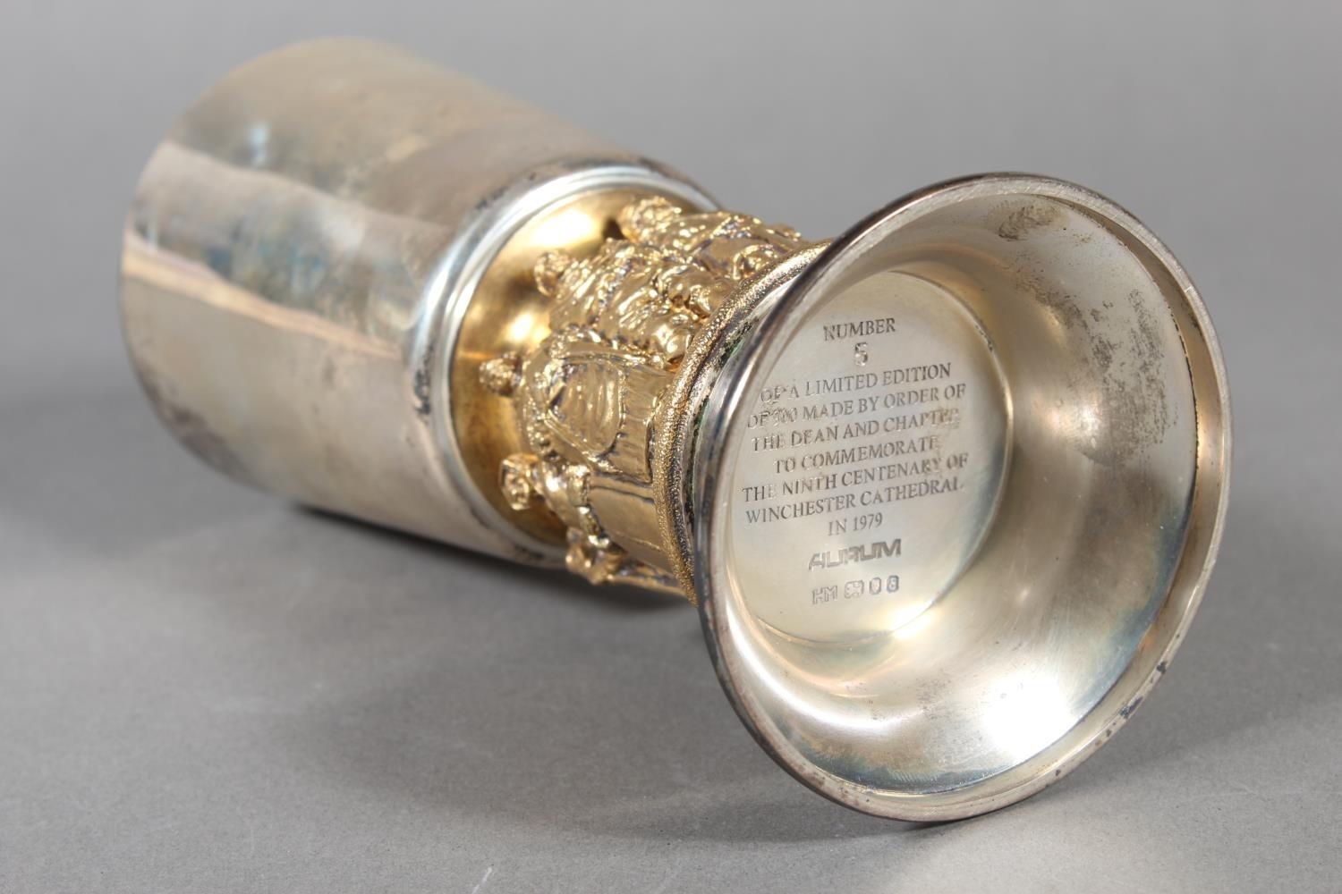 Elizabeth II limited edition silver chalice commemorating the ninth centenary of Winchester Cathedral, with gilded interior (London 1979), designed by Hector Miller and Tim Minett for Aurum designs, no.5 of 900, 16.5cm, 417g.