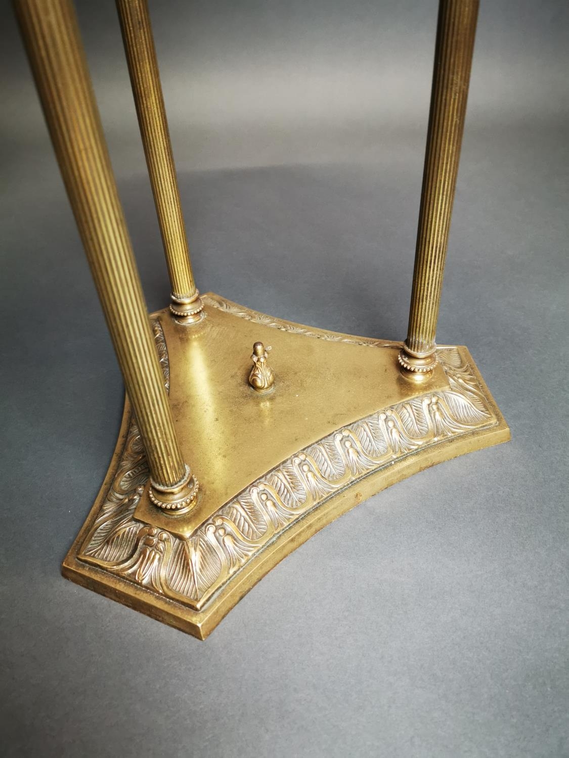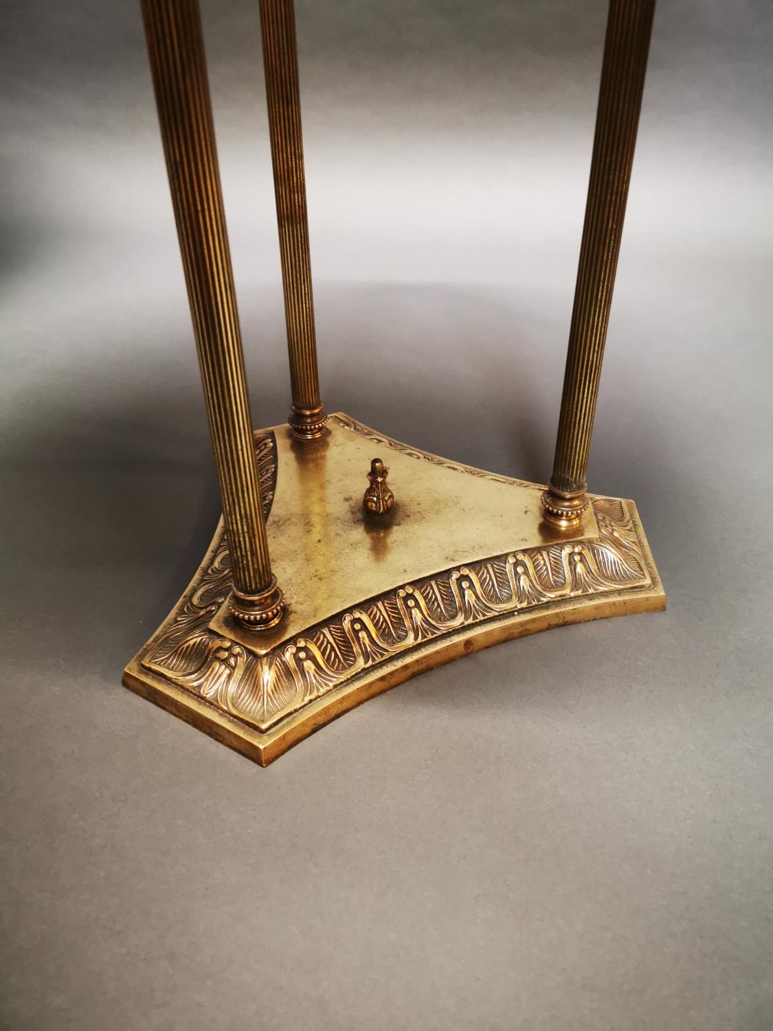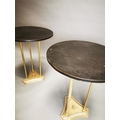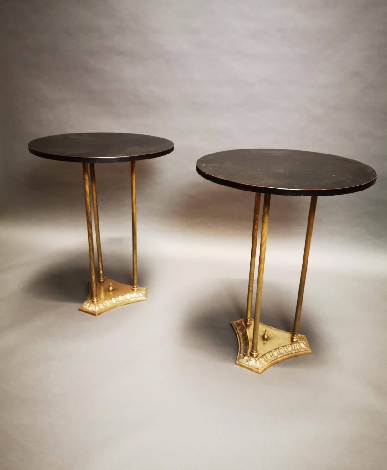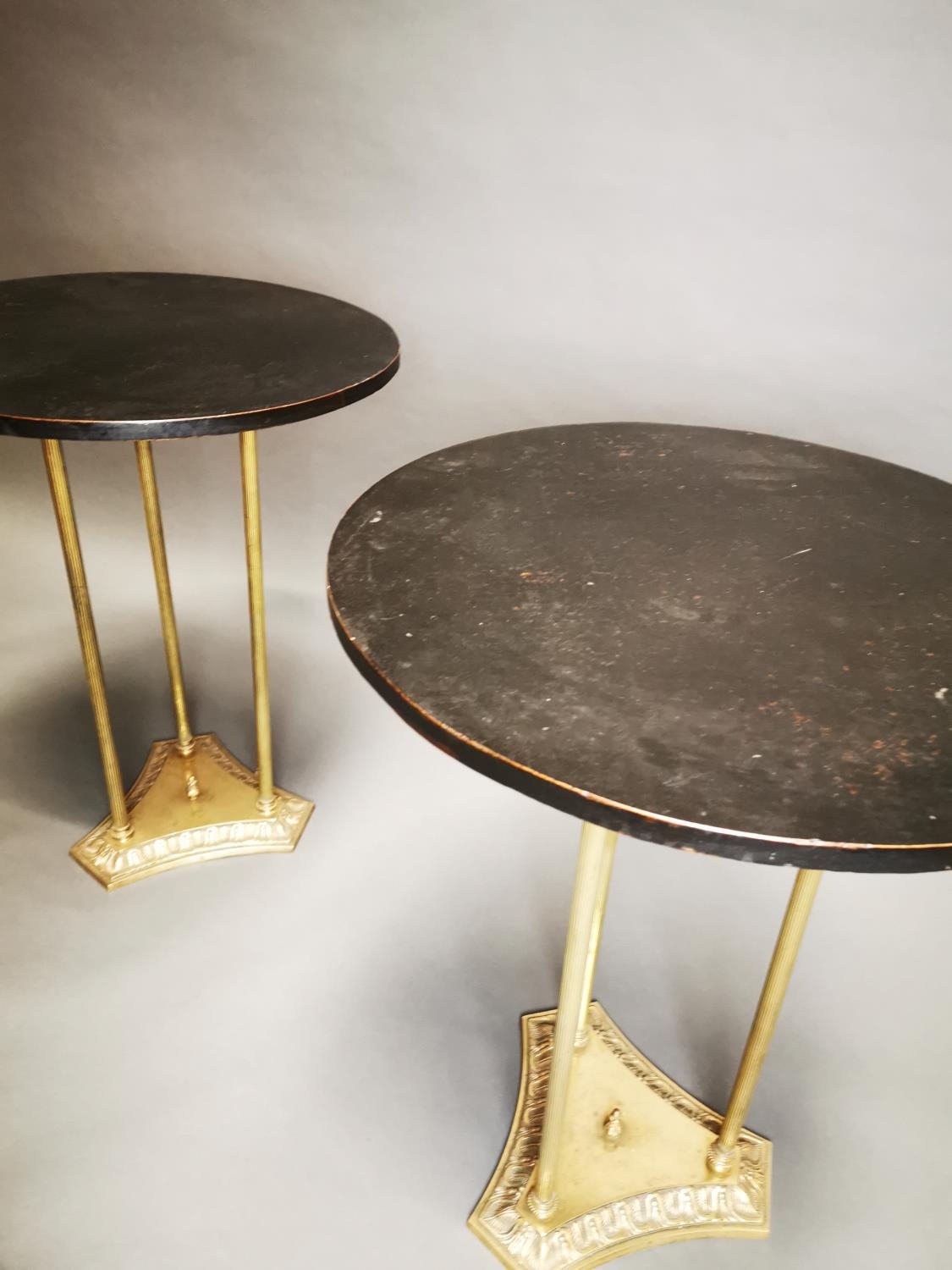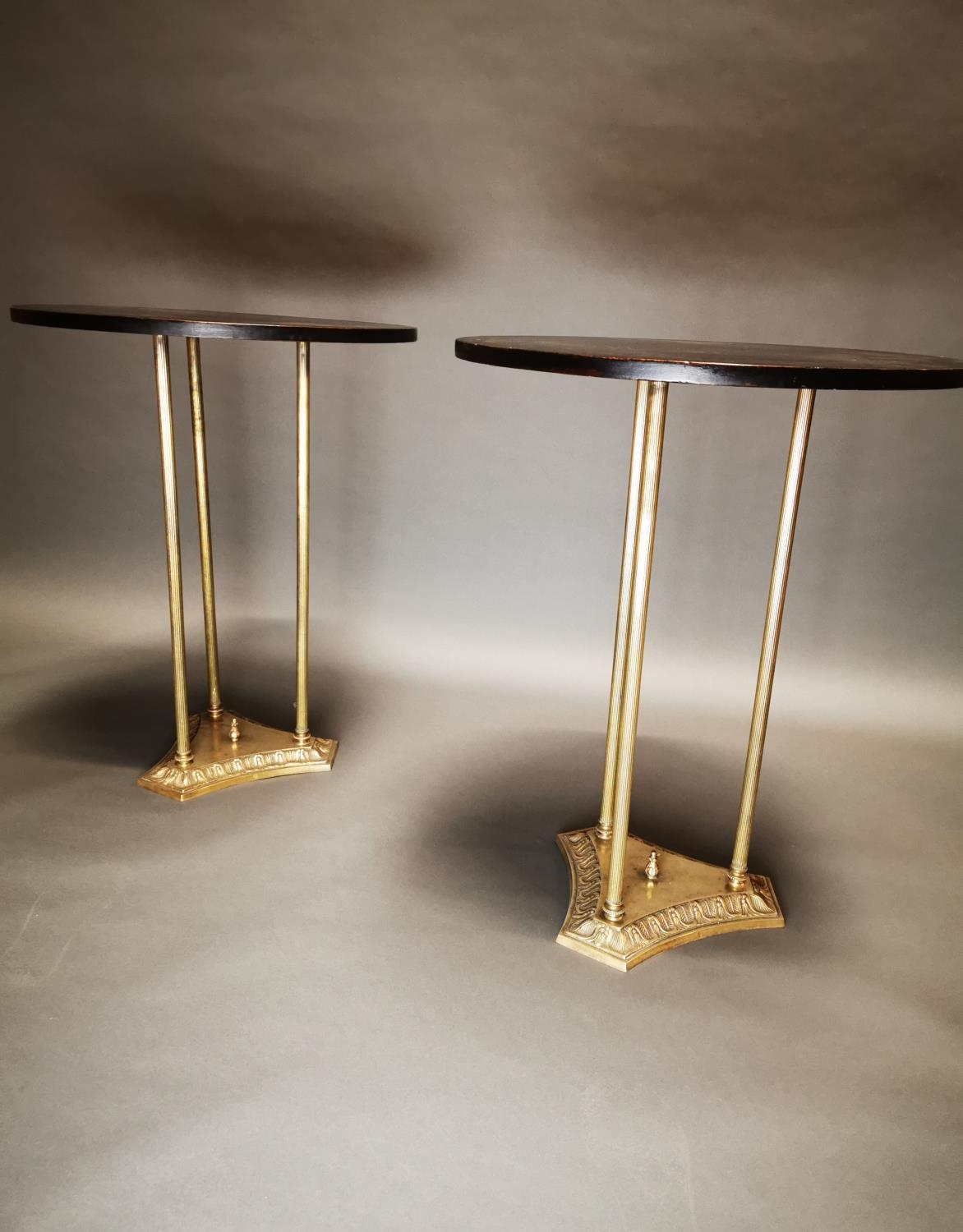 Pair of exceptional quality brass lamp tables with ebonised circular top {74 cm H x 56 cm Dia.}.