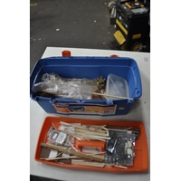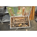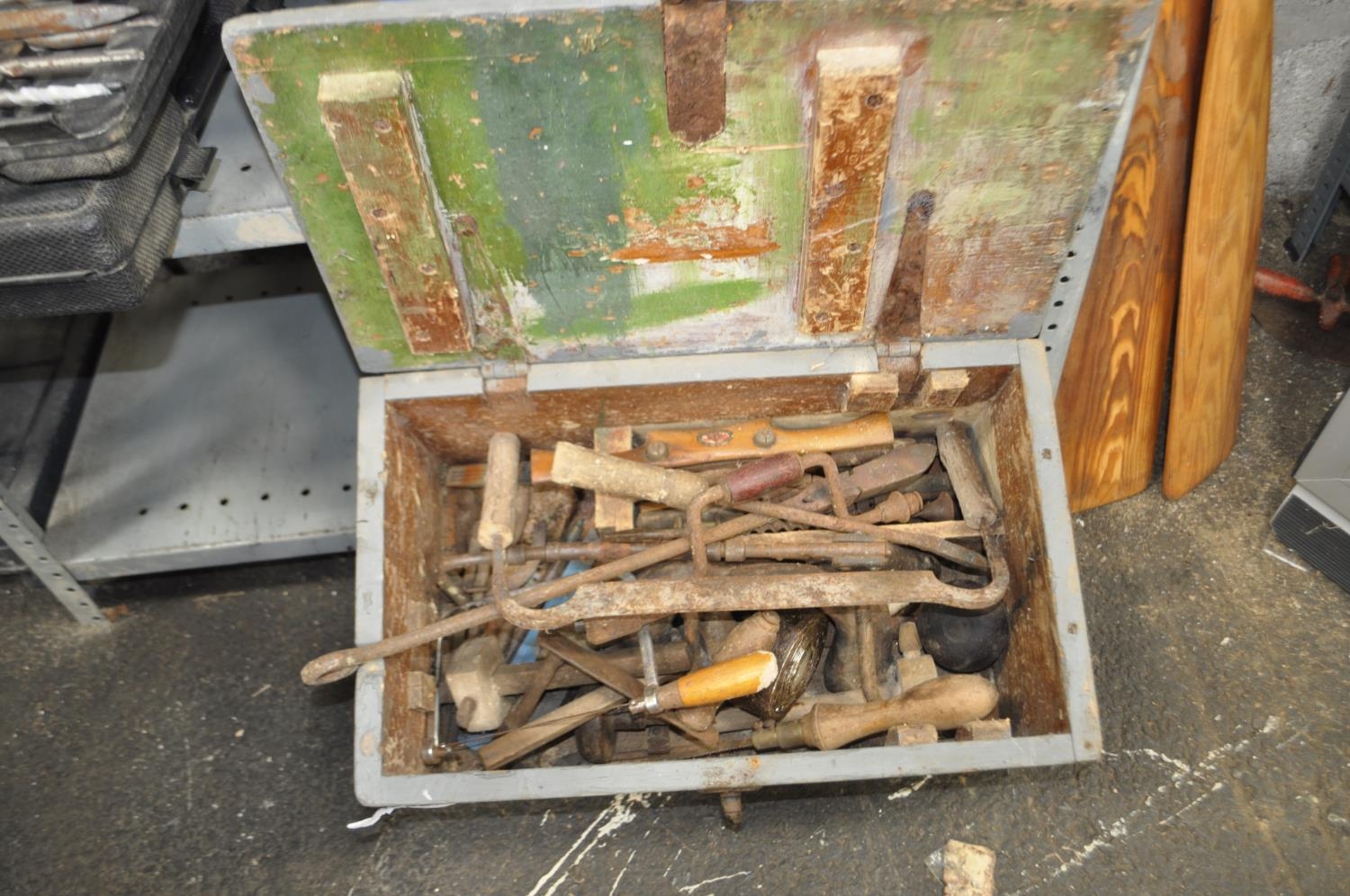 PINE TOOLBOX WITH A SELECTION OF VINTAGE TOOLS