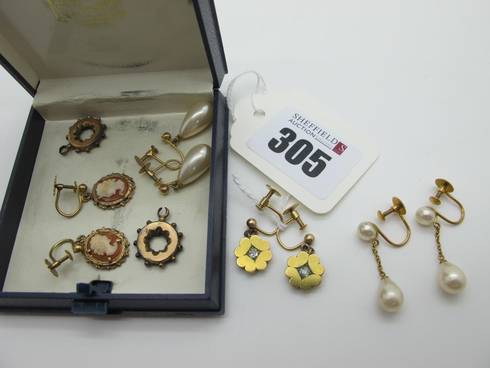 A Pair of 9ct Gold Cameo Style Earrings, on unpierced screw fittings, together with further assorted (unpierced) earrings, including imitation pearls etc.