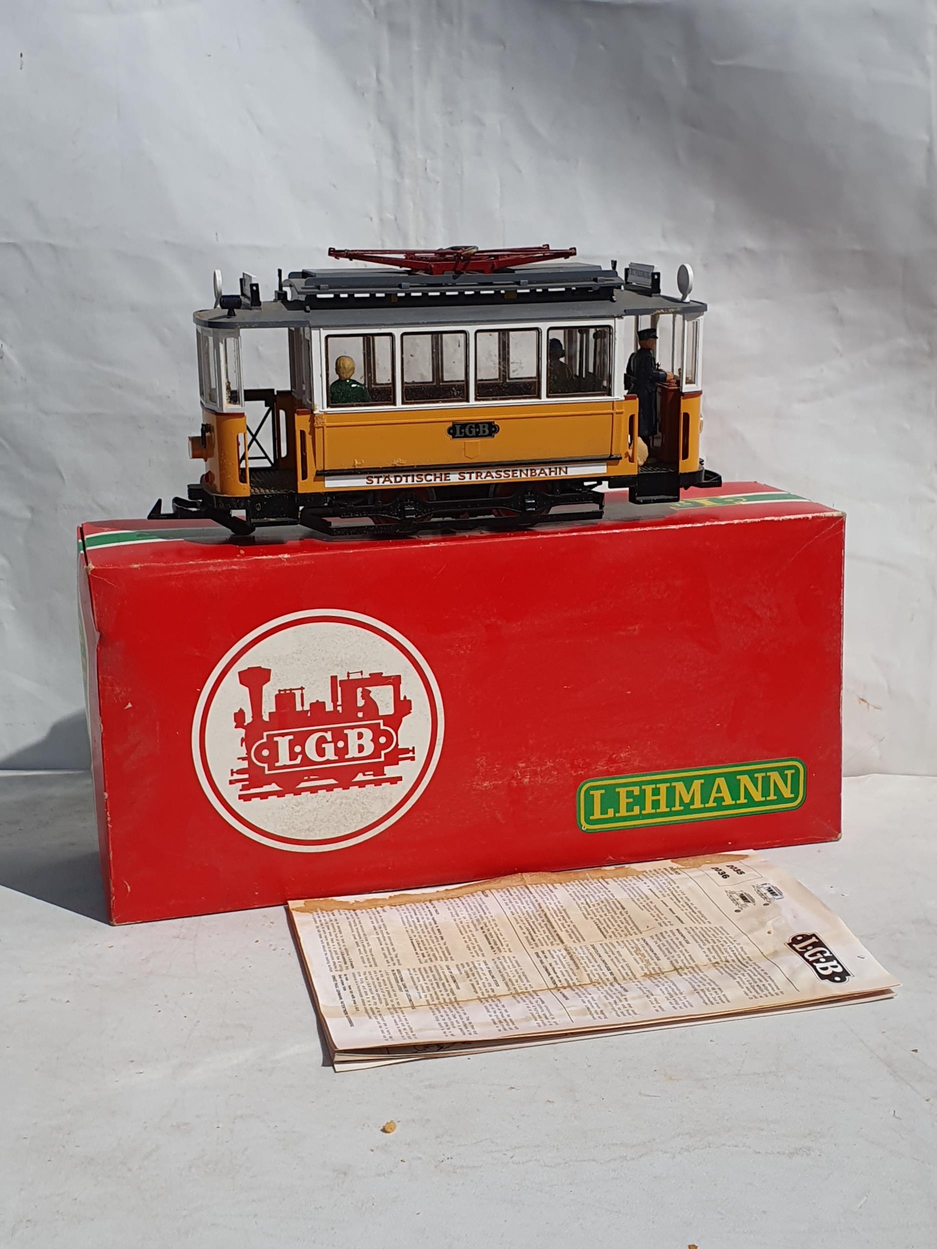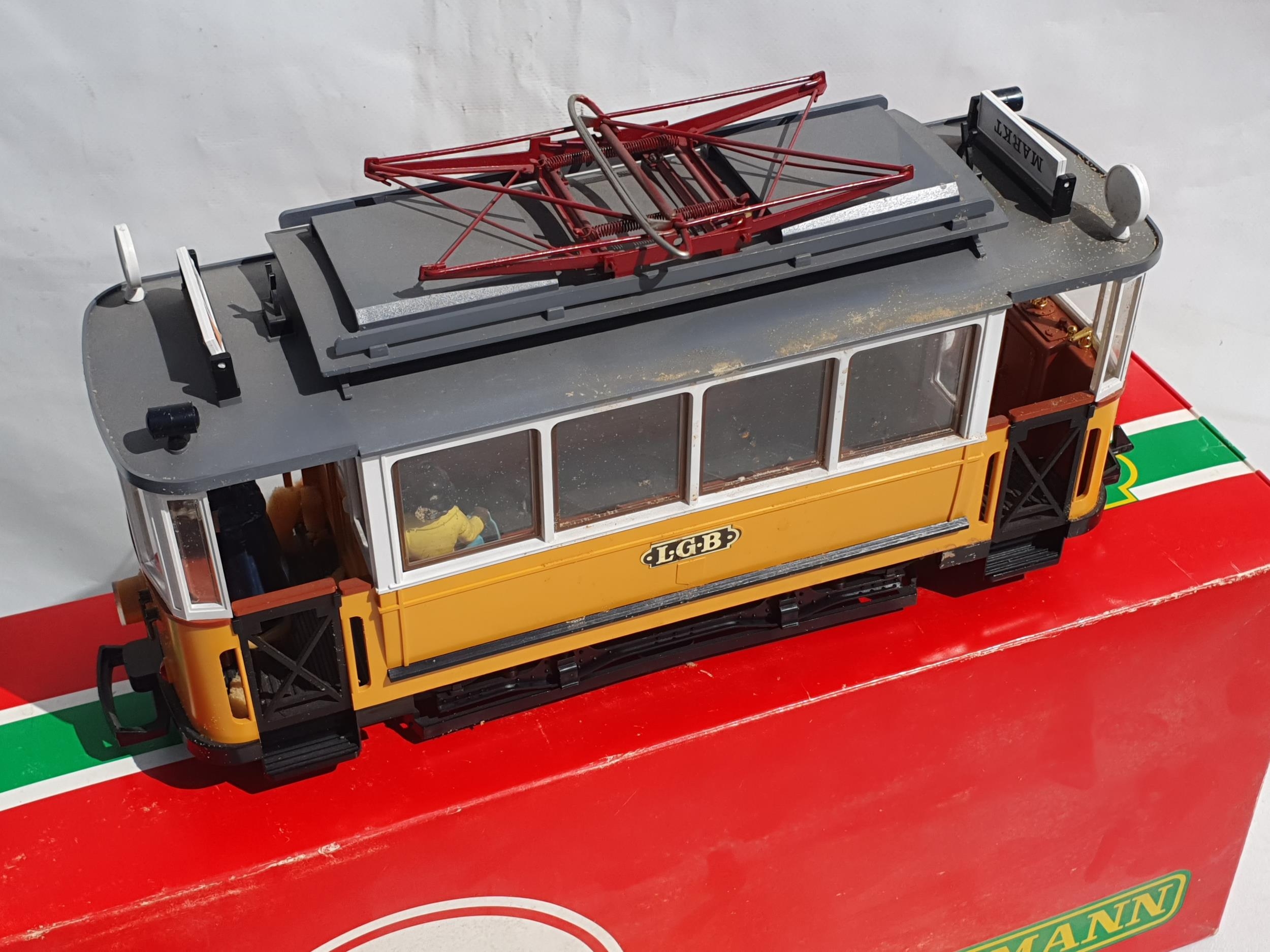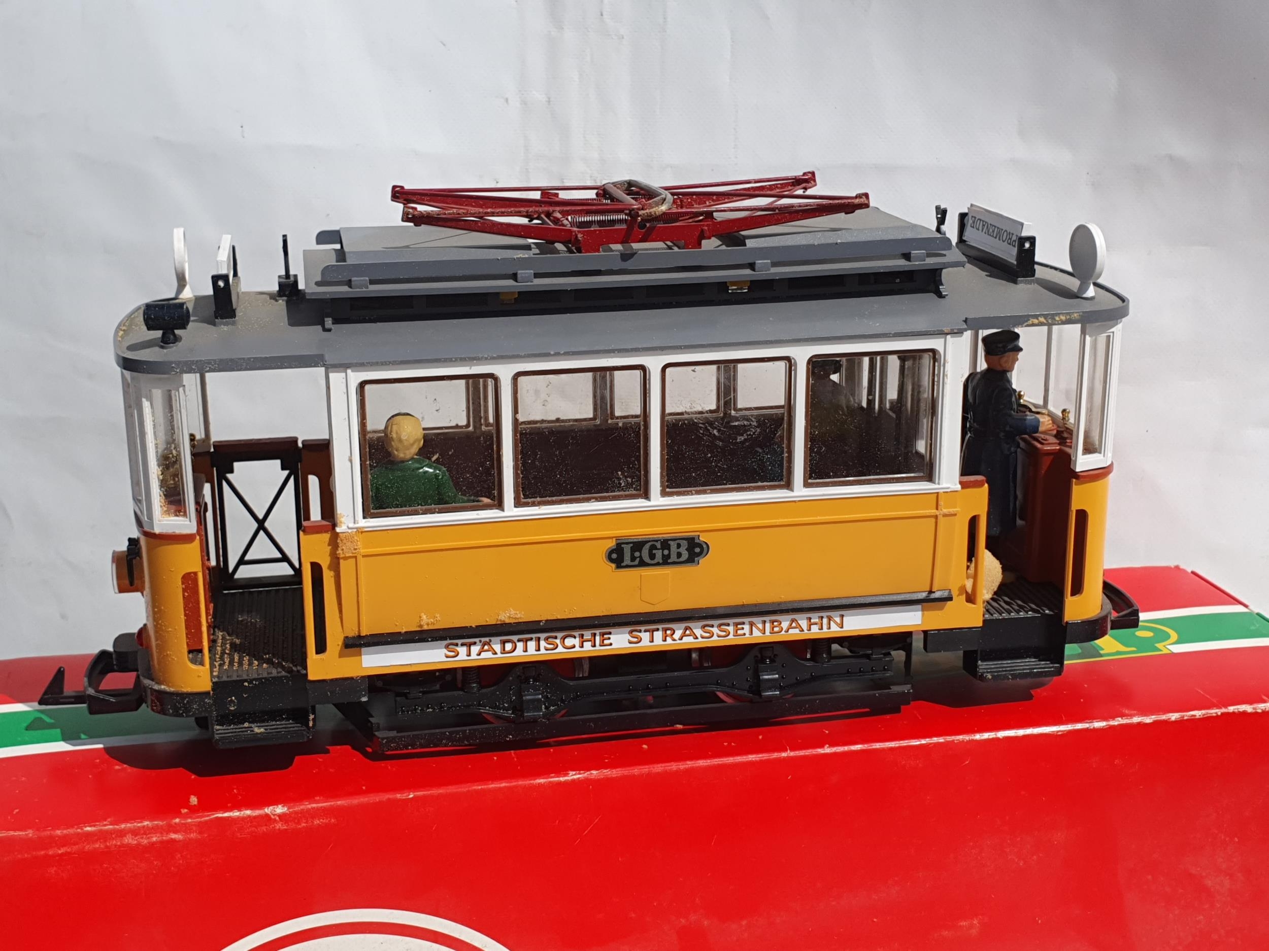 A boxed L.G.B G Gauge No.2035 0-4-0 Electric Pantograph Tram