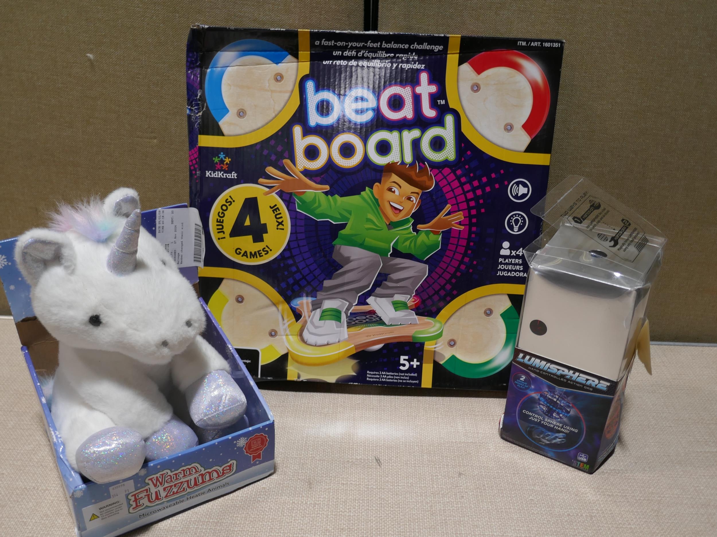 Animal hottie, Kidkraft Beat Balance board game and a Hoverstar Lumisphere flying orb with LED light (354-91,106,111) *This lot is subject to VAT