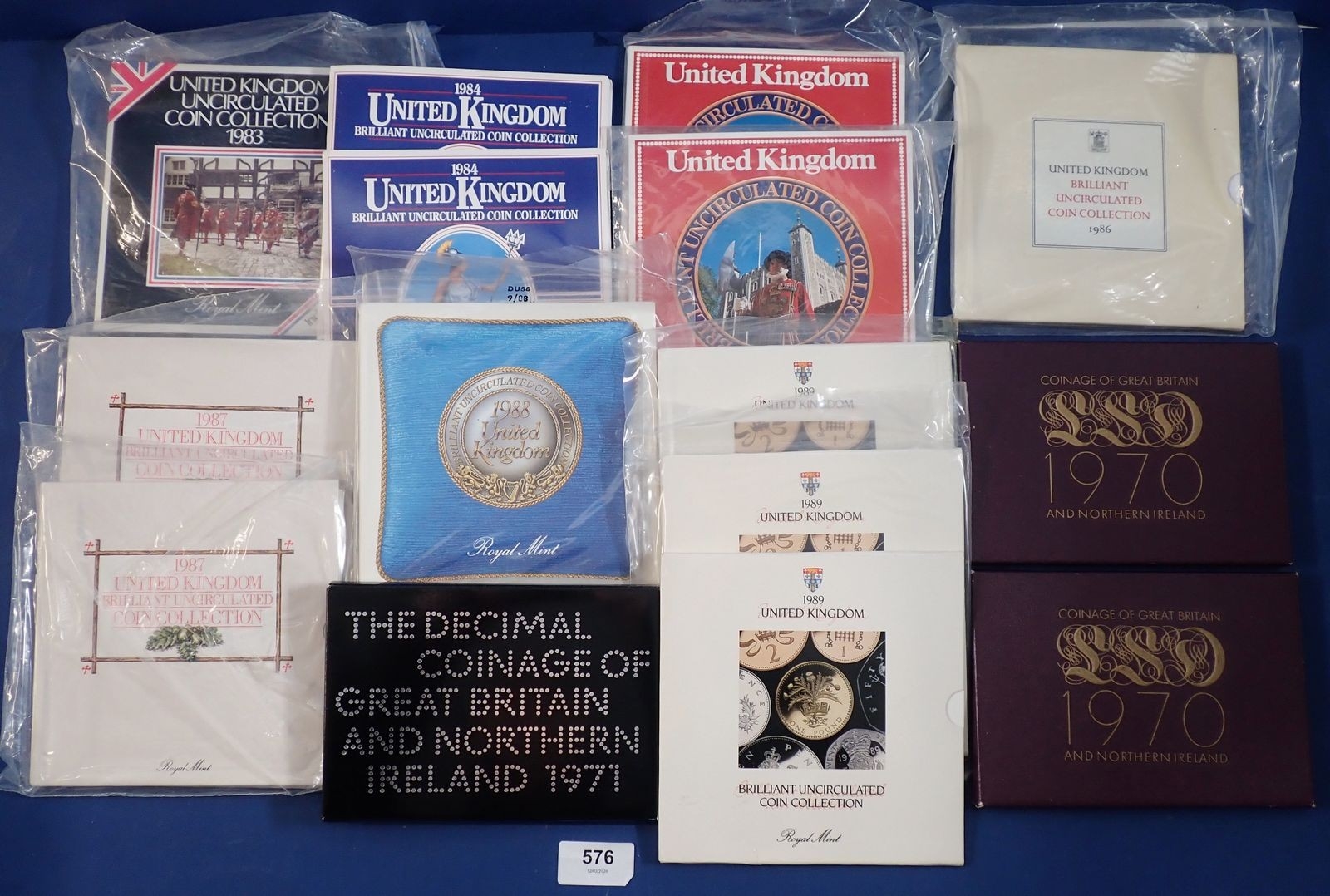 Three coinage of Great Britain and Northern Ireland coin sets 1970 x2, and 1971, plus twelve UK uncirculated coin collections 1983, 1984 x2, 1985 x2, 1986, 1987 x2, 1988, and 1989 x3