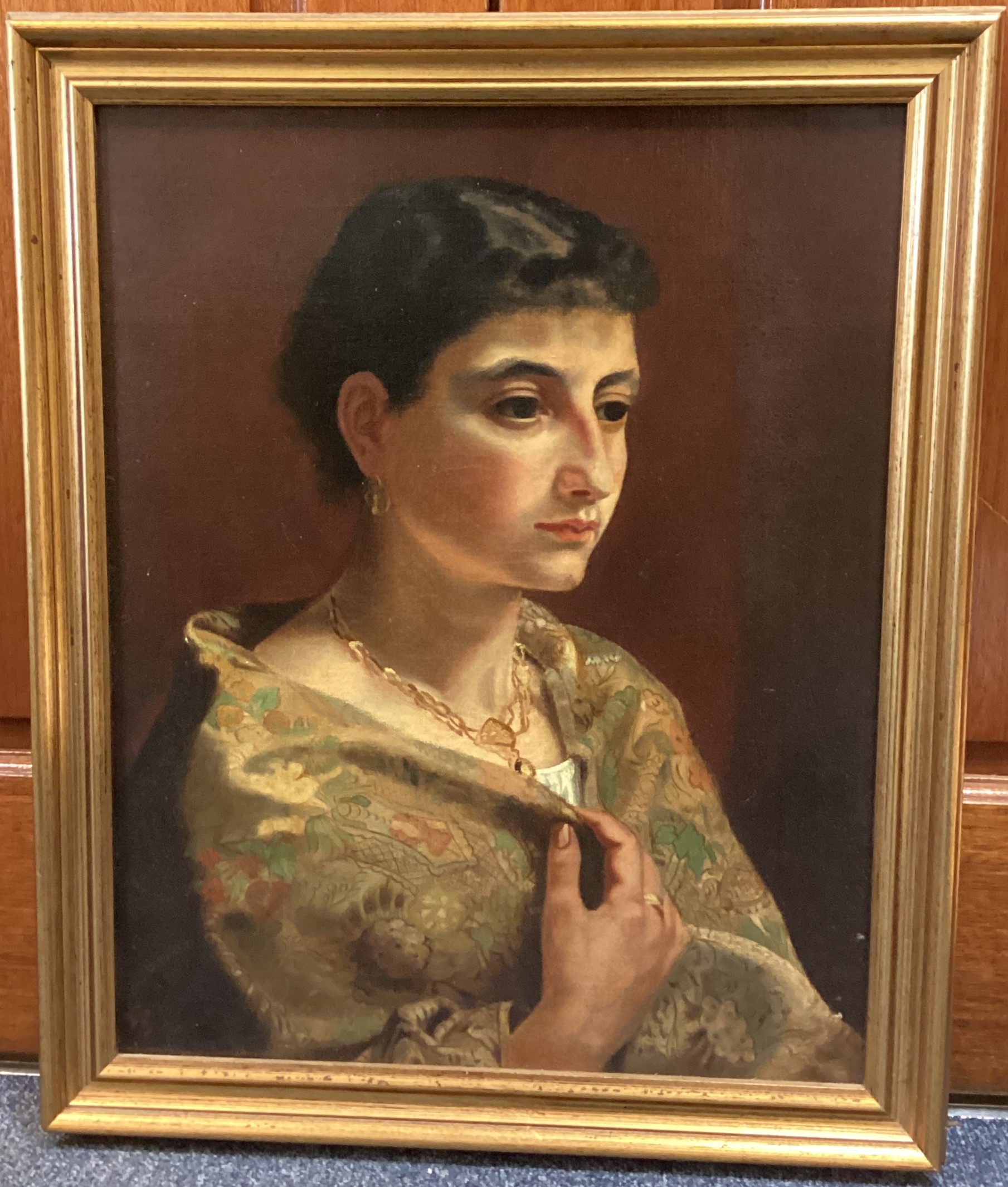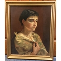 CONTINENTAL SCHOOL: A gilt framed 19th Century oil on canvas depicting a portrait of a lady. Apparently unsigned. Approx. 40 cm x 50 cm (ss). Est. £50 - £80.