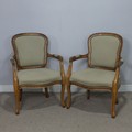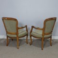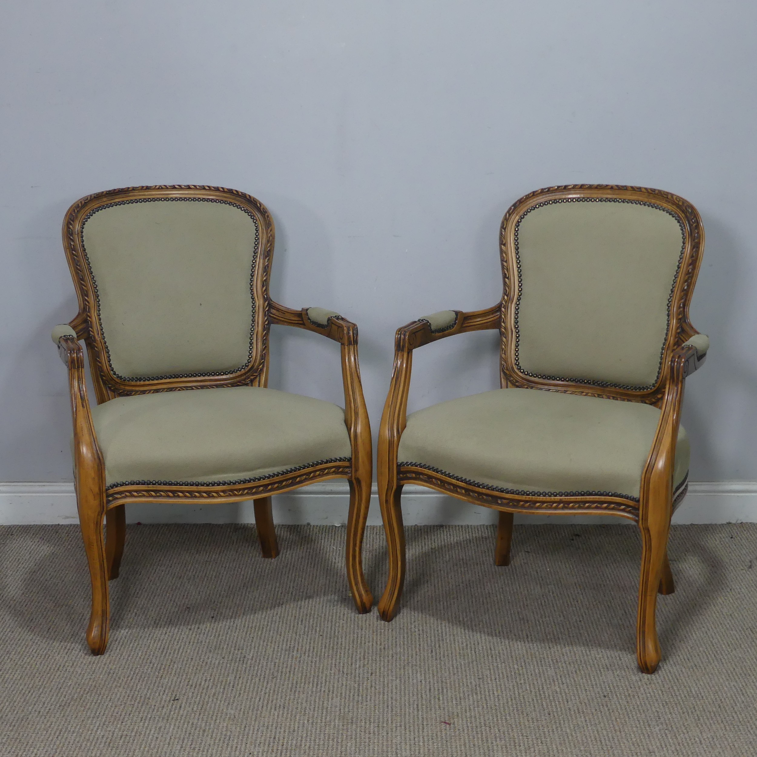 A pair of Louis XVI style open Armchairs, with studded upholstery, W 60 cm x H 92 cm x D 45 cm. (2)