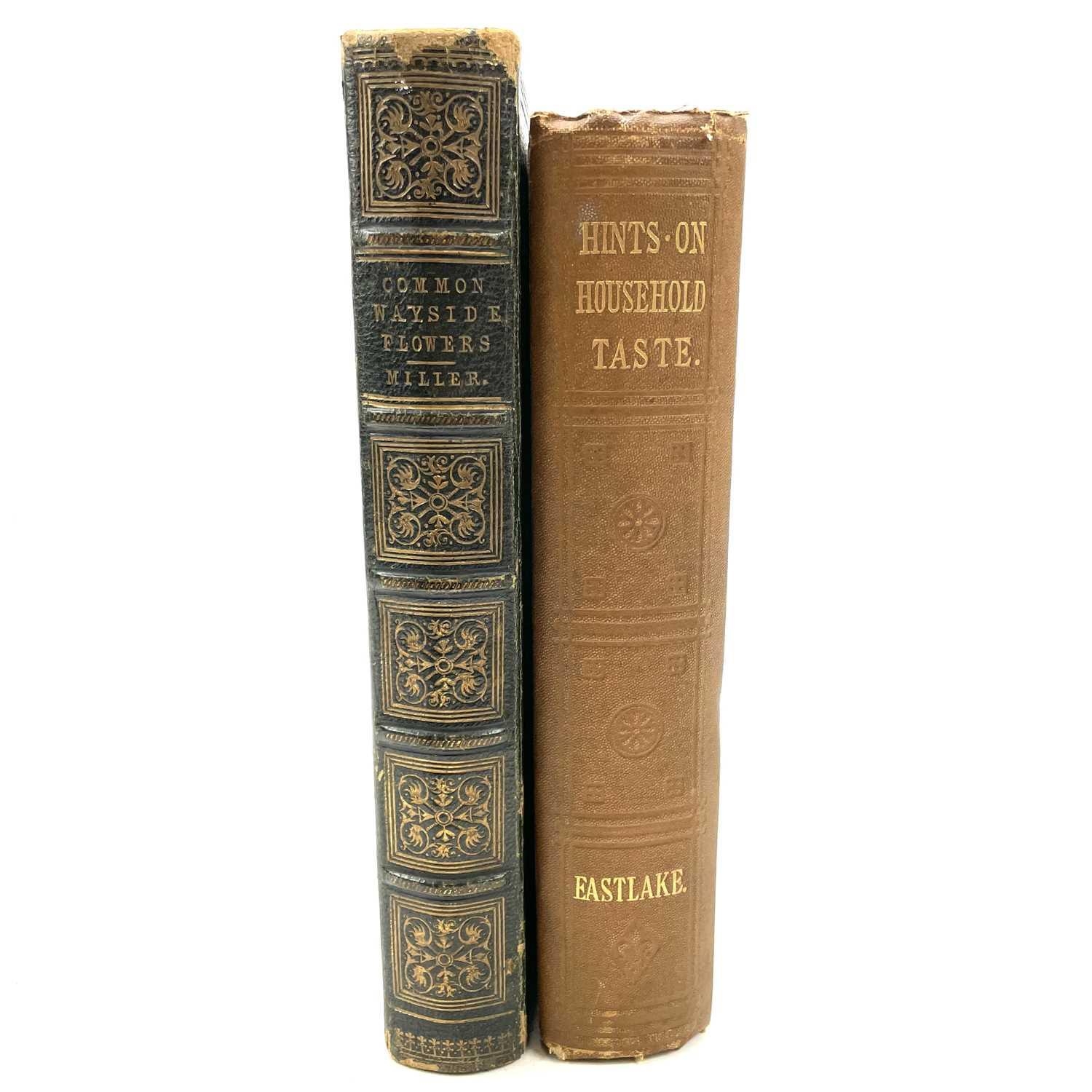 CHARLES L. EASTLAKE. 'Hints on Household Taste,' third edition, original cloth, Longmans, Green, and Co, London, 1872; THOMAS MILLER. 'Common Wayside Flowers,' morocco binding, illustrations, Routledge, Warne, and Routledge, London, 1860. (2)