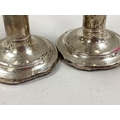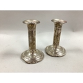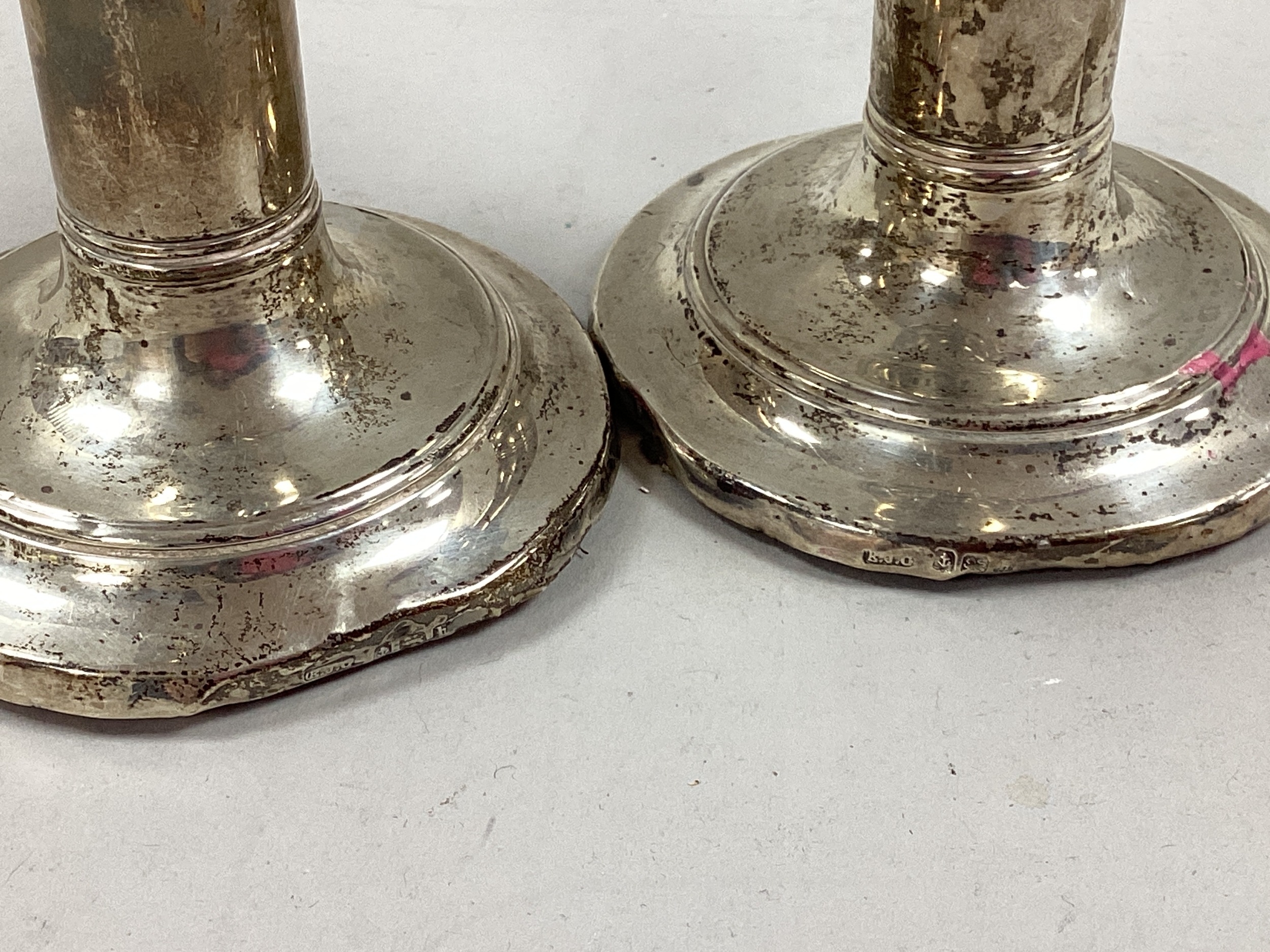 A Pair of Hallmarked Silver Candlesticks, Ellis & Co, Birmingham 1907, each of plain form with reeded detail, on circular weighted base, 11cm high (dents). (2)