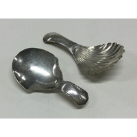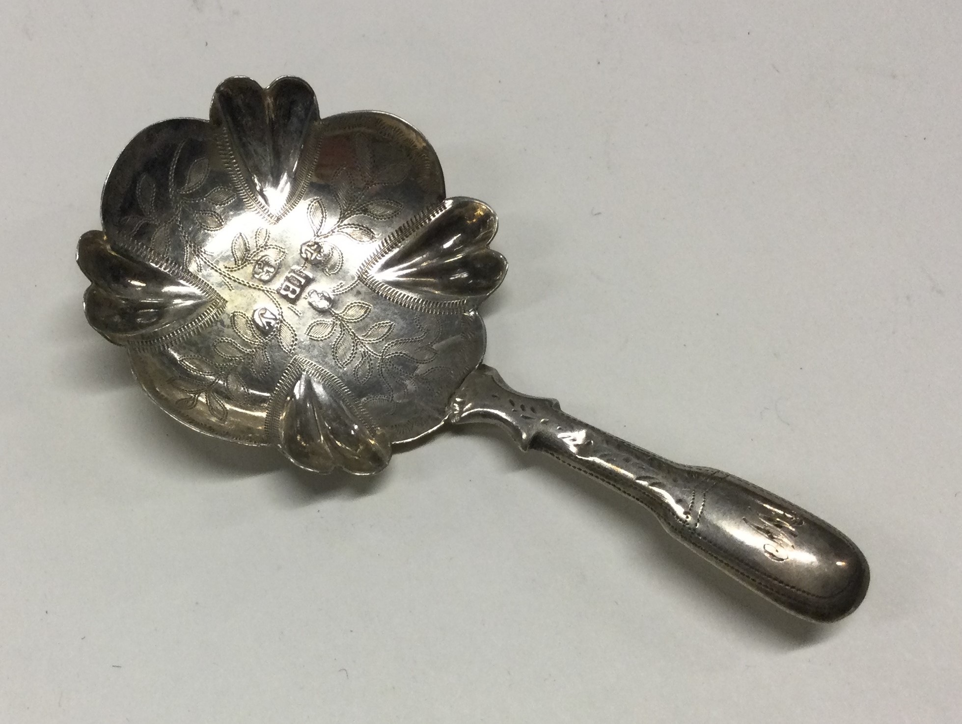 A silver caddy spoon with hollow handle to engraved bowl. Birmingham 1822. By IB. Approx. 6 grams. Est. £20 - £30.