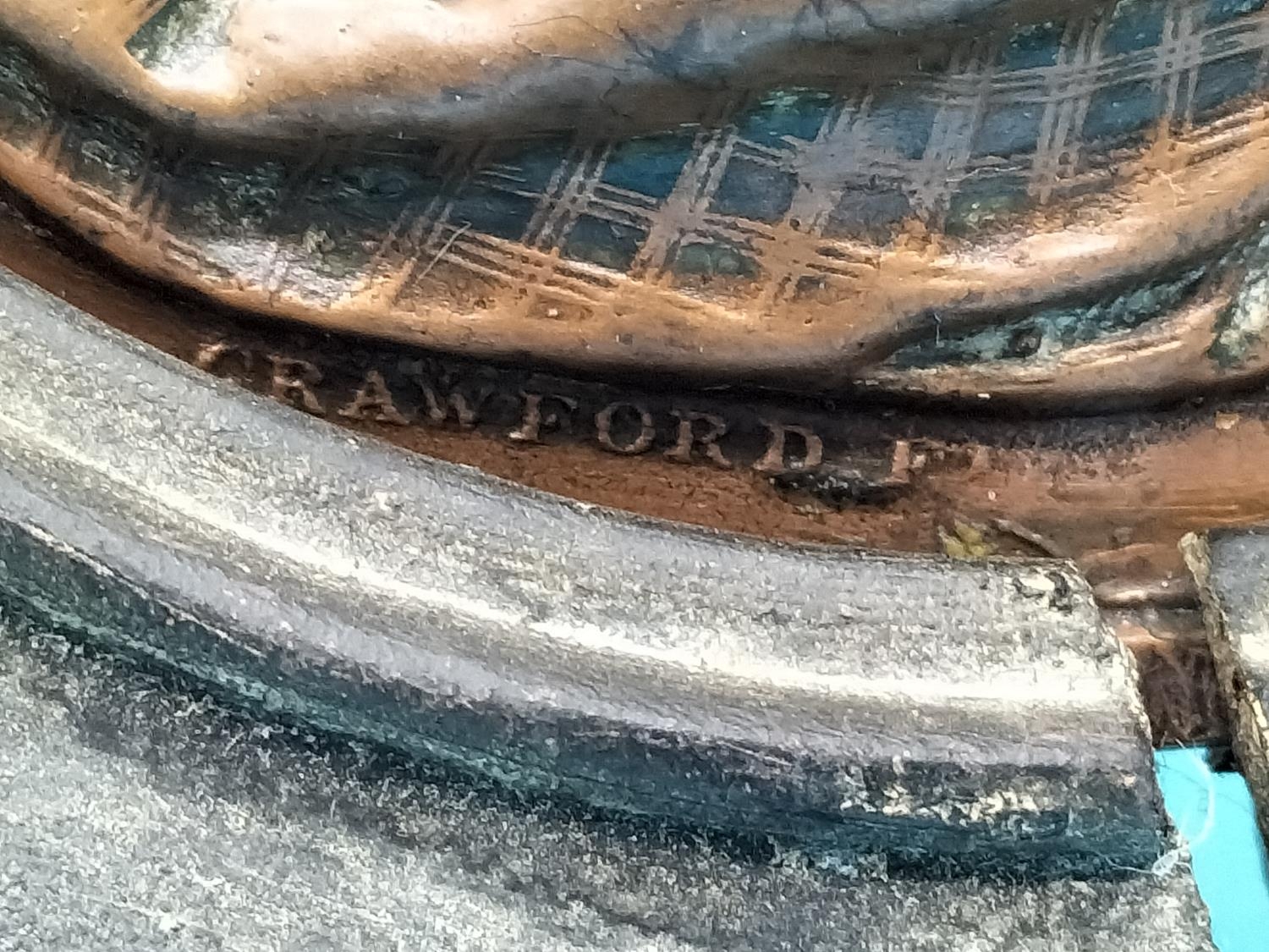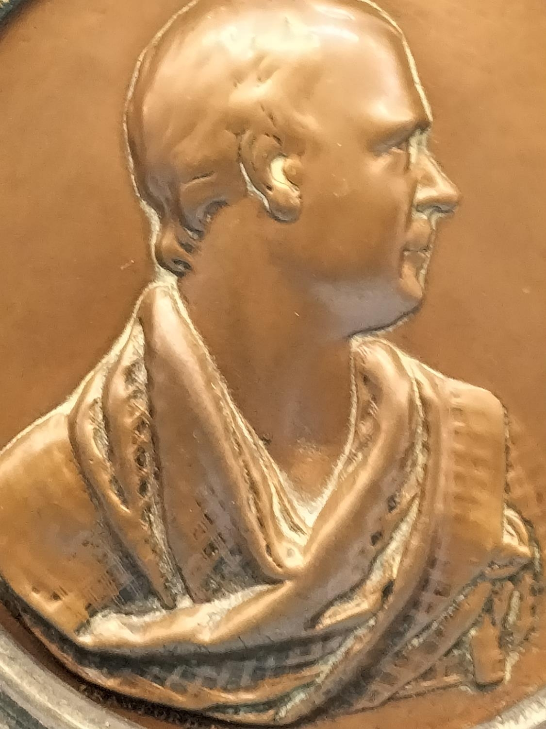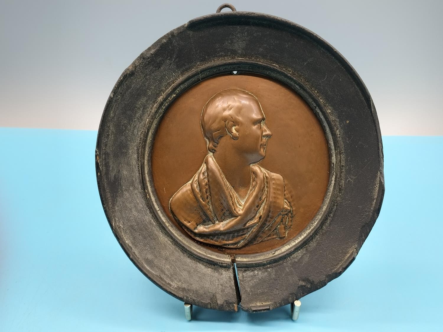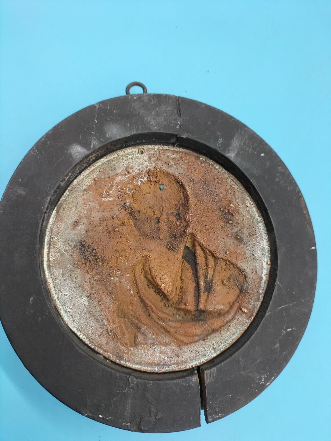 1830-1850 Thomas Crawford Circular Bronze Character Plaque. Mounted. 14cm Diameter.
