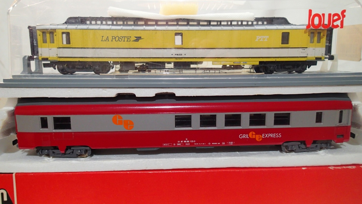 Ho Scale - 2x Jouef coaches 'Grill Express' and 'La Poste' excellent condition, boxed. UK P&P Group 2 (£24+VAT for the first lot and £5+VAT for subsequent lots)