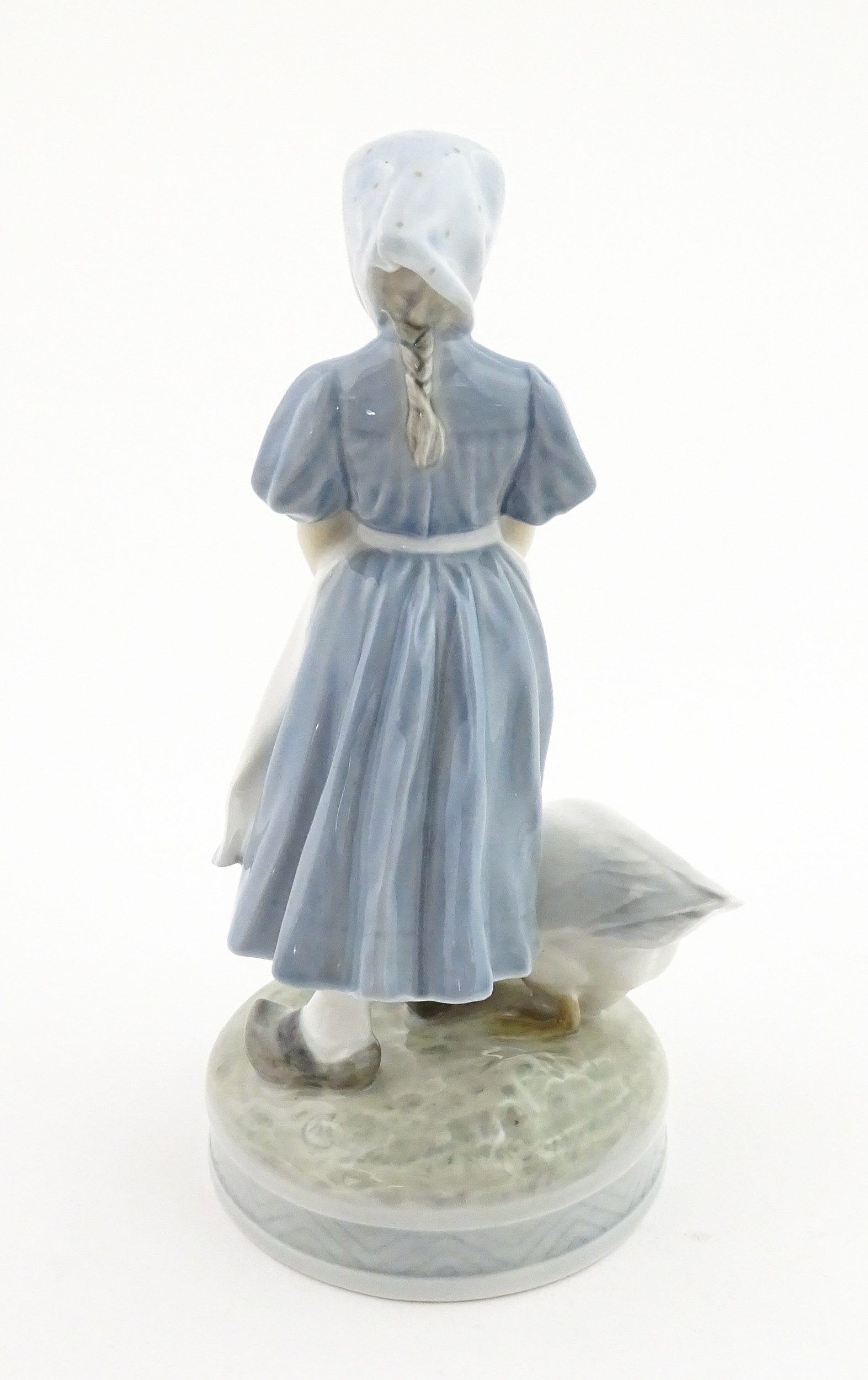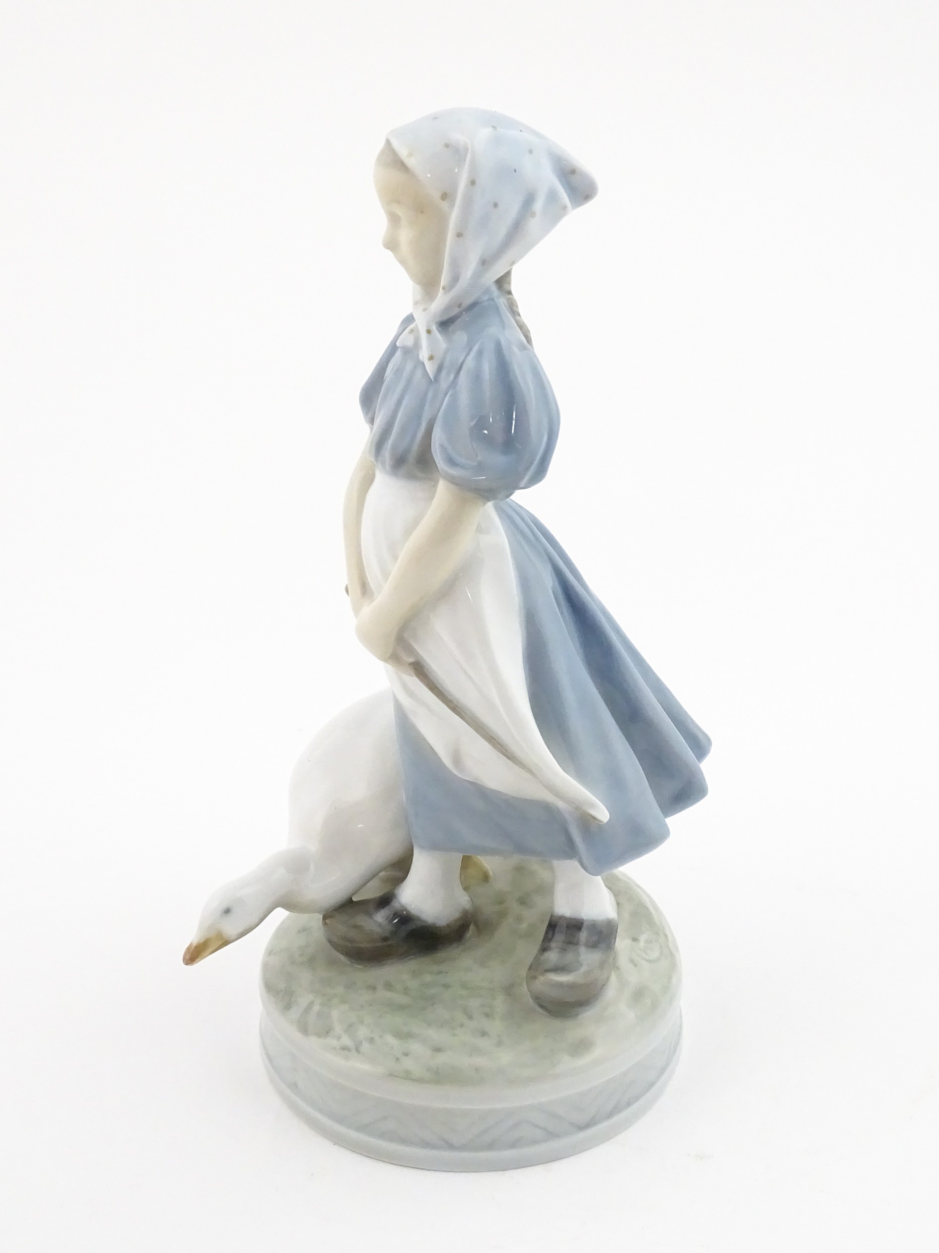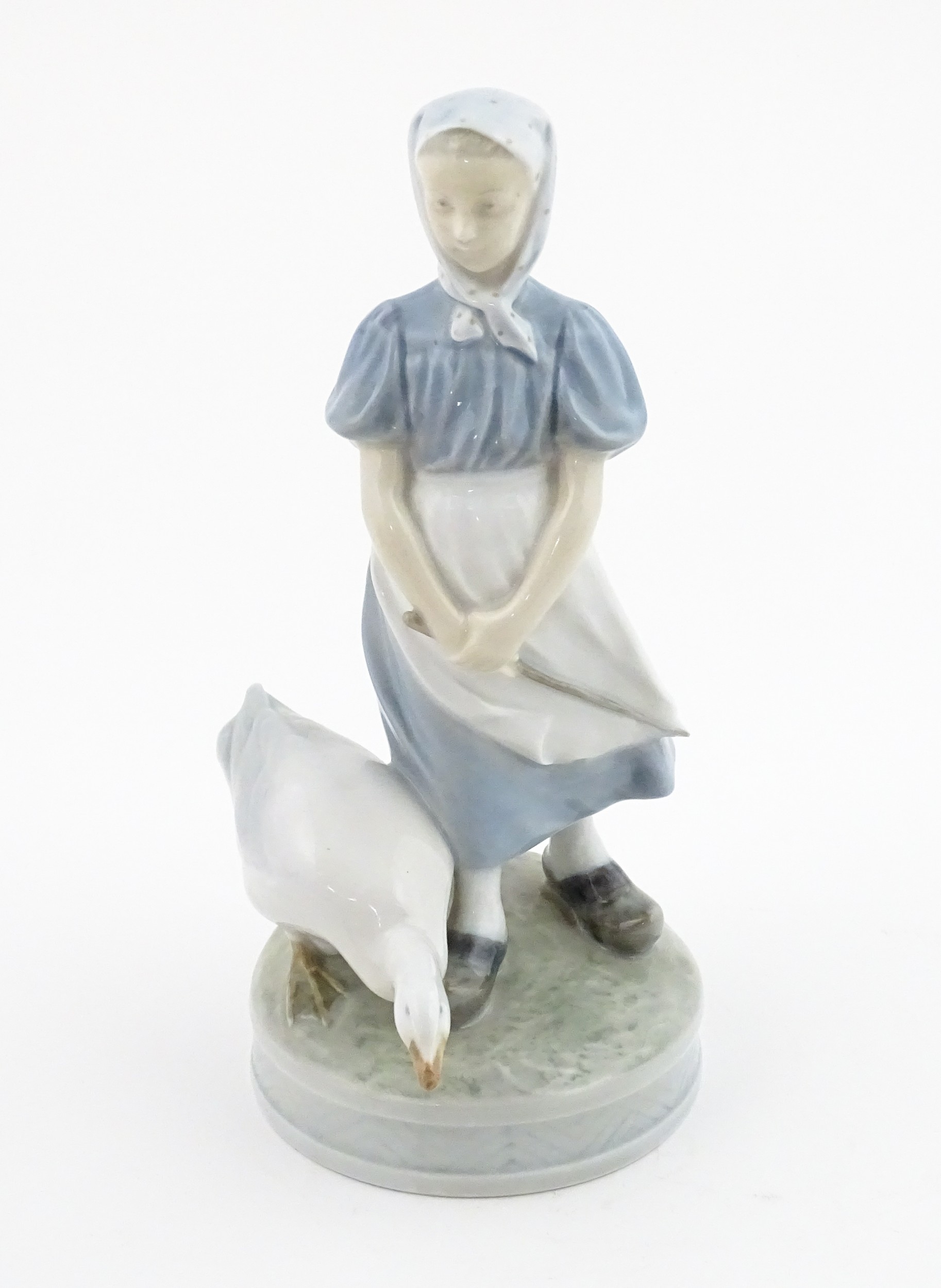 A Royal Copenhagen model Girl with Goose, model no. 527. Marked under. Approx. 9" high