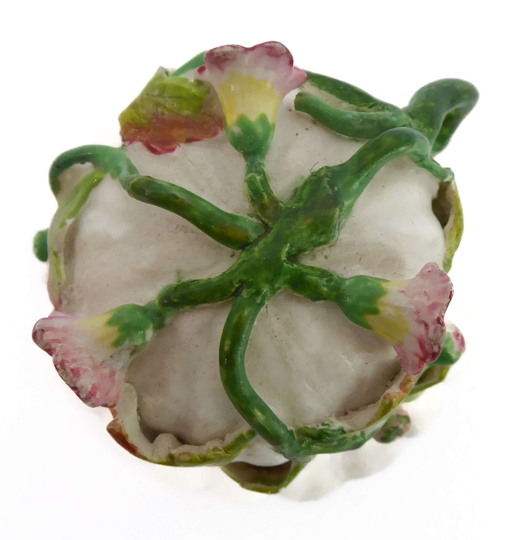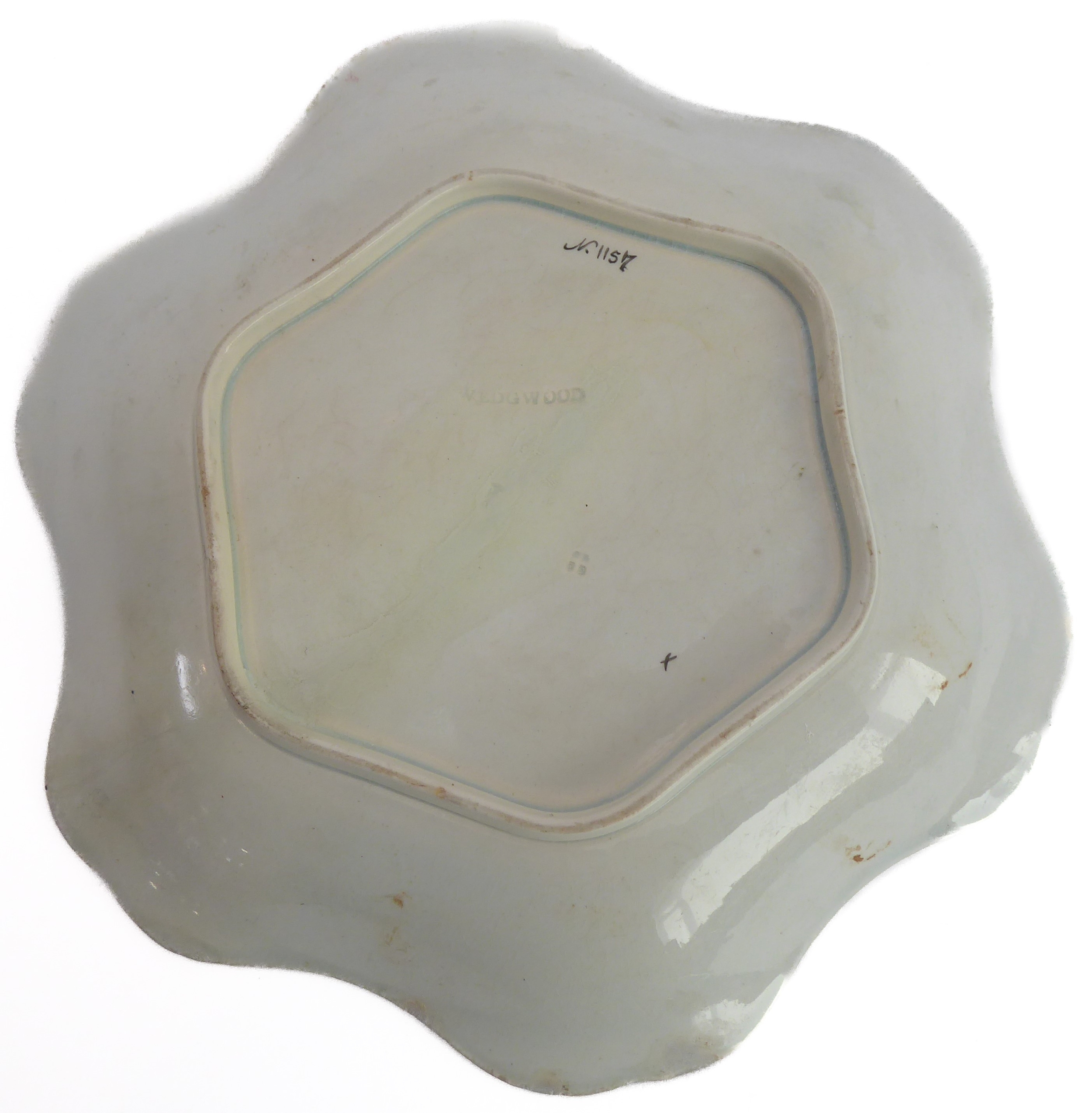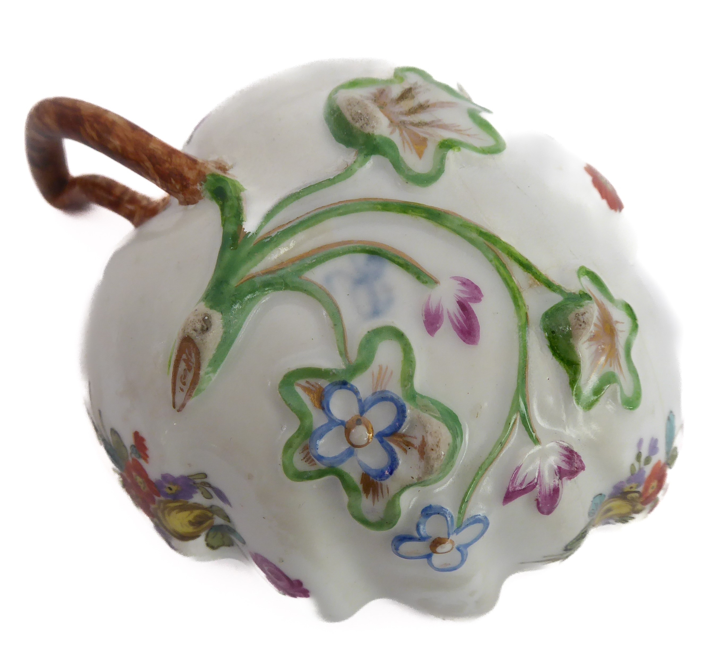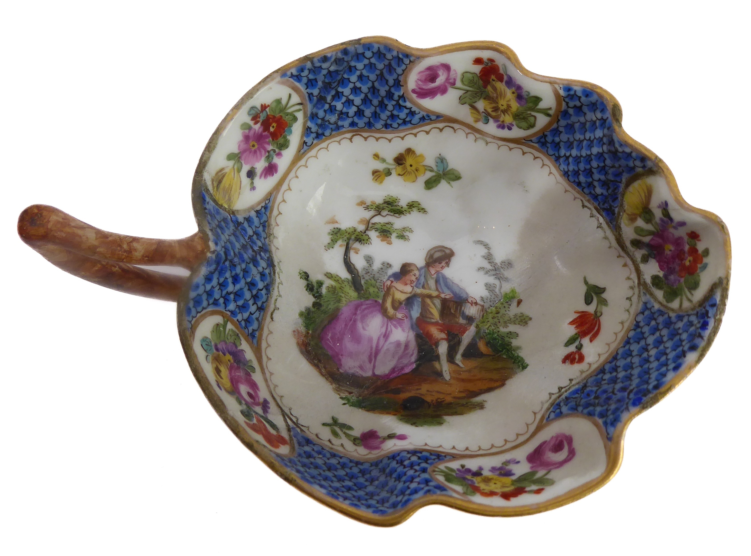 Early/mid 19th century ceramics to include various cups, bowls, saucers, a leaf-shaped cup with hand-painted blue 'AR' mark underneath, together with other items including a late 18th/early 19th century boat-shaped salt by Wedgwood of Etruria (selection)
