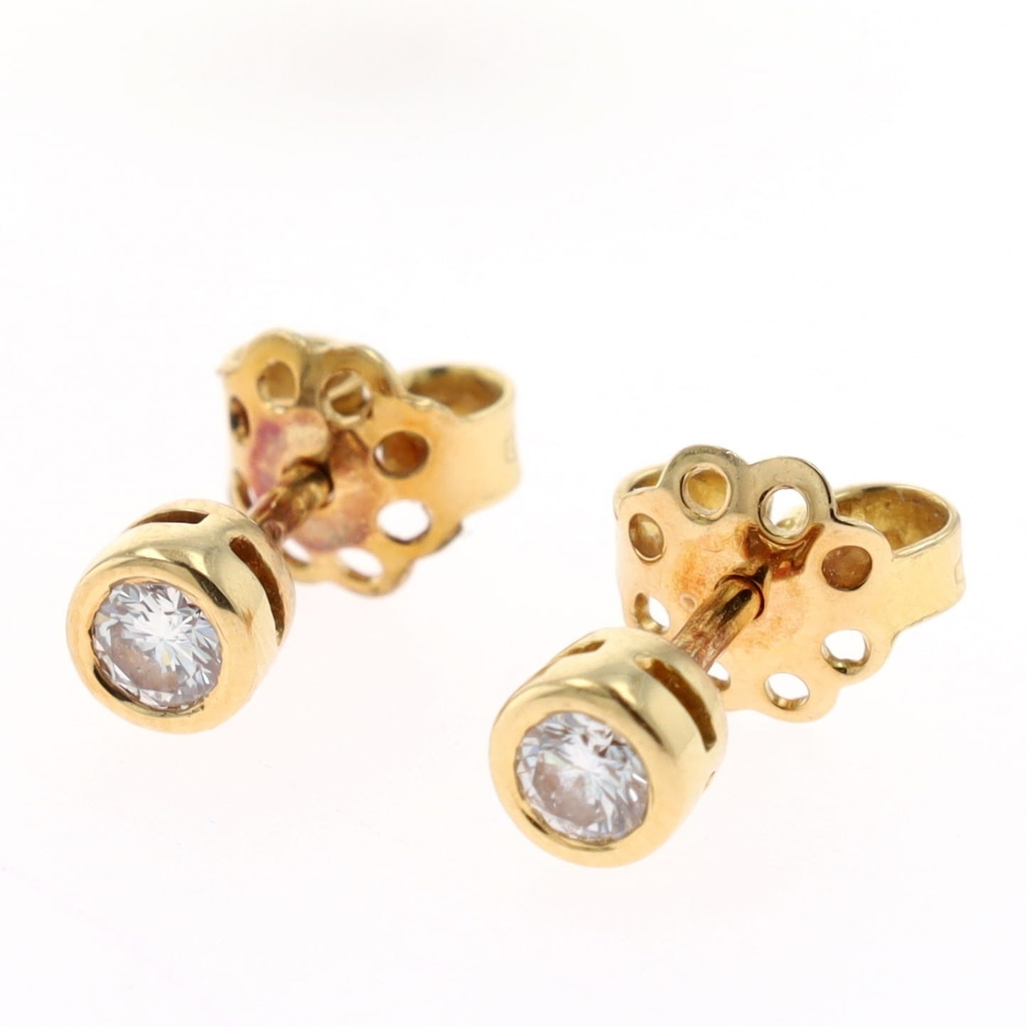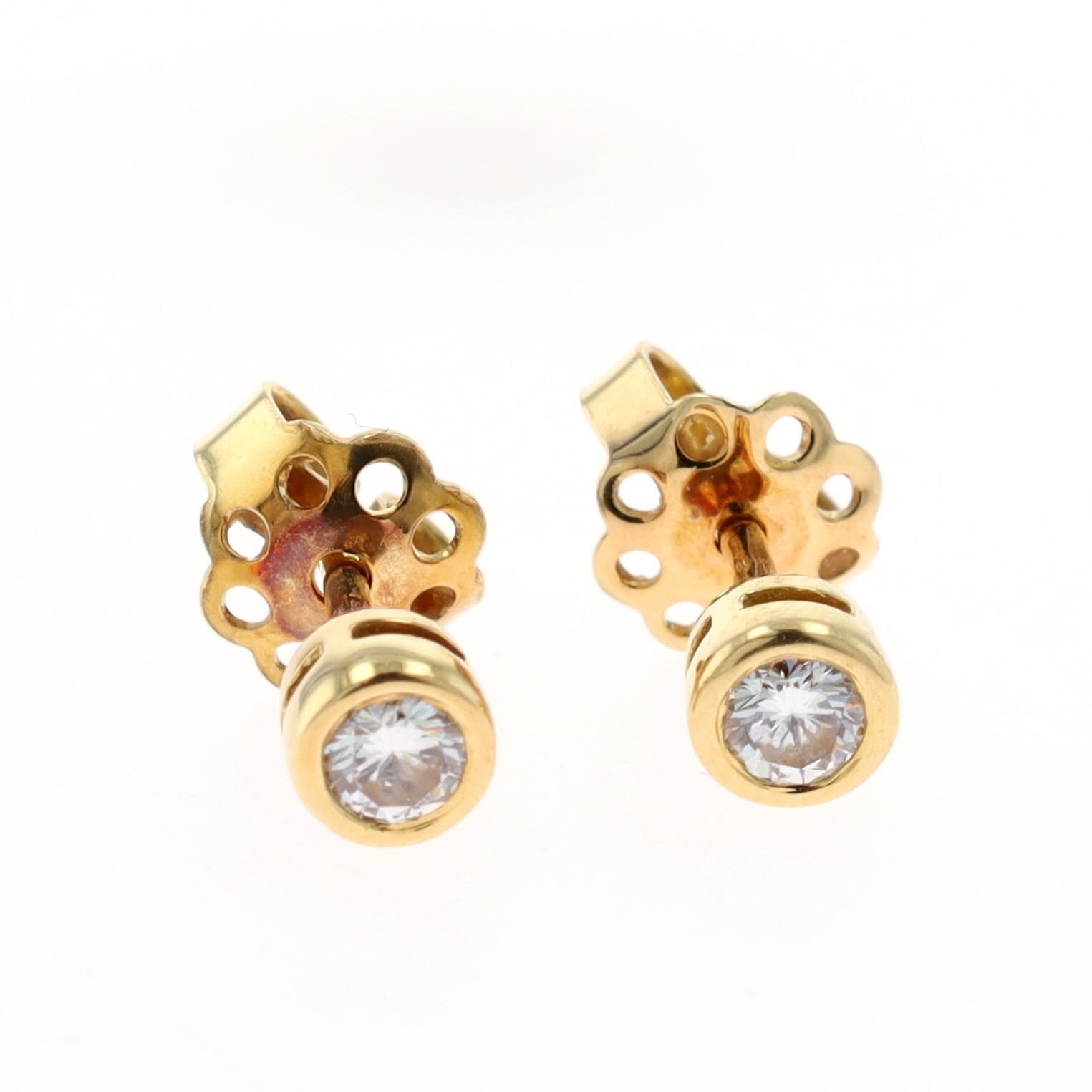 Diamond 18ct Gold Stud Earrings. These earrings are hallmarked 18ct gold. Measures approximately 4.5cm in diameter. Weighs in total 1.7g.