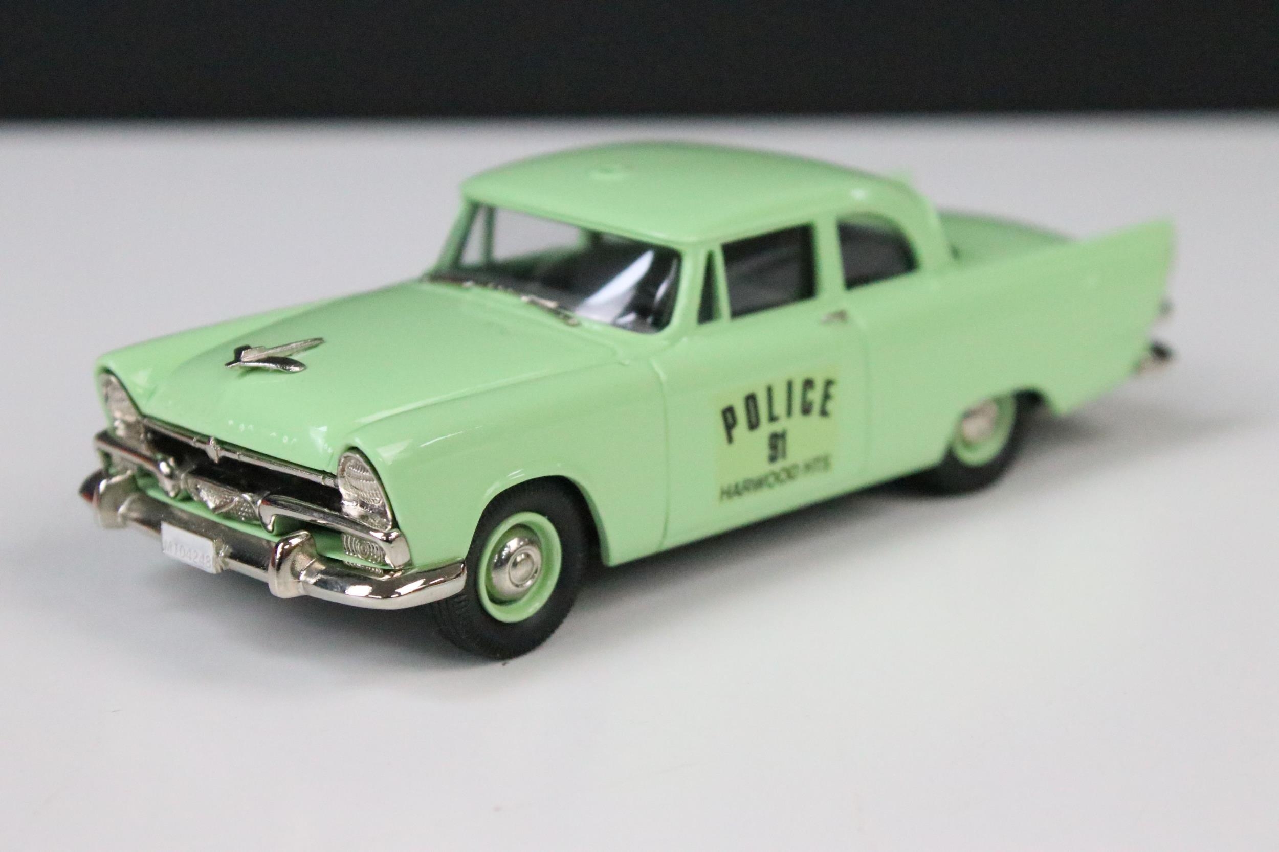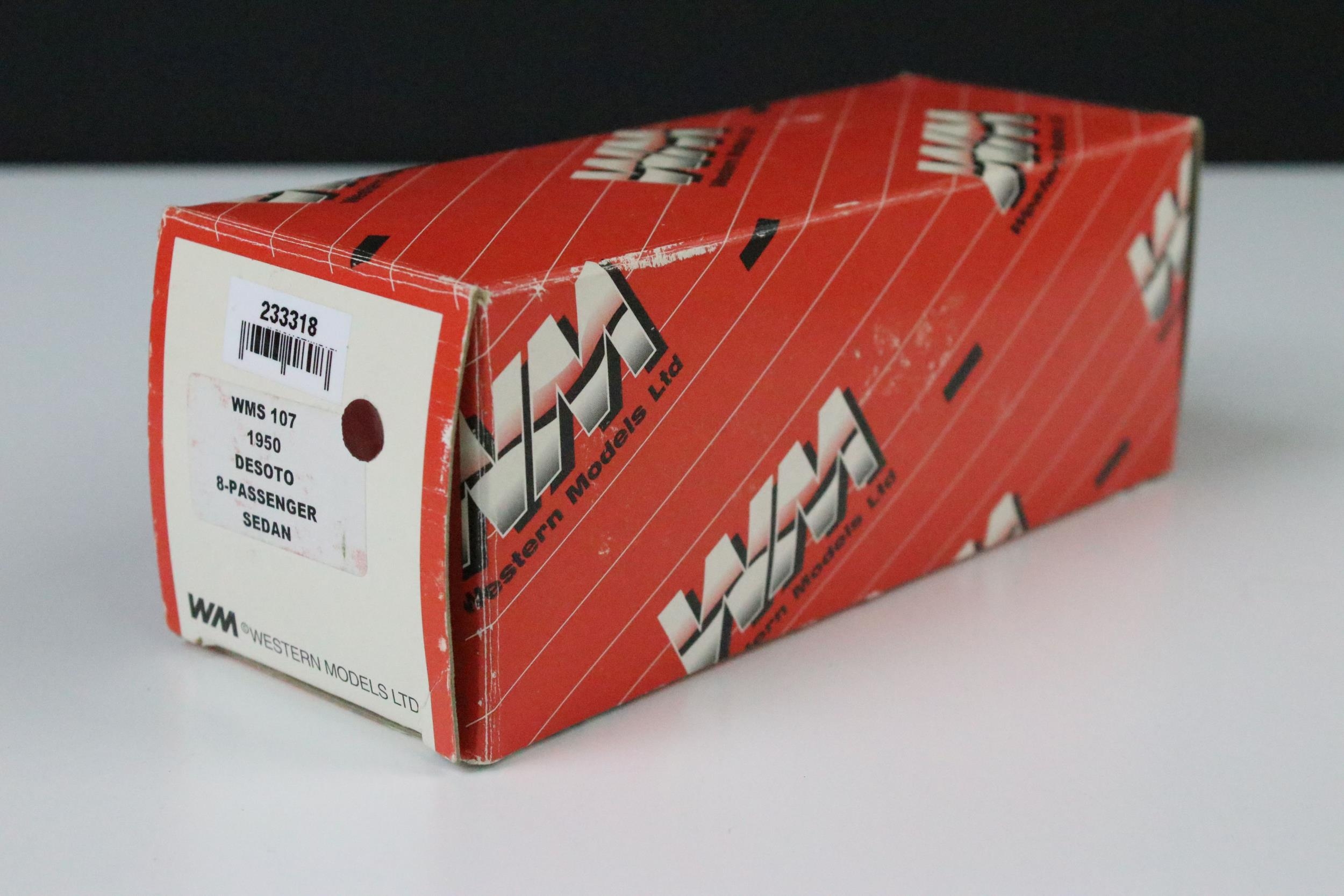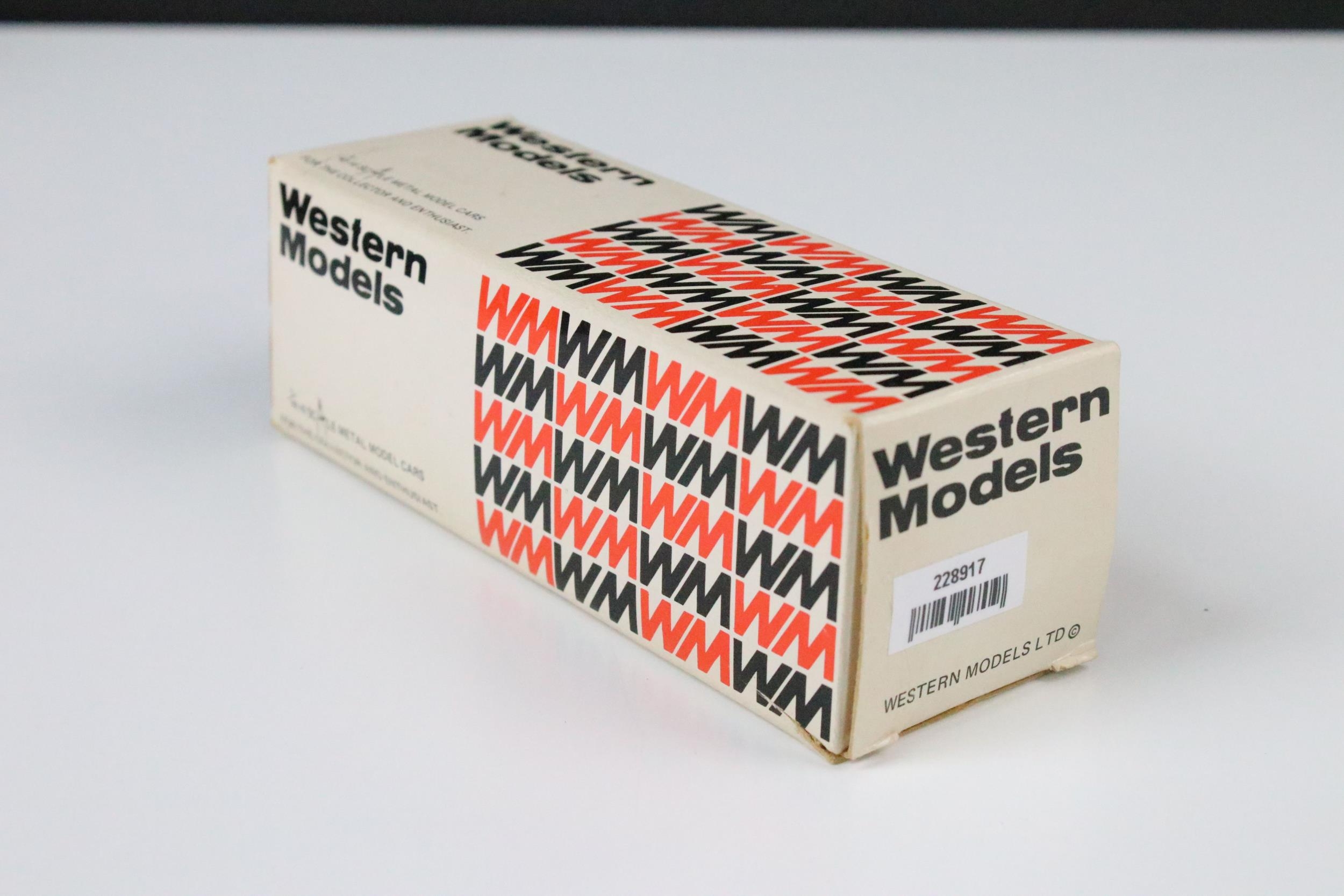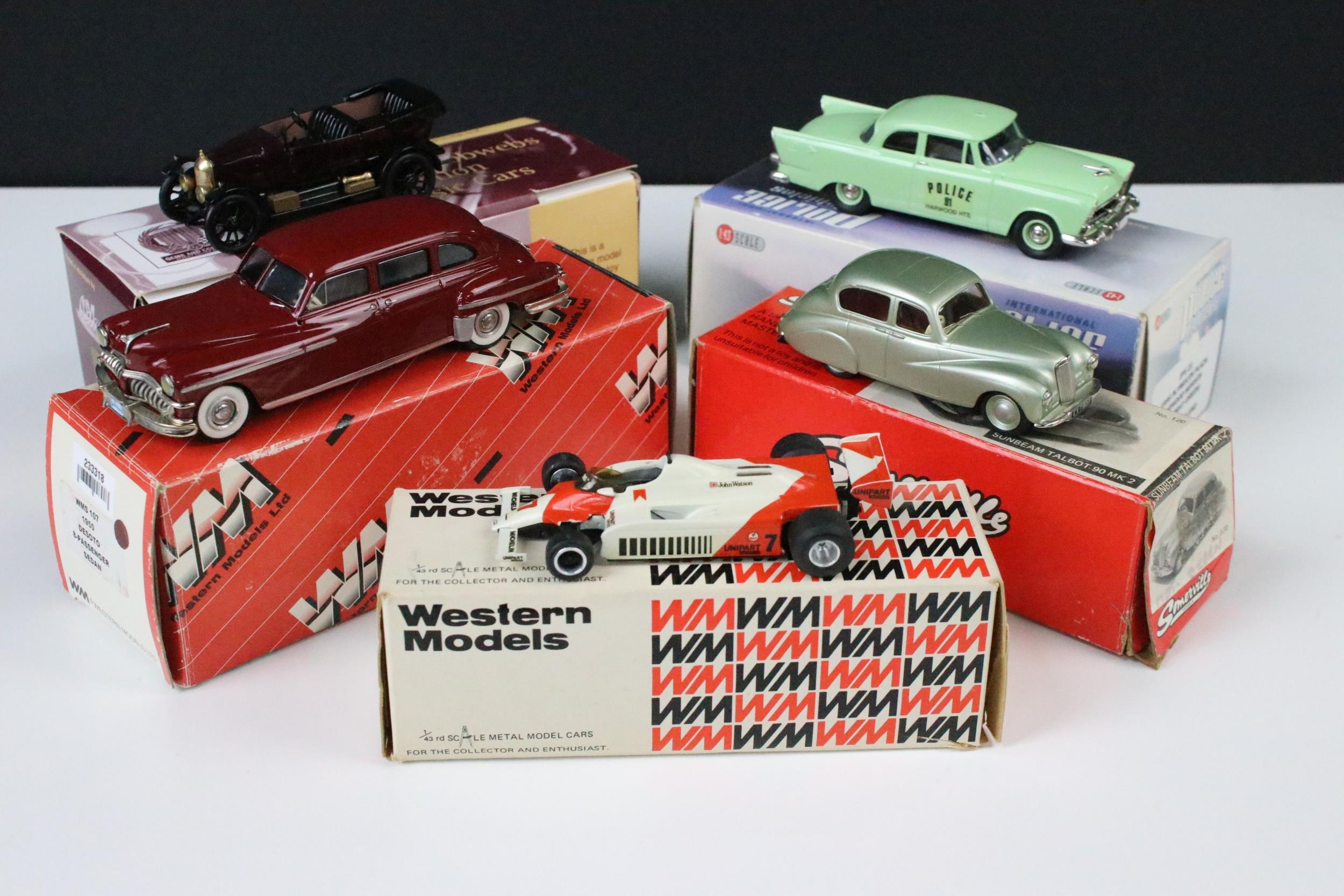 Five boxed 1/43 diecast models to include 2 x Western Models featuring WMS 107 1950 Desoto 8-Passenger Sedan and WRK 30 1981 Marlboro MP4 F1, Gems And Cobwebs Milestone Collection Of Classic Cars GC69M Morris Bull Nose 1924 Tourer Maroon/Black, Brooklin Models International Police Vehicles IPV 21 1956 Plymouth Plaza Harwood Heights (Sea Spray Green) and Somerville Models Sunbeam Talbot 90 MK 2 No. 120, all ex with reference labels to side of boxes