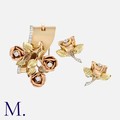 A Diamond Brooch and Earring Suite in yellow, white and rose gold, comprising a brooch of floral form, set with round cut diamonds totalling approximately 0.85 carats, and a pair of earclips of similar design. Unmarked, tests indicate 18 carat gold.