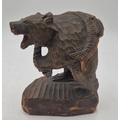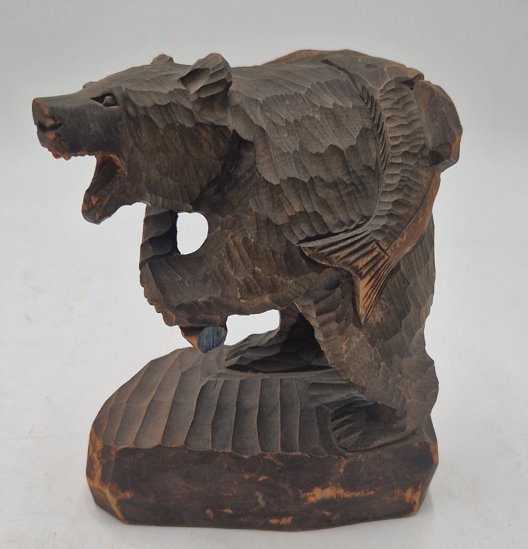 WOODEN JAPANESE CARVING (Kibori Kuma) MODEL OF A BEAR With SALMON.