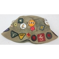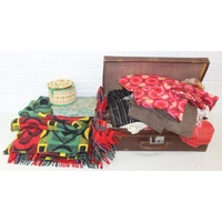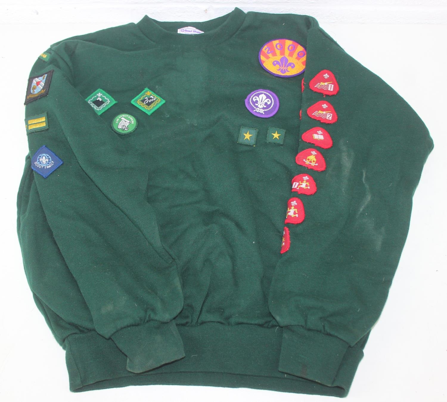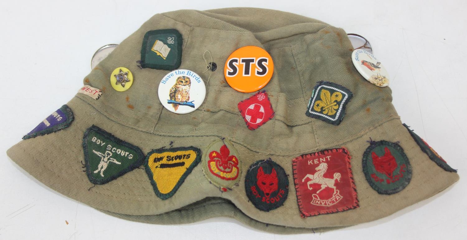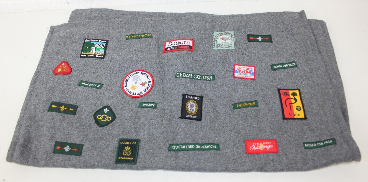 Qty of assorted vintage clothing and curios to inc scout clothing sewn with badges, a vintage Oxford United scarf, a number of military REME related pieces