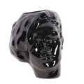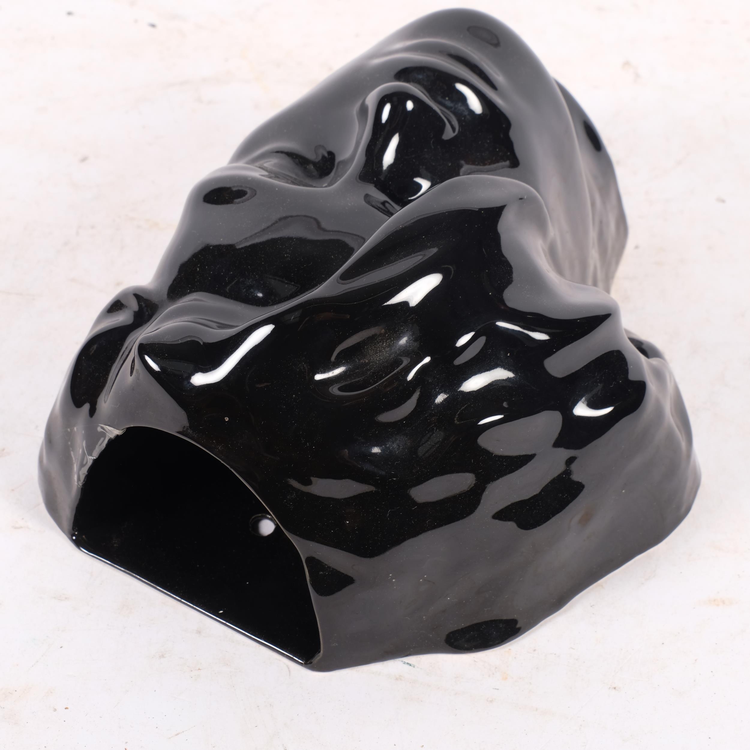 A ceramic wall mask, with pocket in the manner of Goldscheider, slip cast and black glazed, height 23cm.