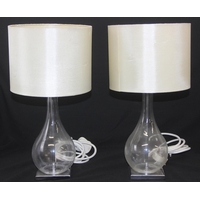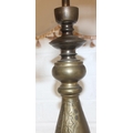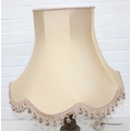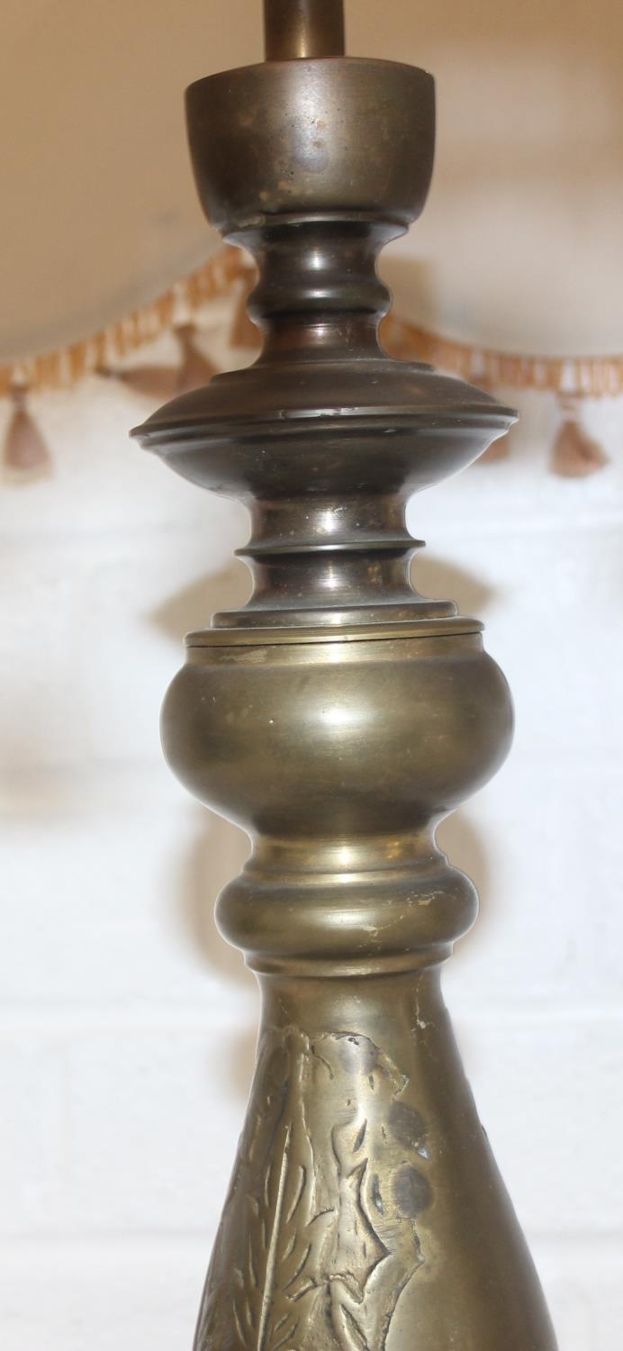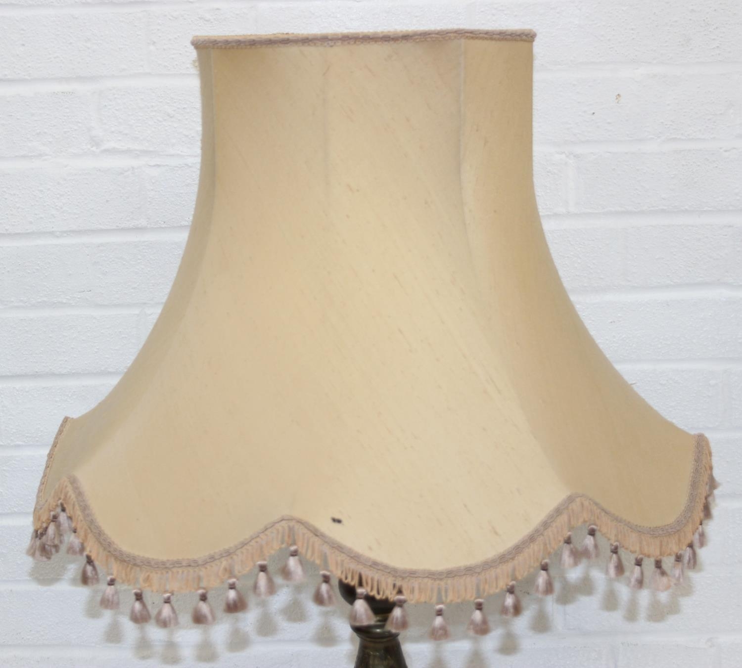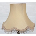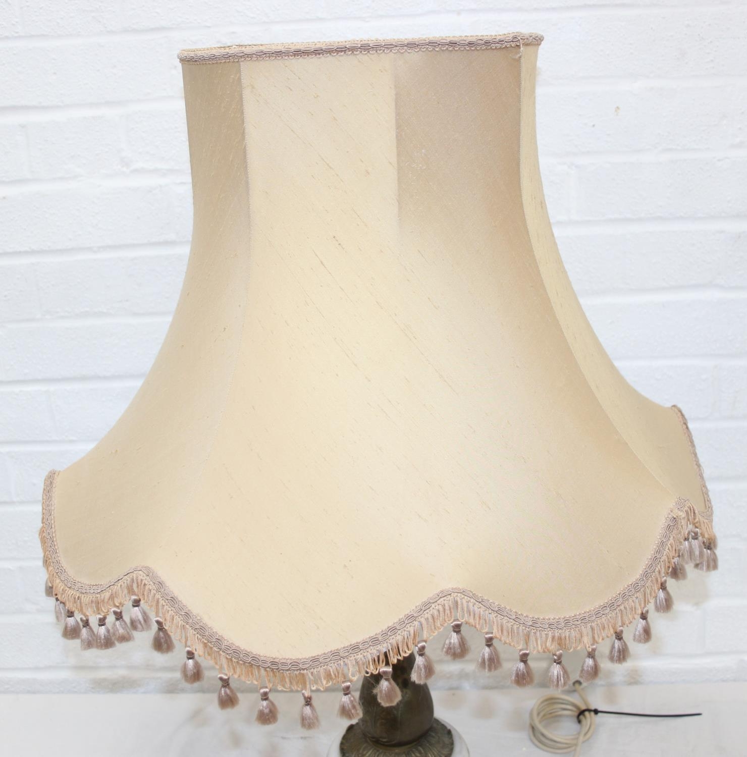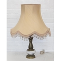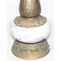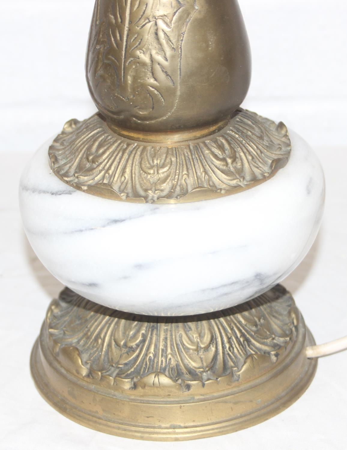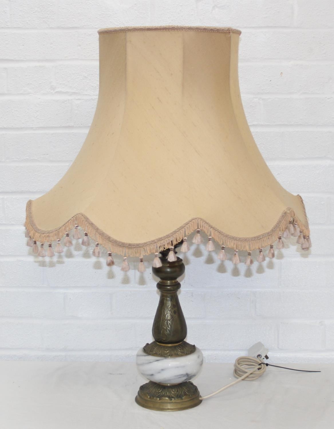 A large vintage brass and grey marble table lamp with shade, 80cm tall