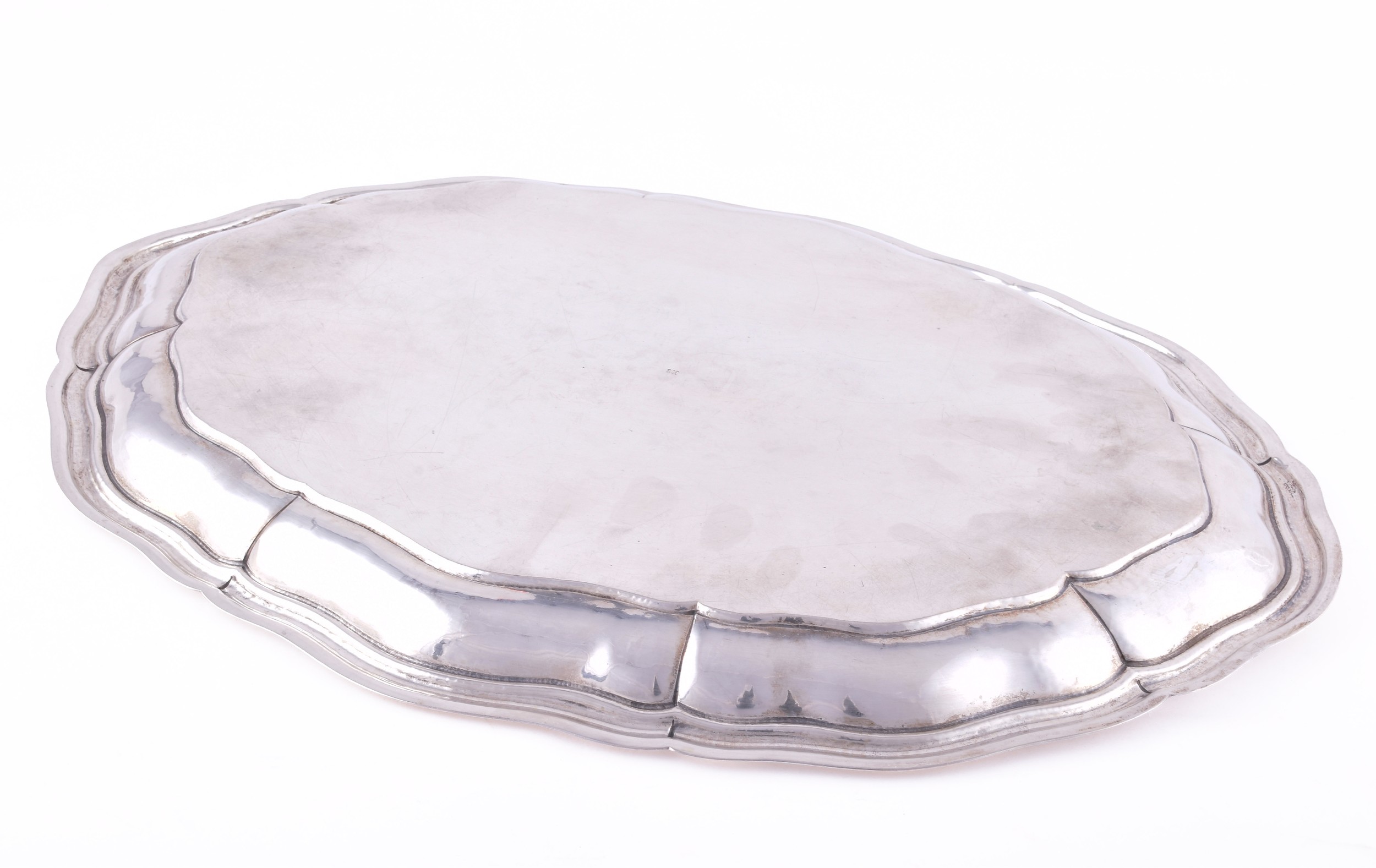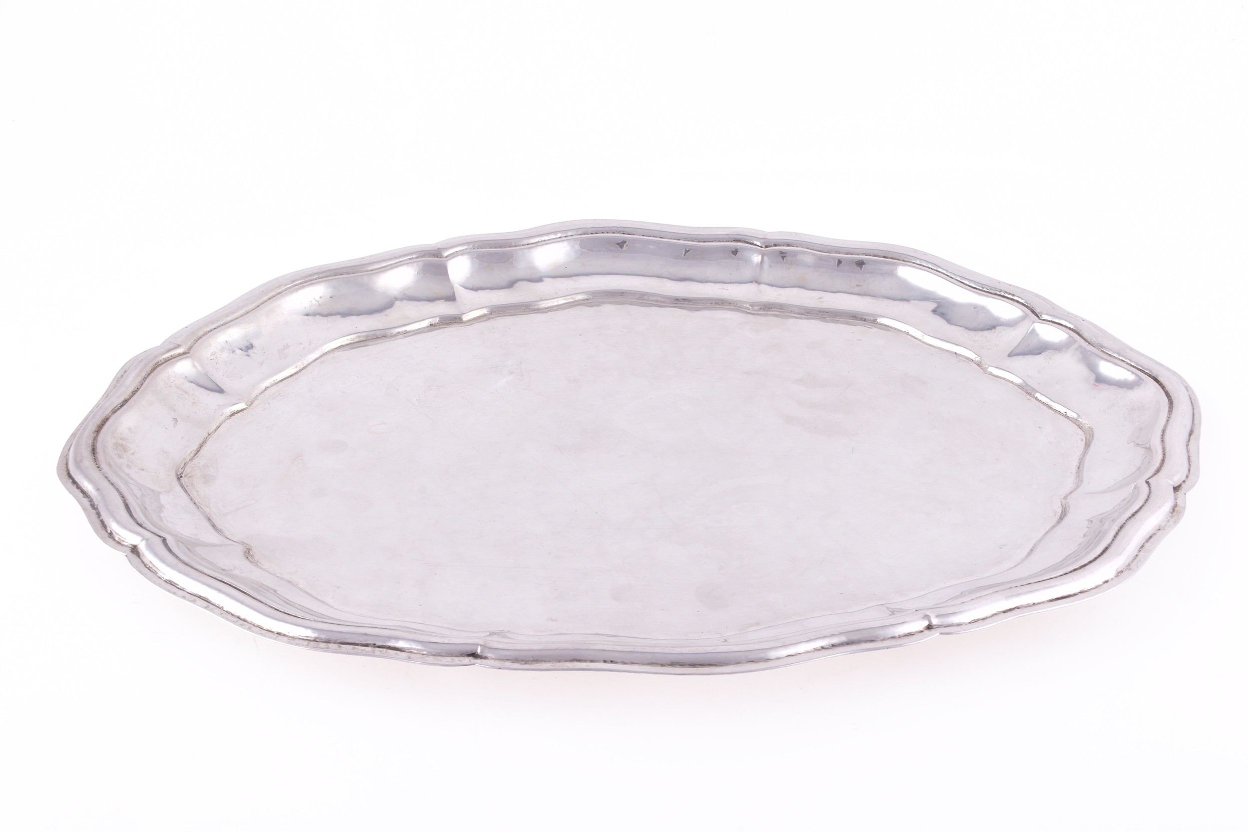 A continental 800 standard silver pie crust tray, 38 x 29 cm.