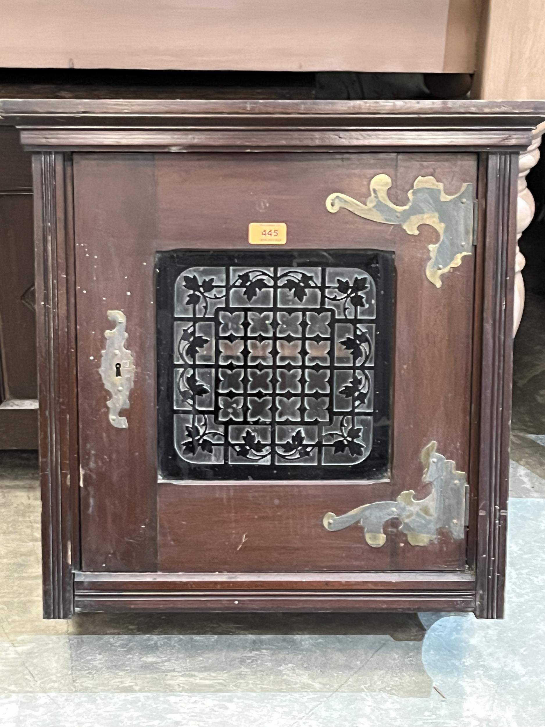 A Victorian mahogany wall cupboard enclosed by an overlaid glazed door. 24' high