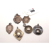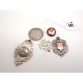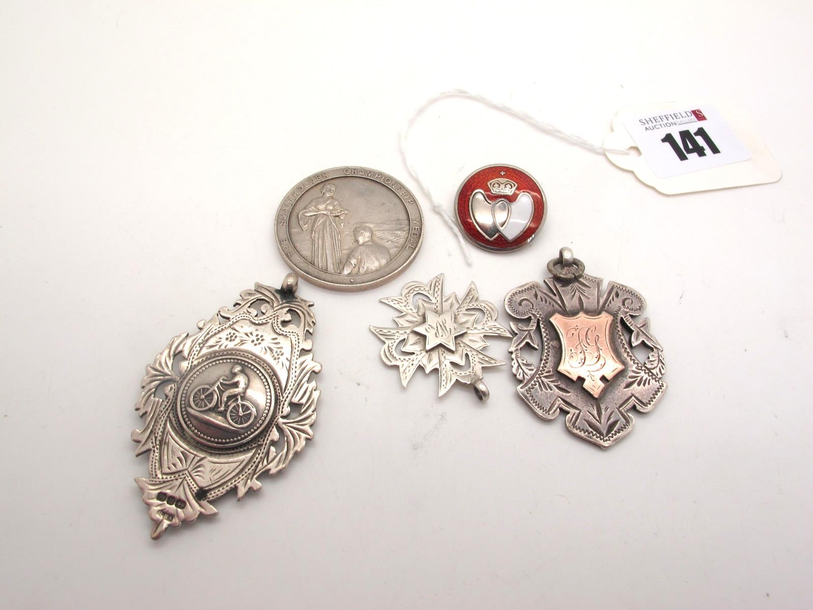 Hallmarked Silver Medallion Pendants, together with a hallmarked silver "The Smallholder Championship Medal"; a hallmarked silver and enamel Blood Donor badge, etc. (5)