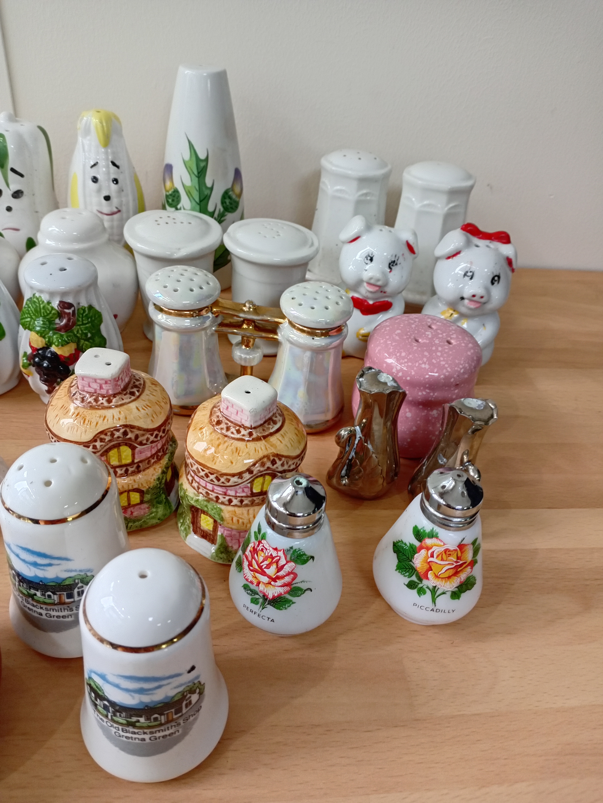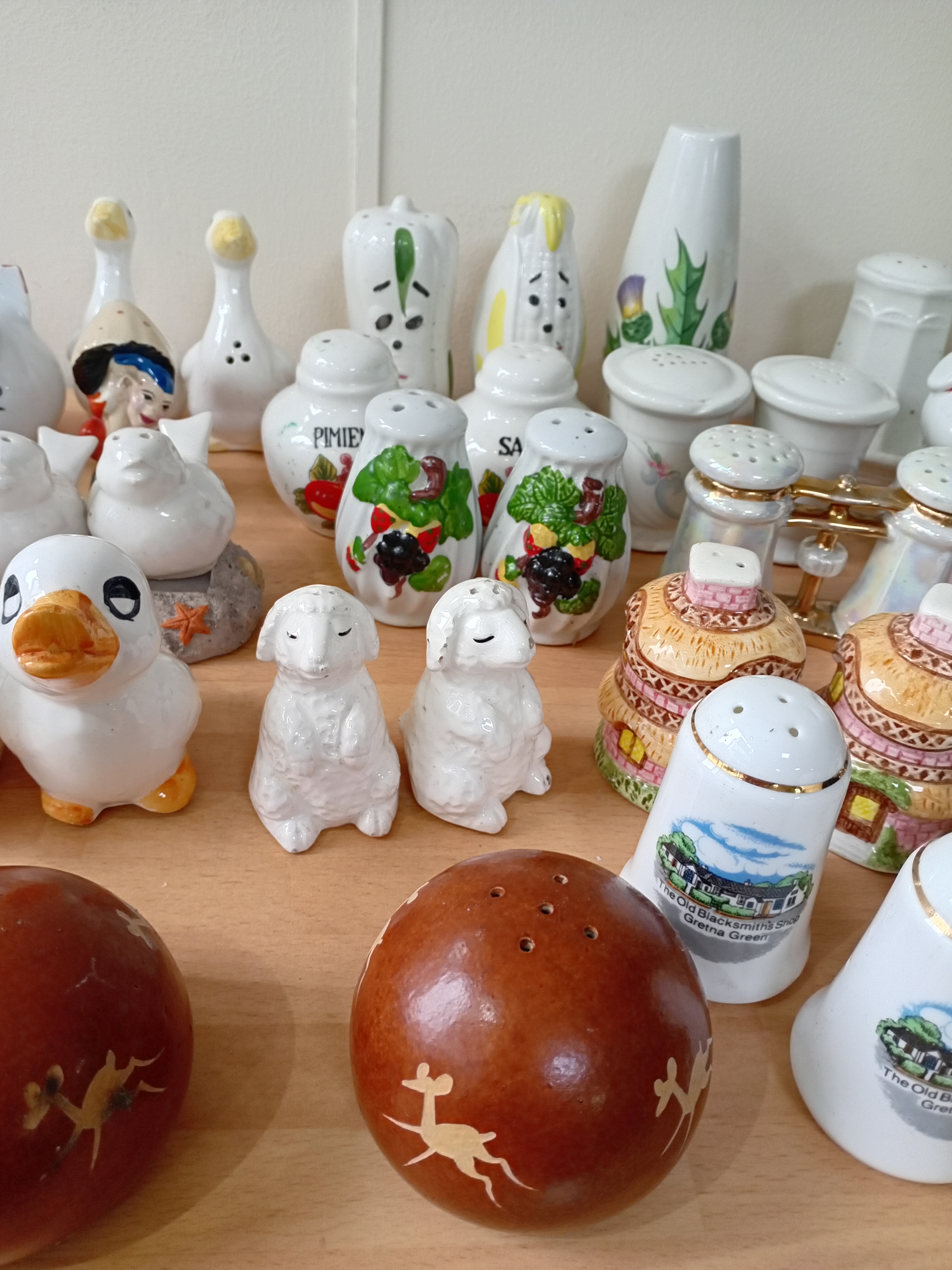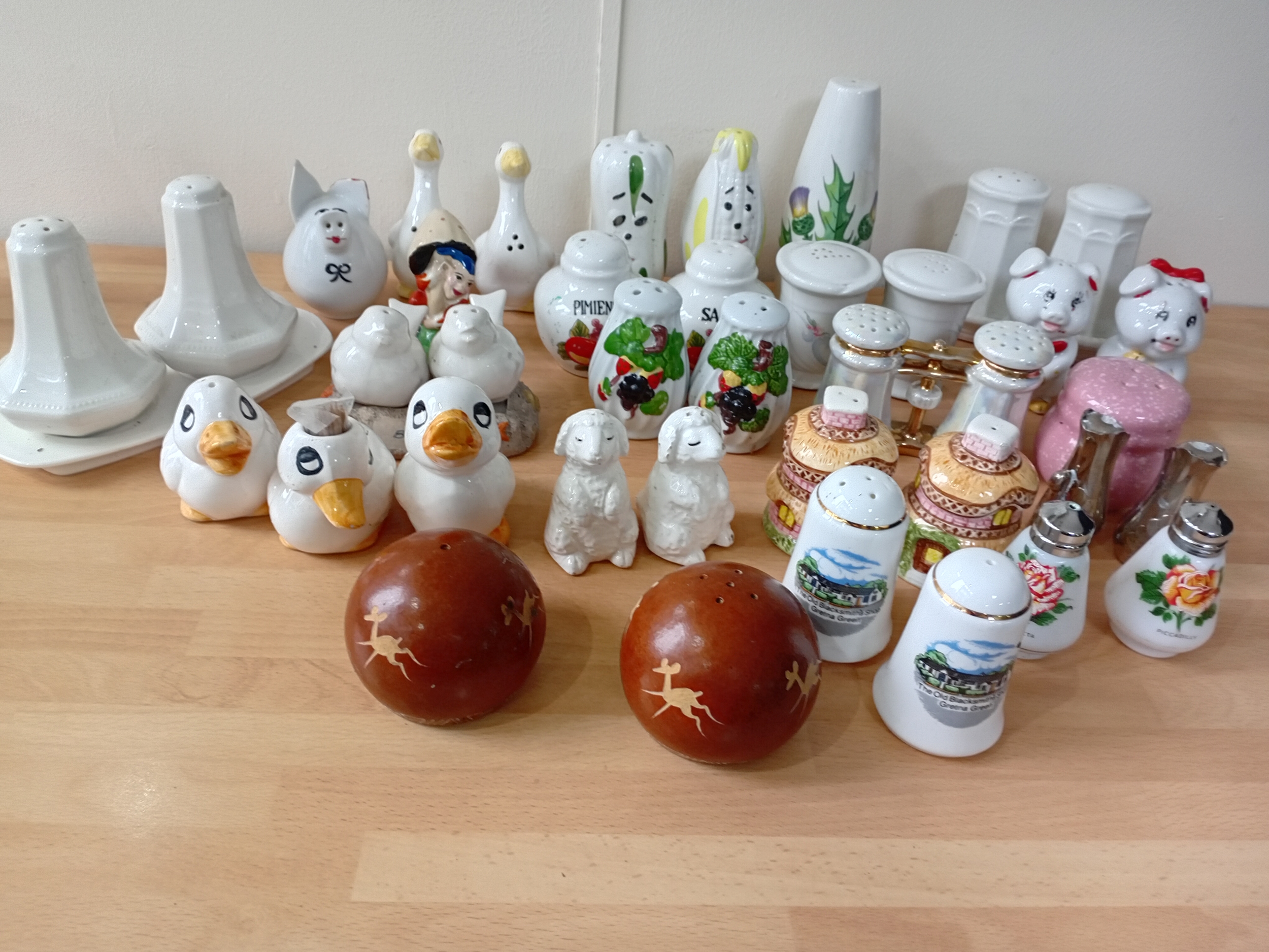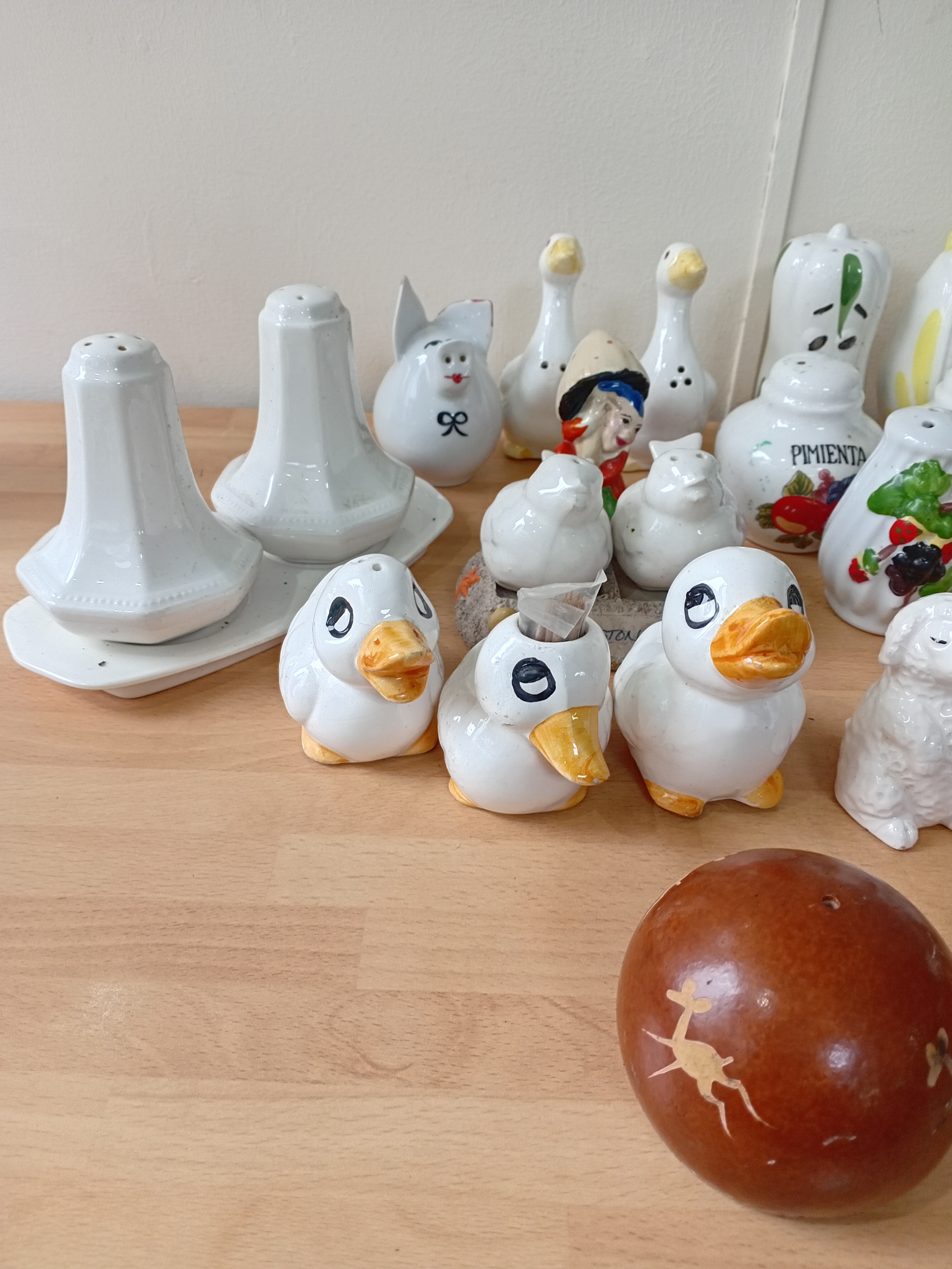 A collection of ceramic salt and pepper shakers.