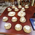 Cream Gold & Pink Victorian Rose Paragon Tea Set, Sups, Saucer, Side Plates etc