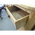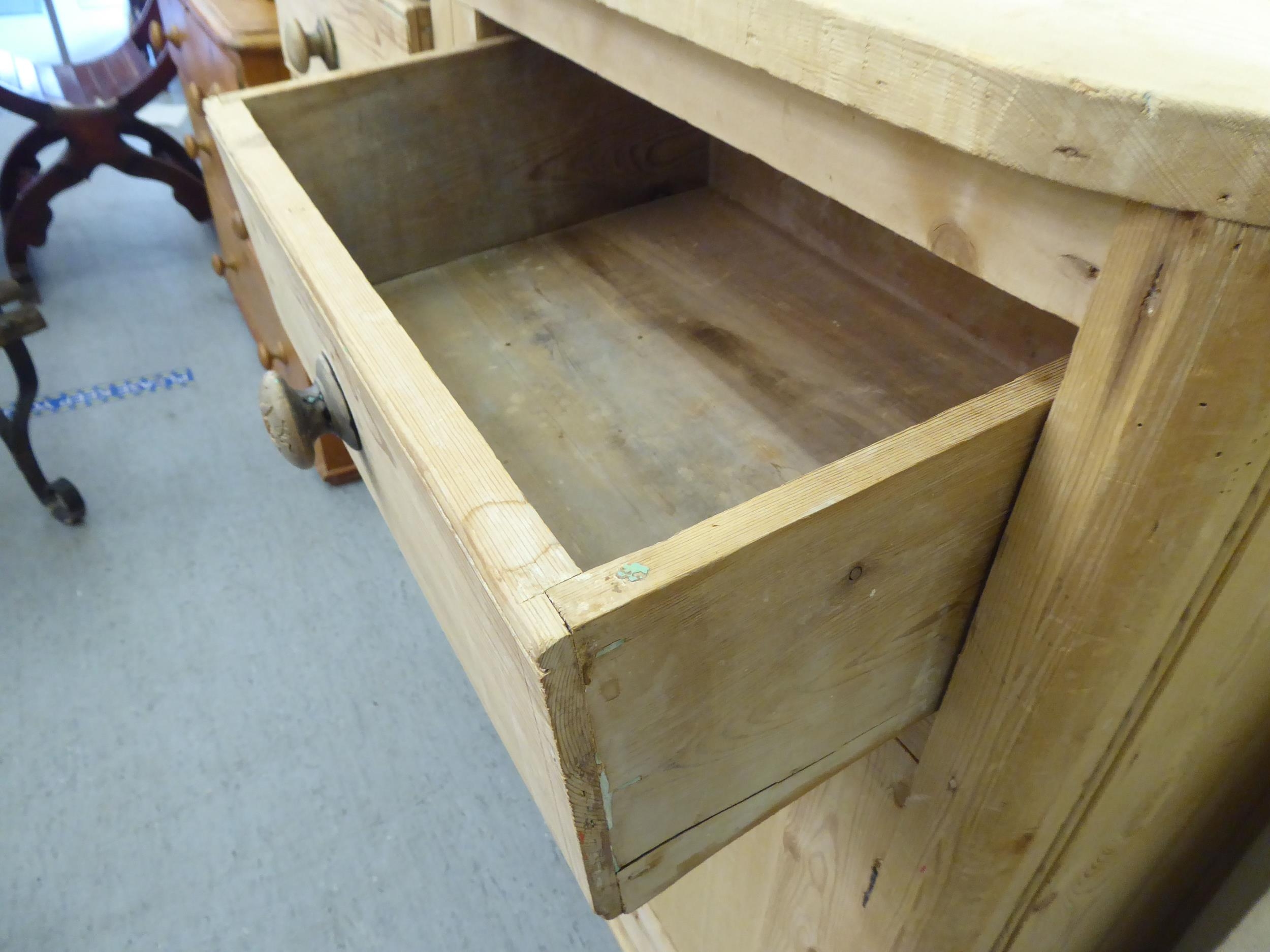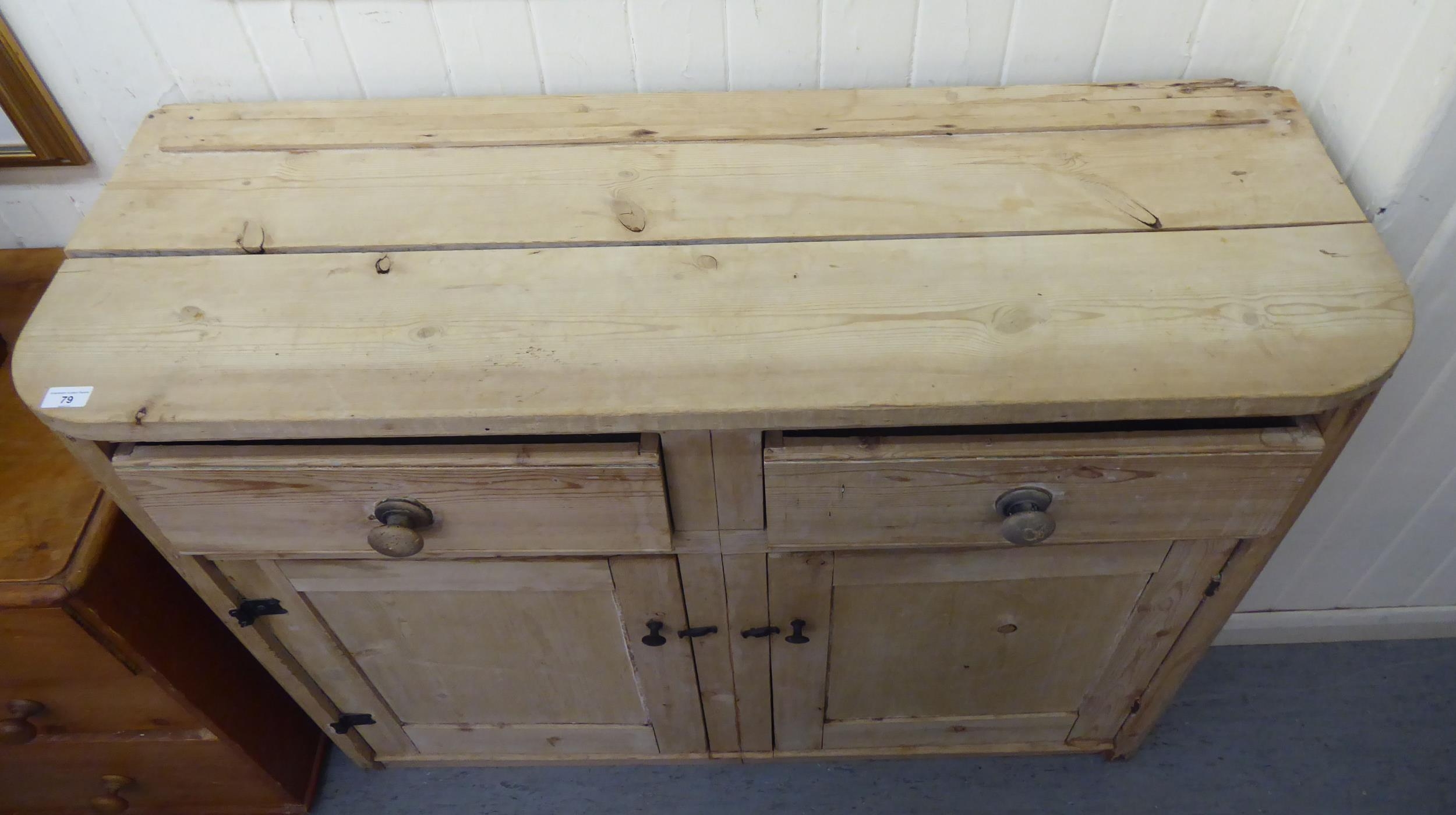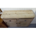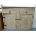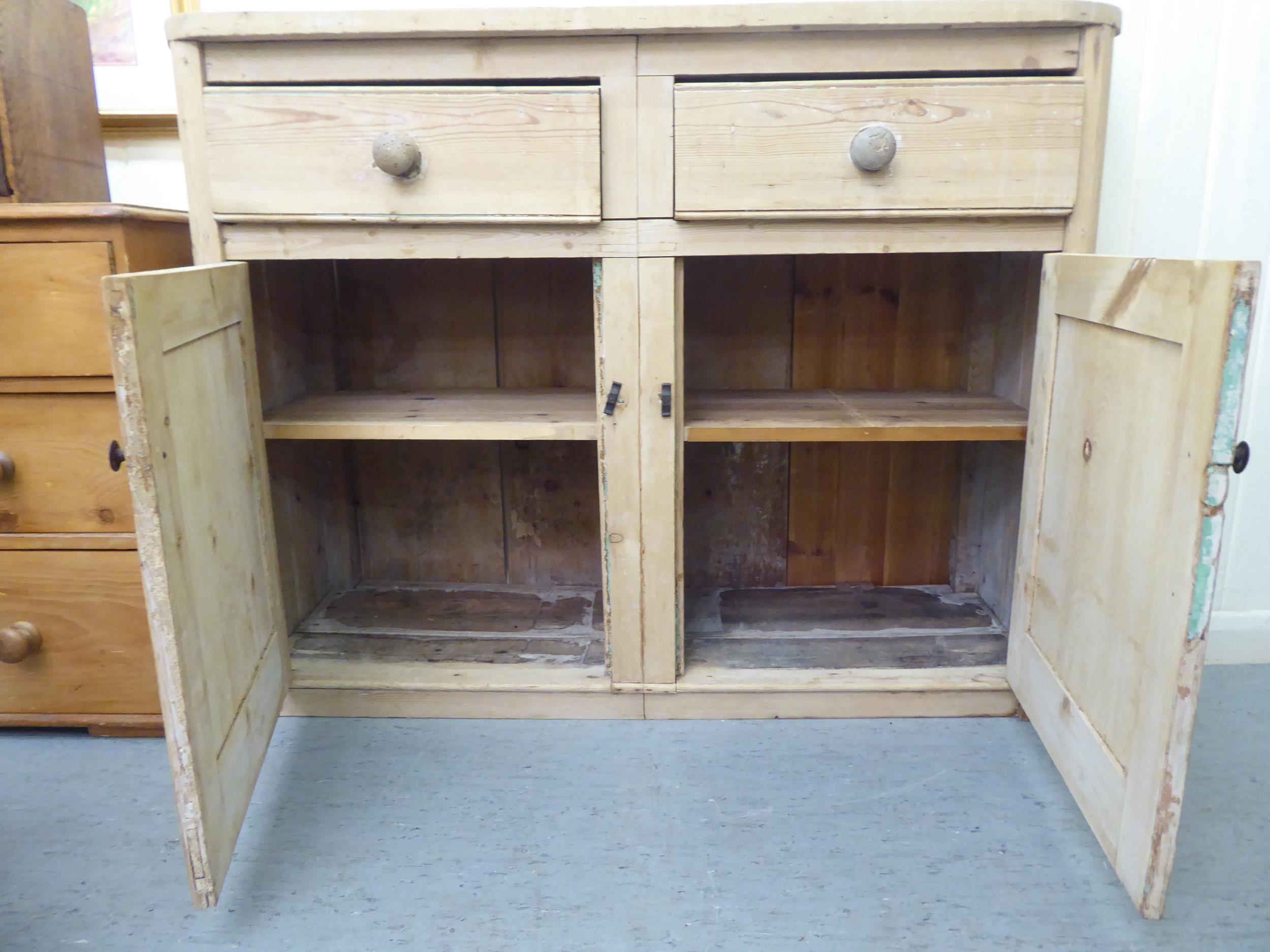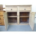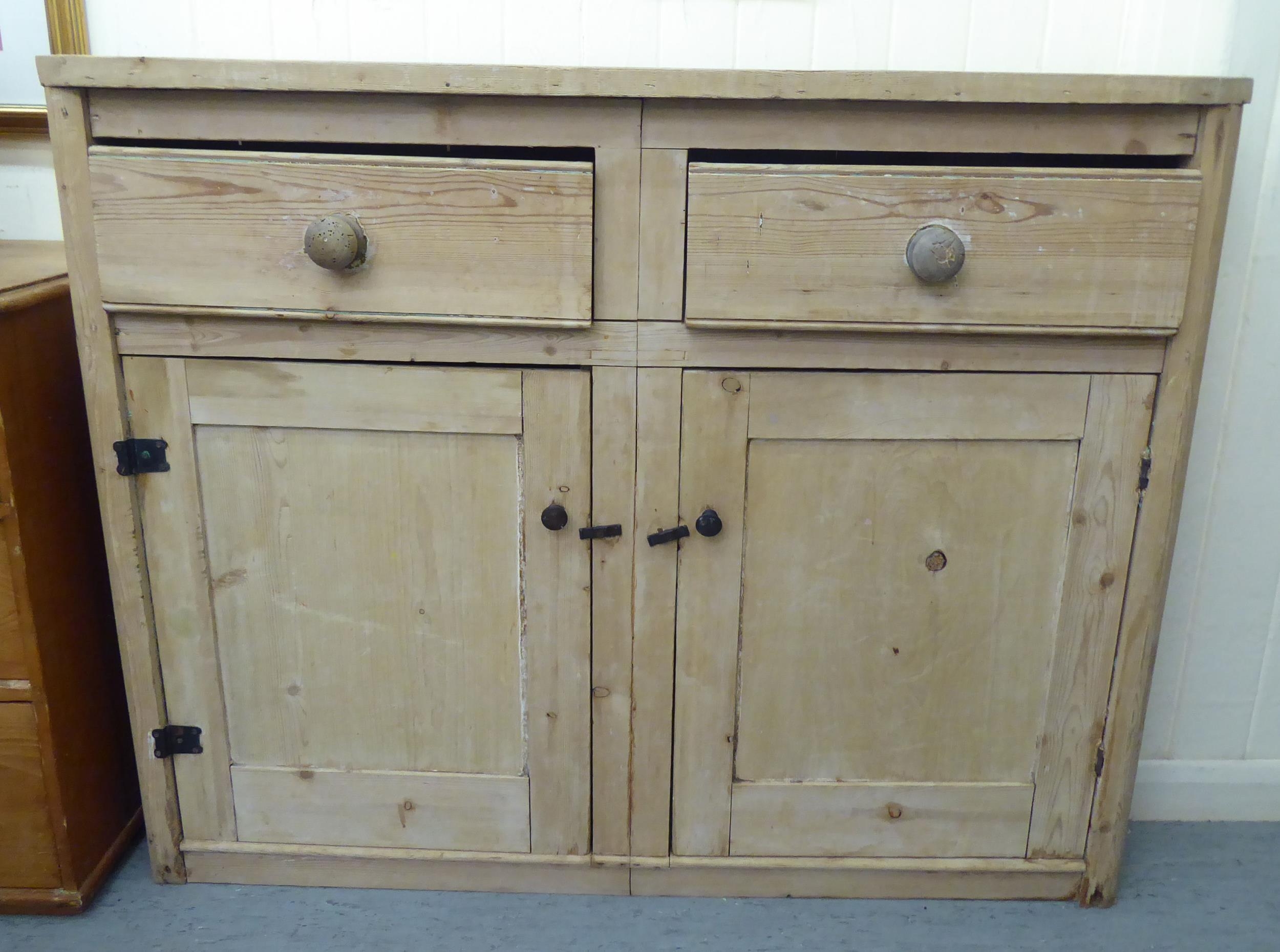 A late 19thC bleached pine side cabinet with two drawers, over two panelled doors, on a plinth 38"h 50"w