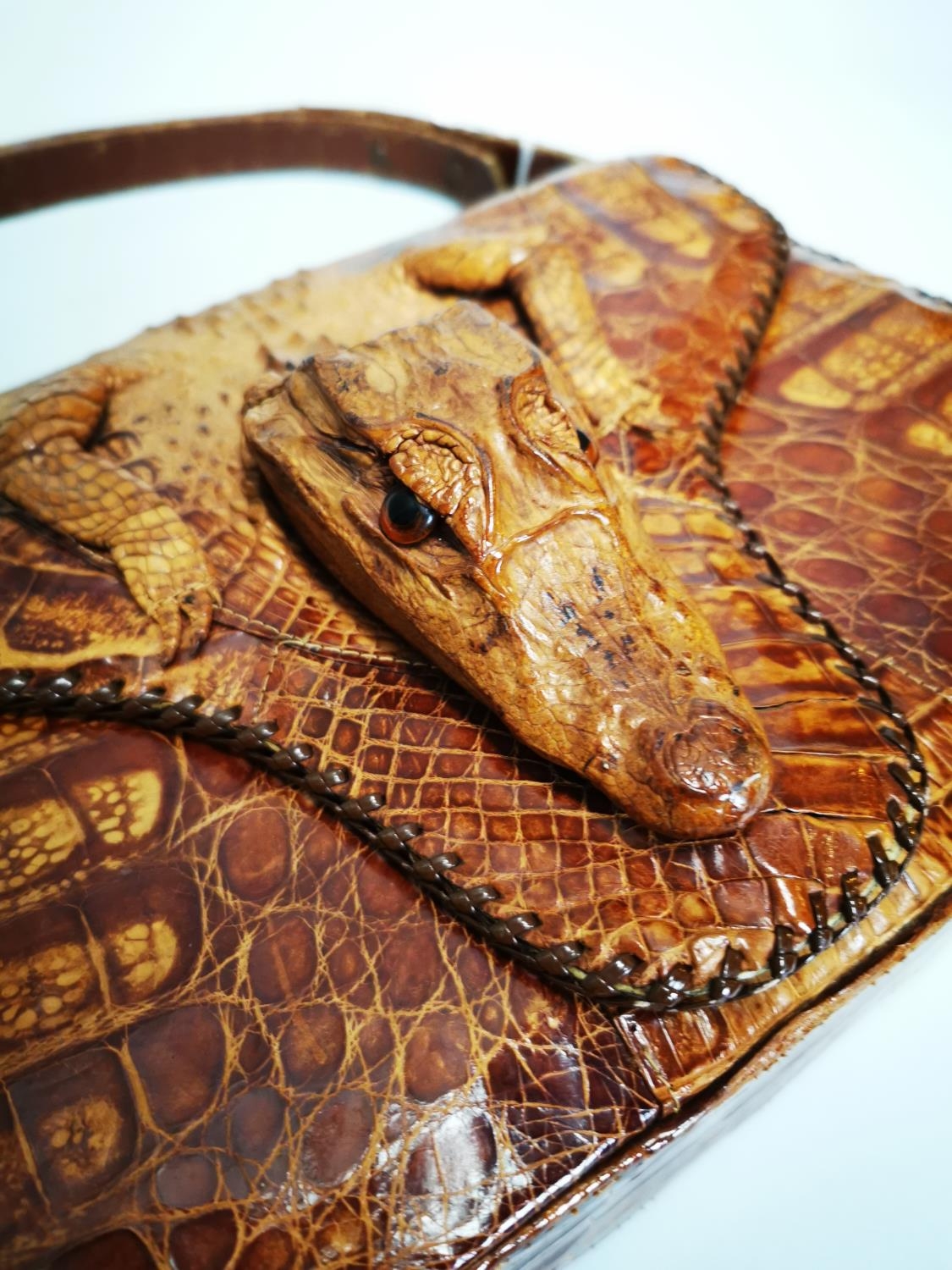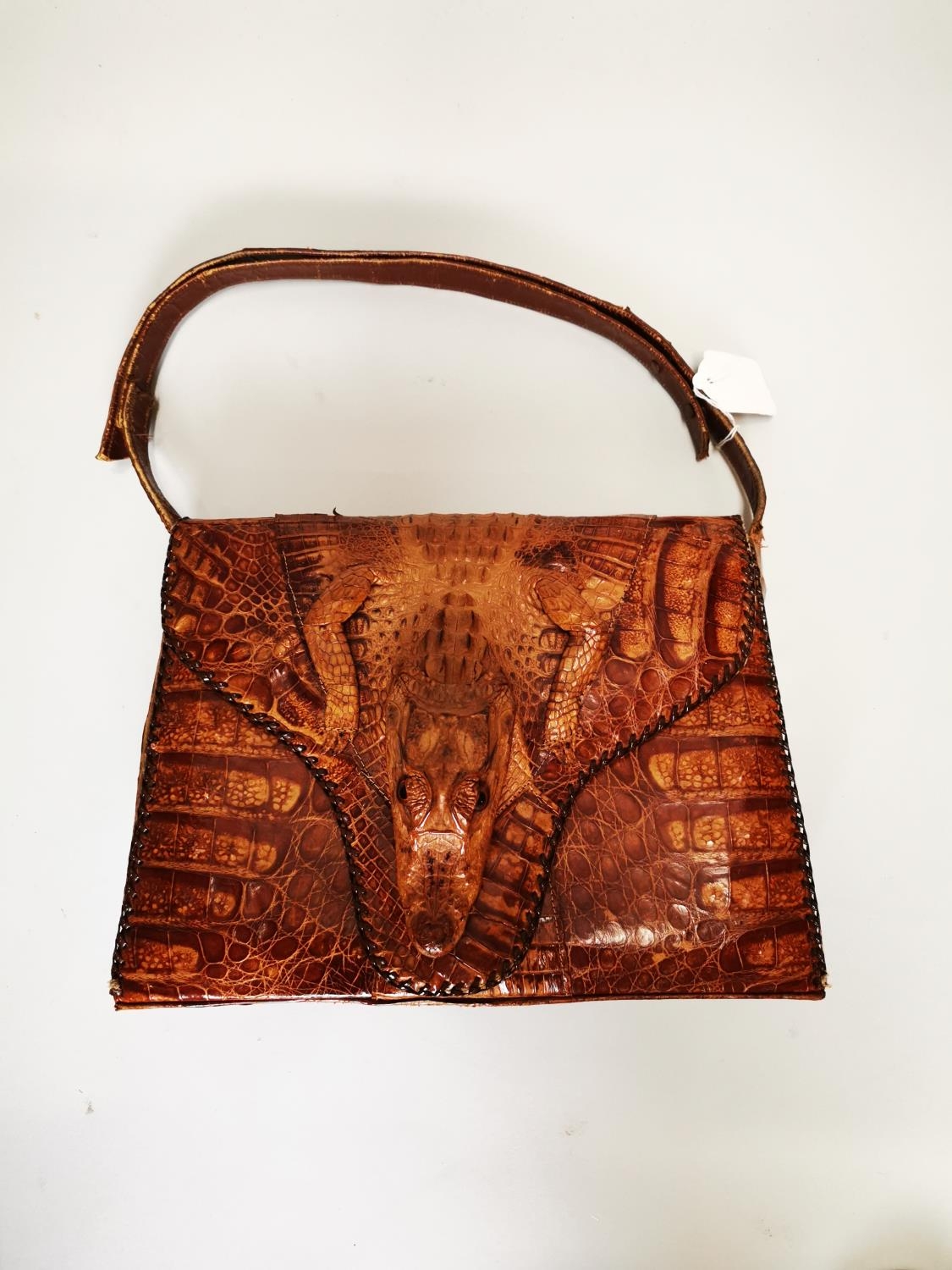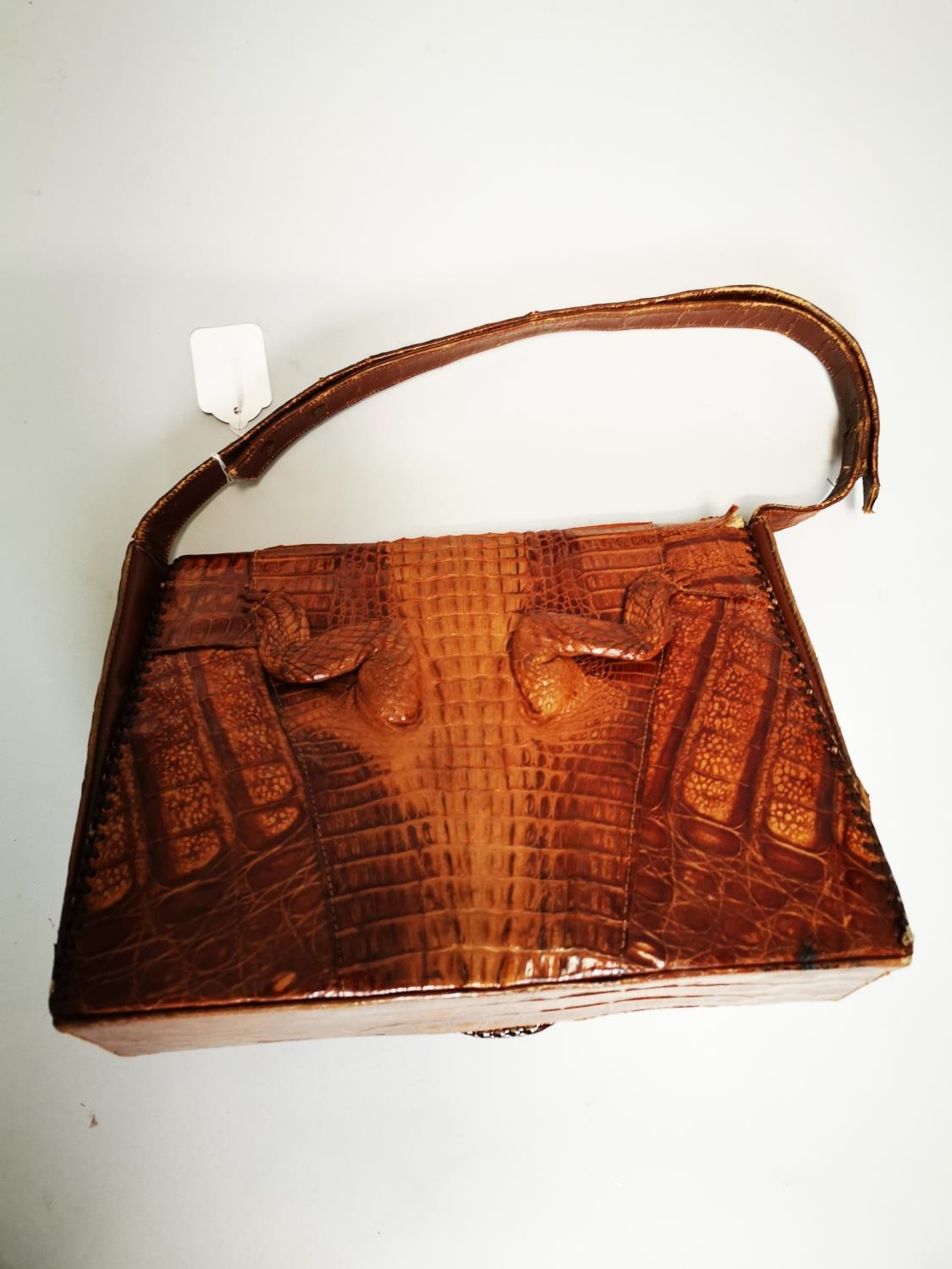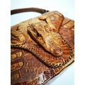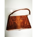 Crocodile skin ladies handbag {24 cm H x 31 cm W x 9 cm D}.