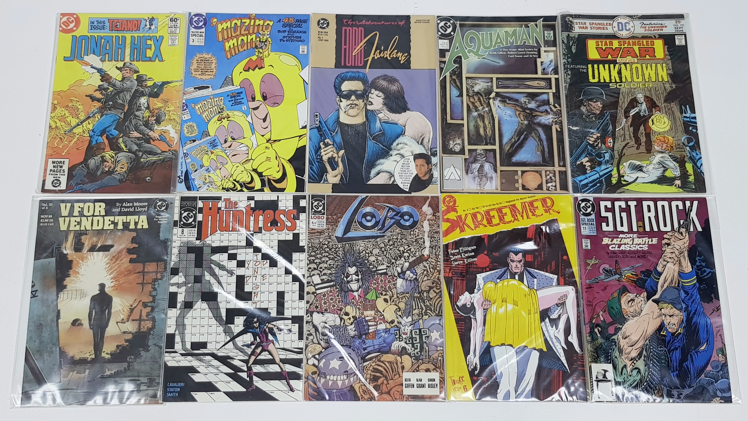 Ten DC Mixed Comics - Most Being in Very Fine to Very Fine Plus Grade. All individually wrapped in plastic. Please refer to photos for finer details.