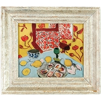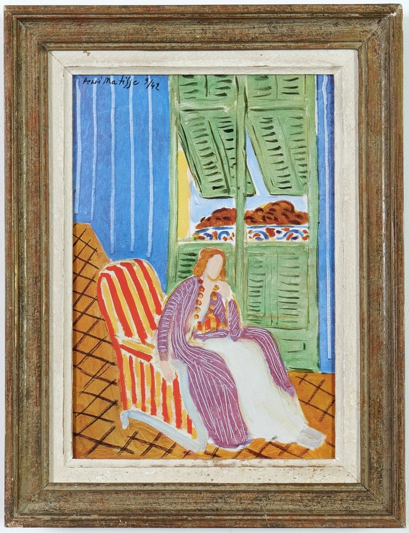 AFTER HENRI MATISSE. LA ROBE VIOLETTE. off set lithograph, signed in the plate, 1945, French vintage frame, 28cm x 20cm.