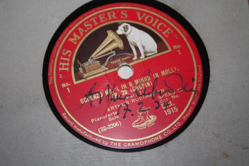 A SIGNED ARTHUR RUBINSTEIN 78 RPM RECORD DATED 17TH FEBRUARY '34