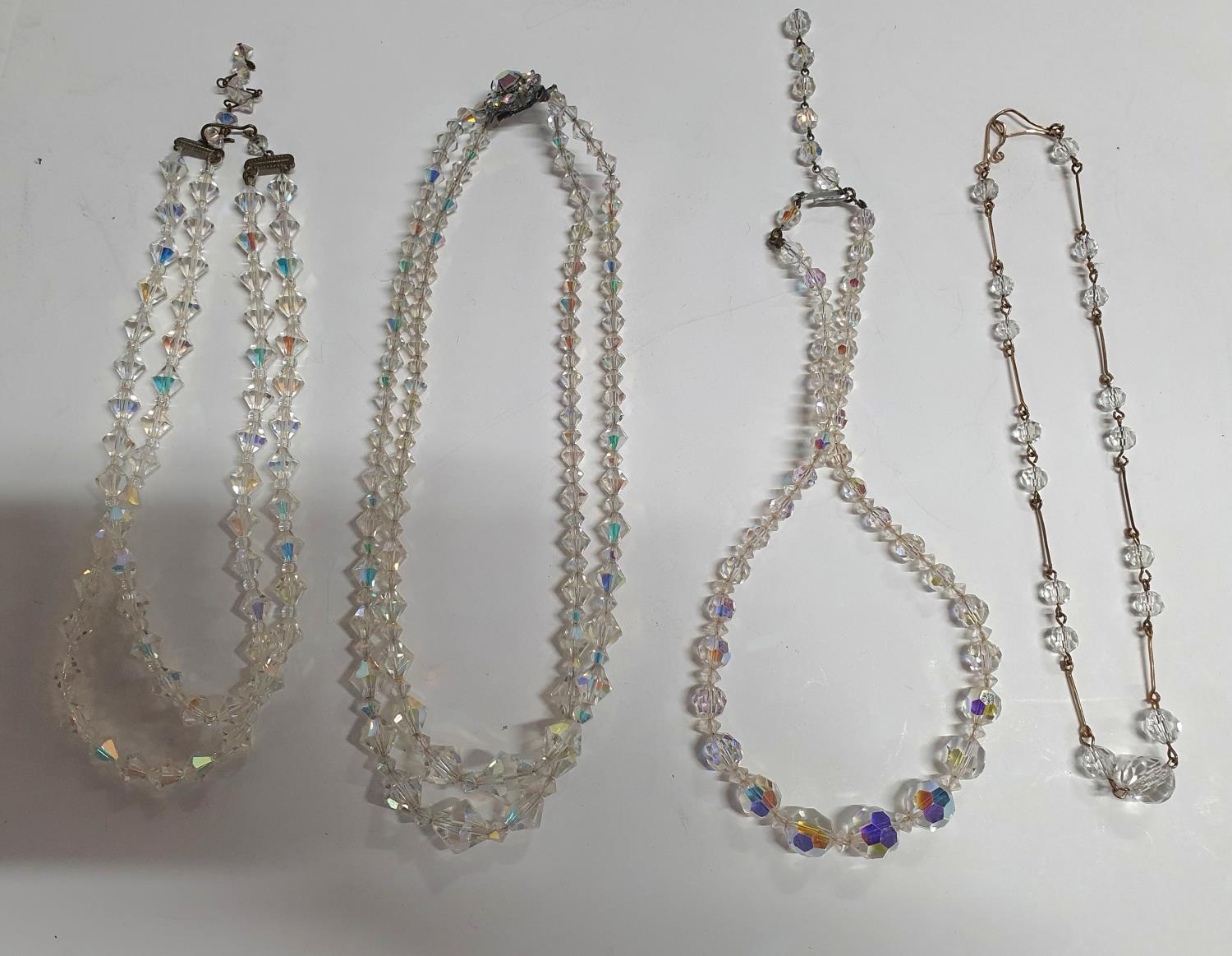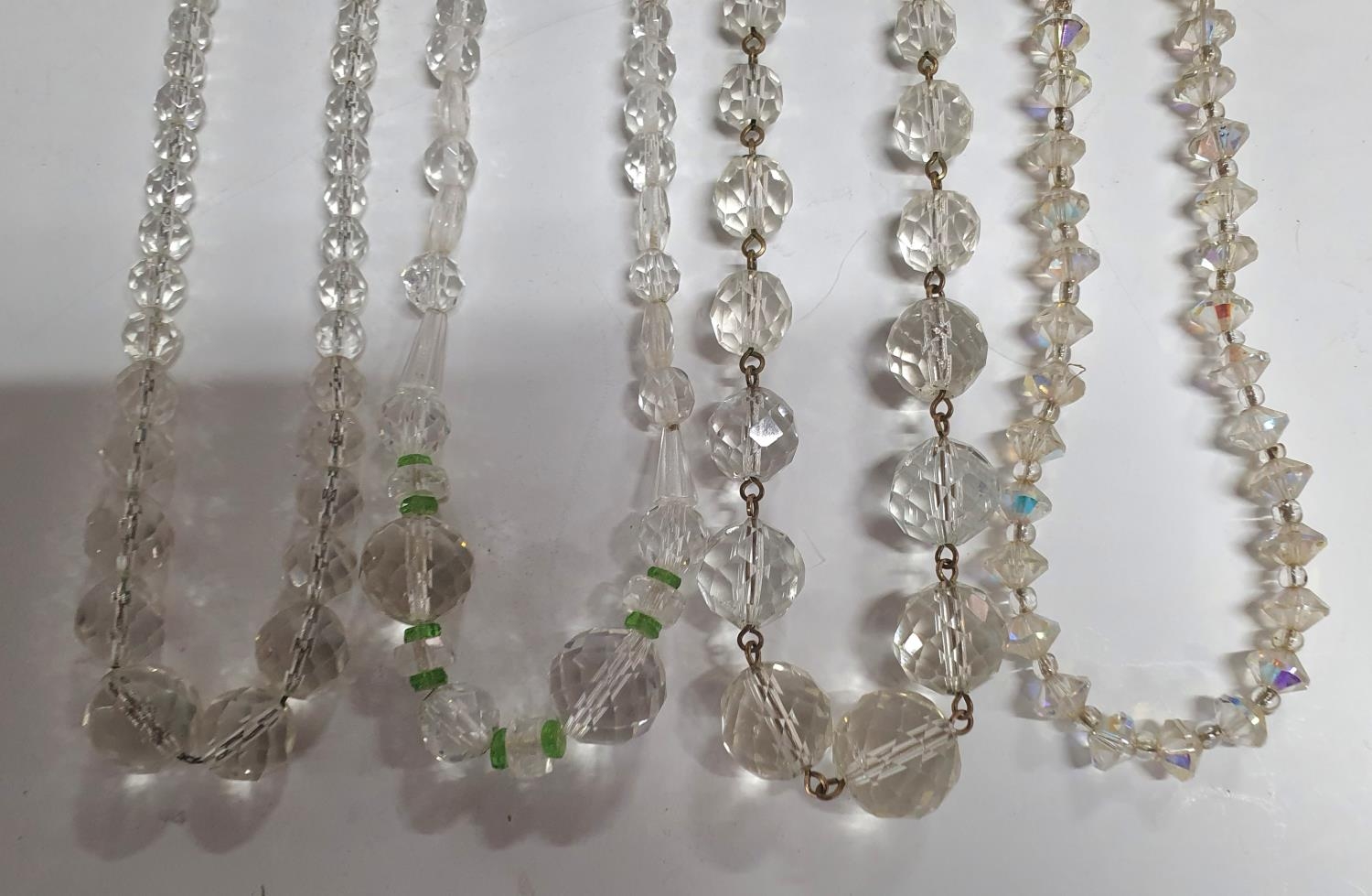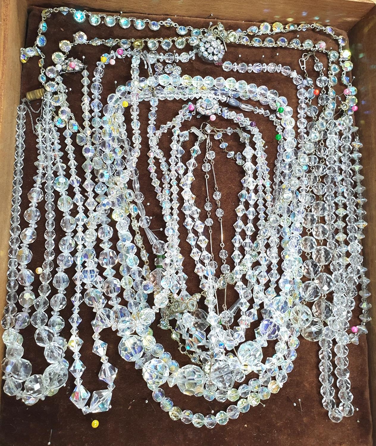 Large quantity of Edwardian glass necklaces with 2 pairs of earings and a brooch