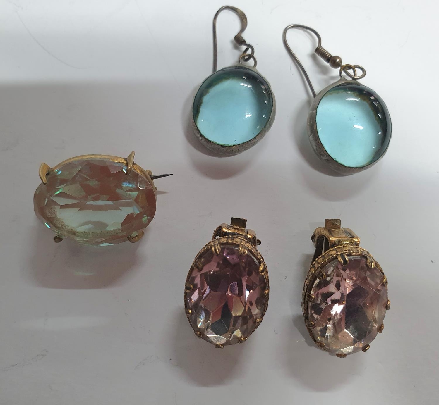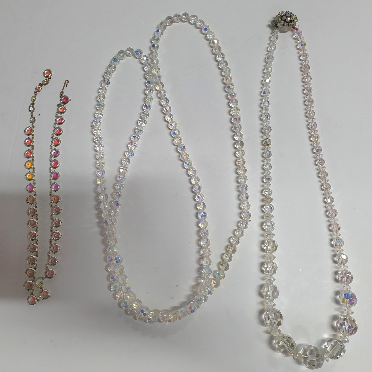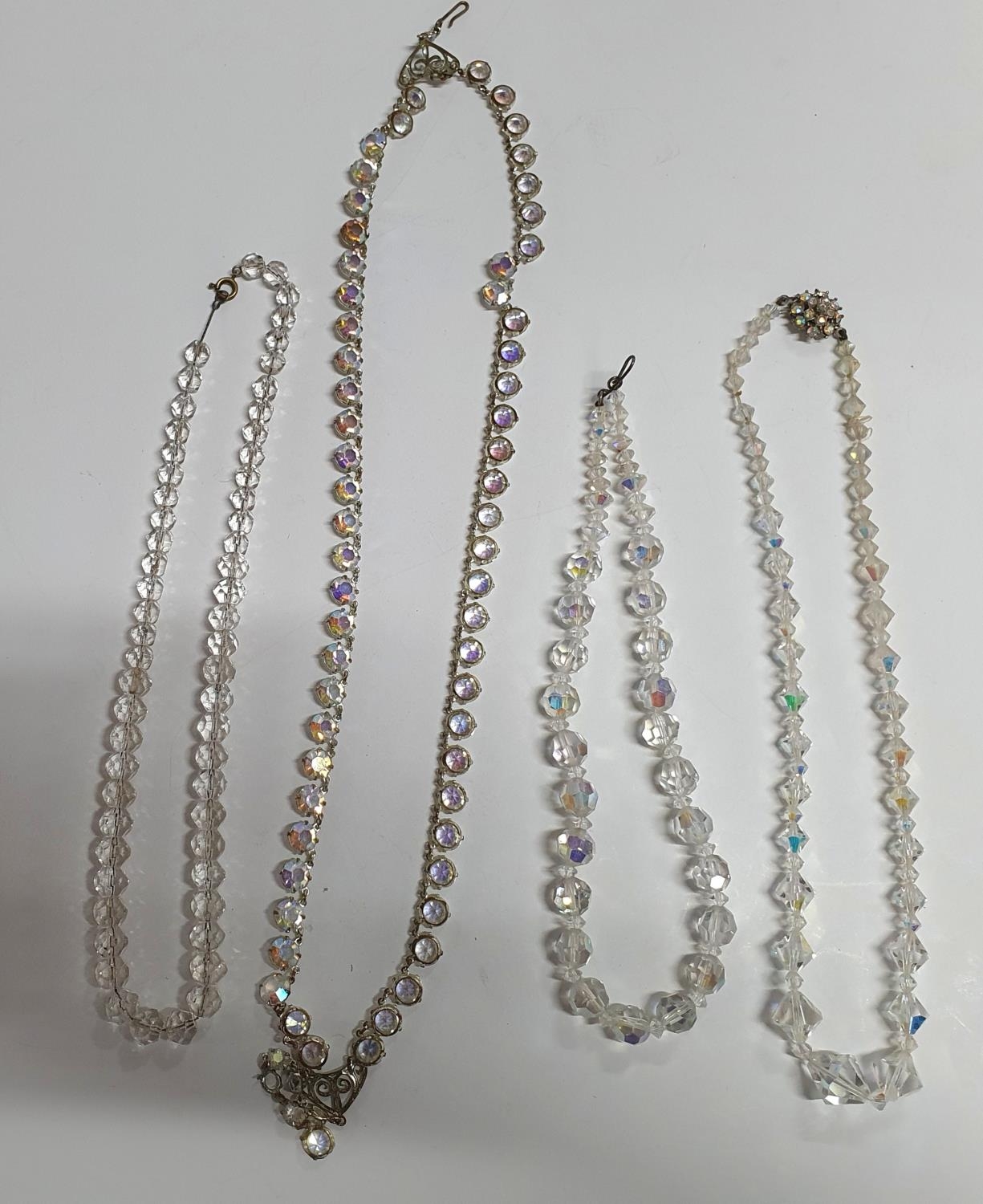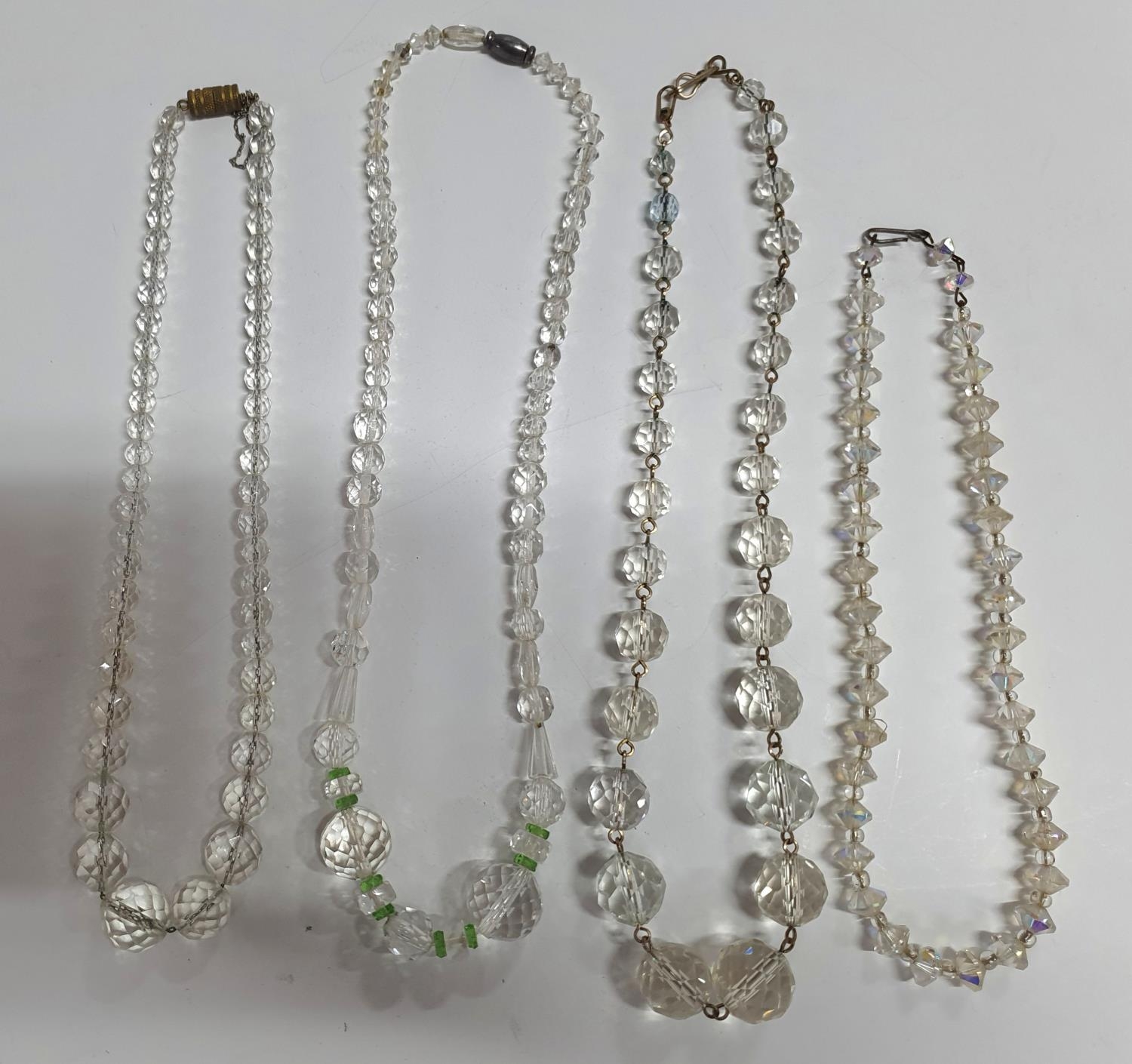 Large quantity of Edwardian glass necklaces with 2 pairs of earings and a brooch