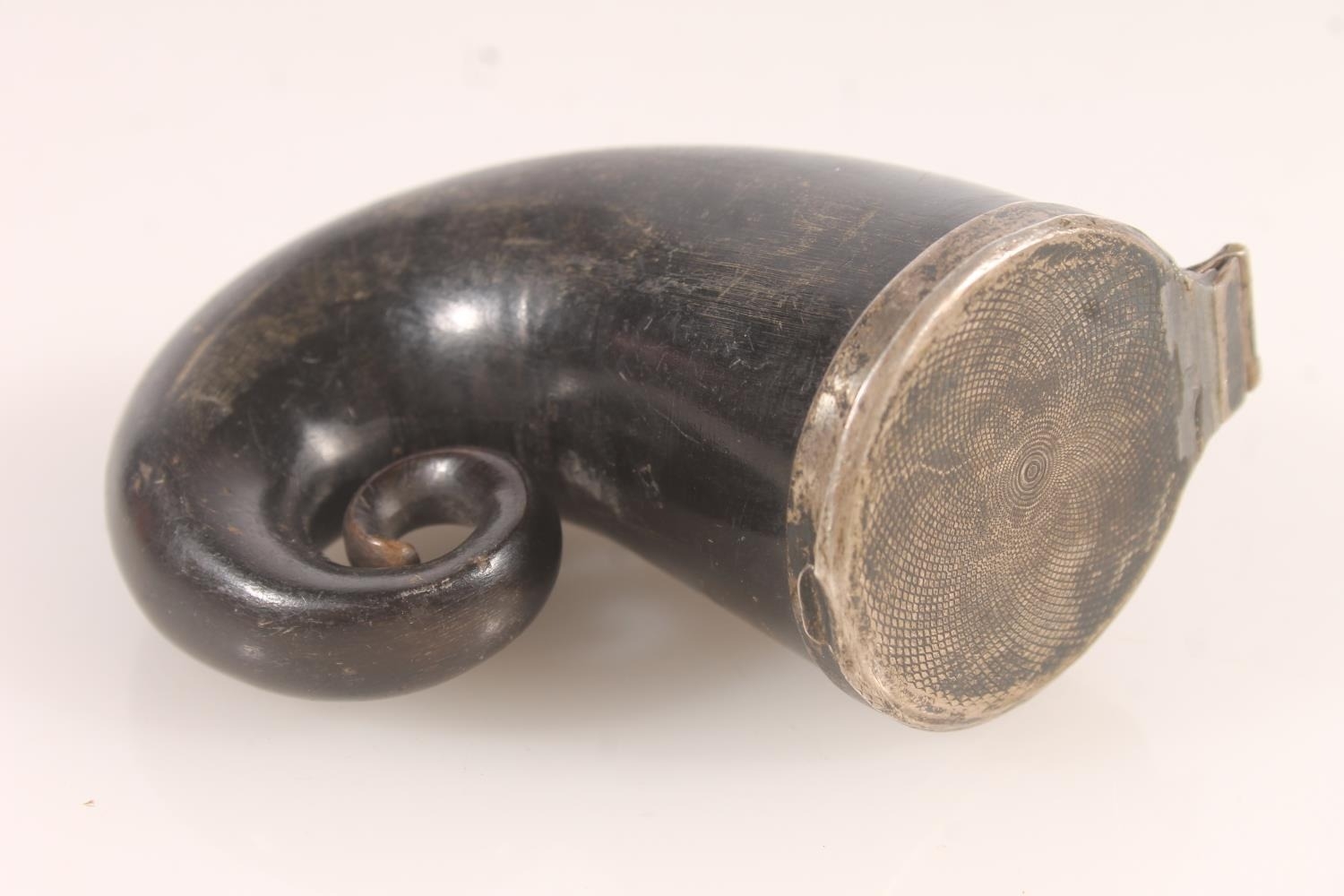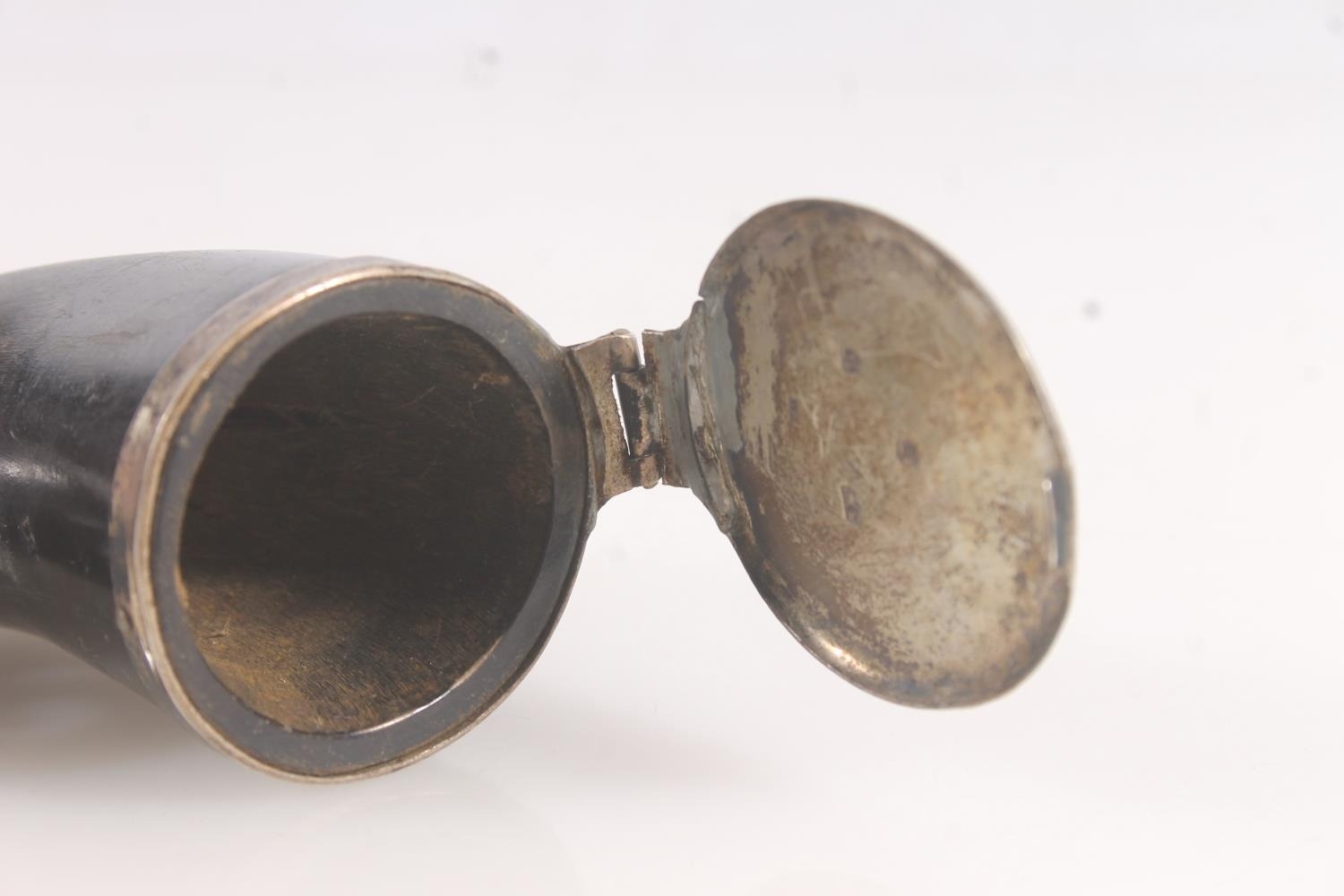 19thC horn snuff mull with hinged silver cap, L7.5cm.