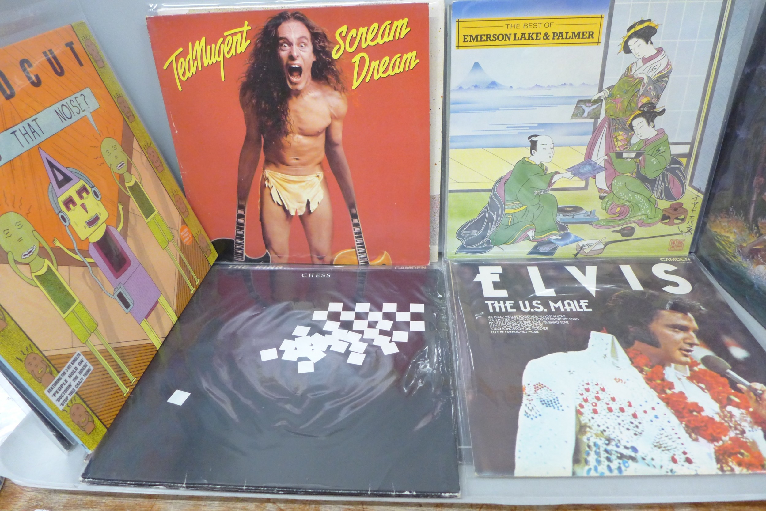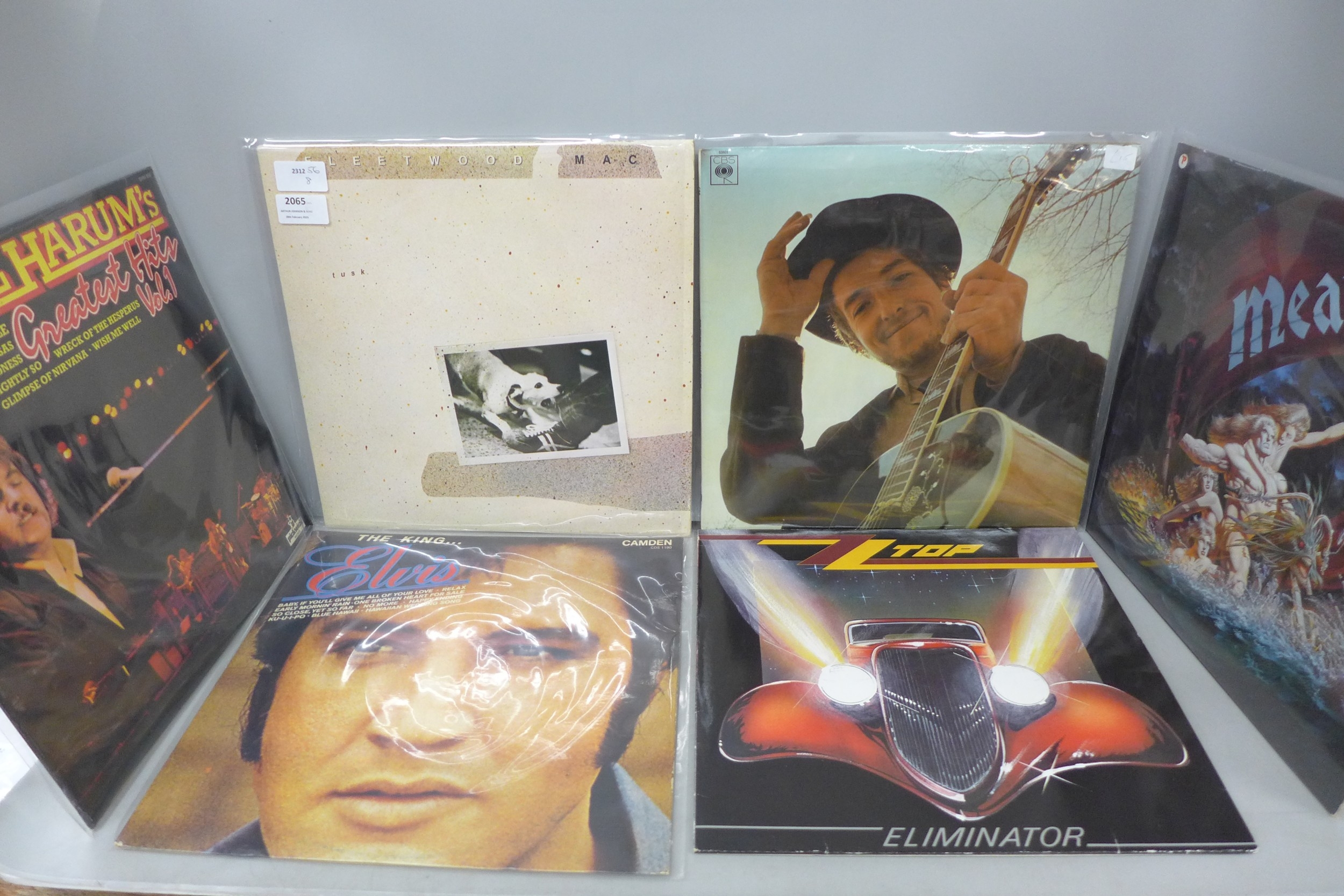 Eleven vinyl LPs, Fleetwood Mac, Bob Dylan, Elvis, Emerson, Lake and Palmer etc