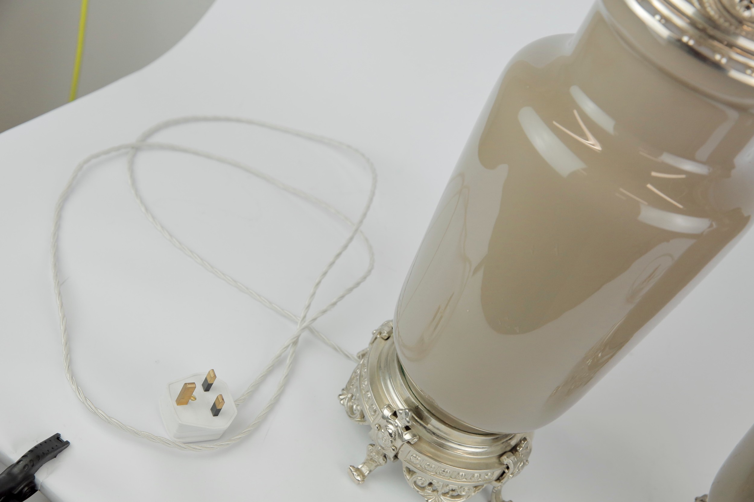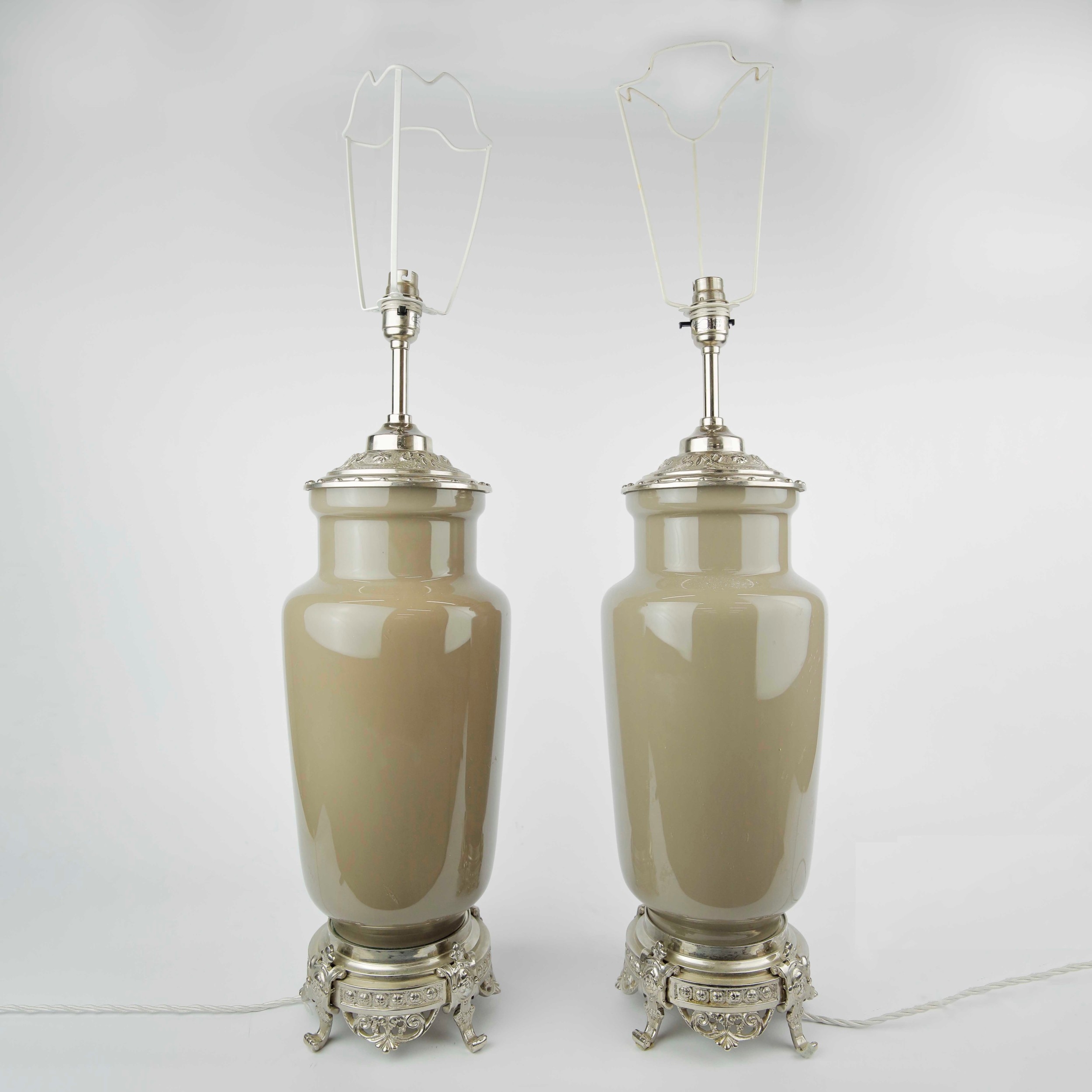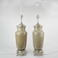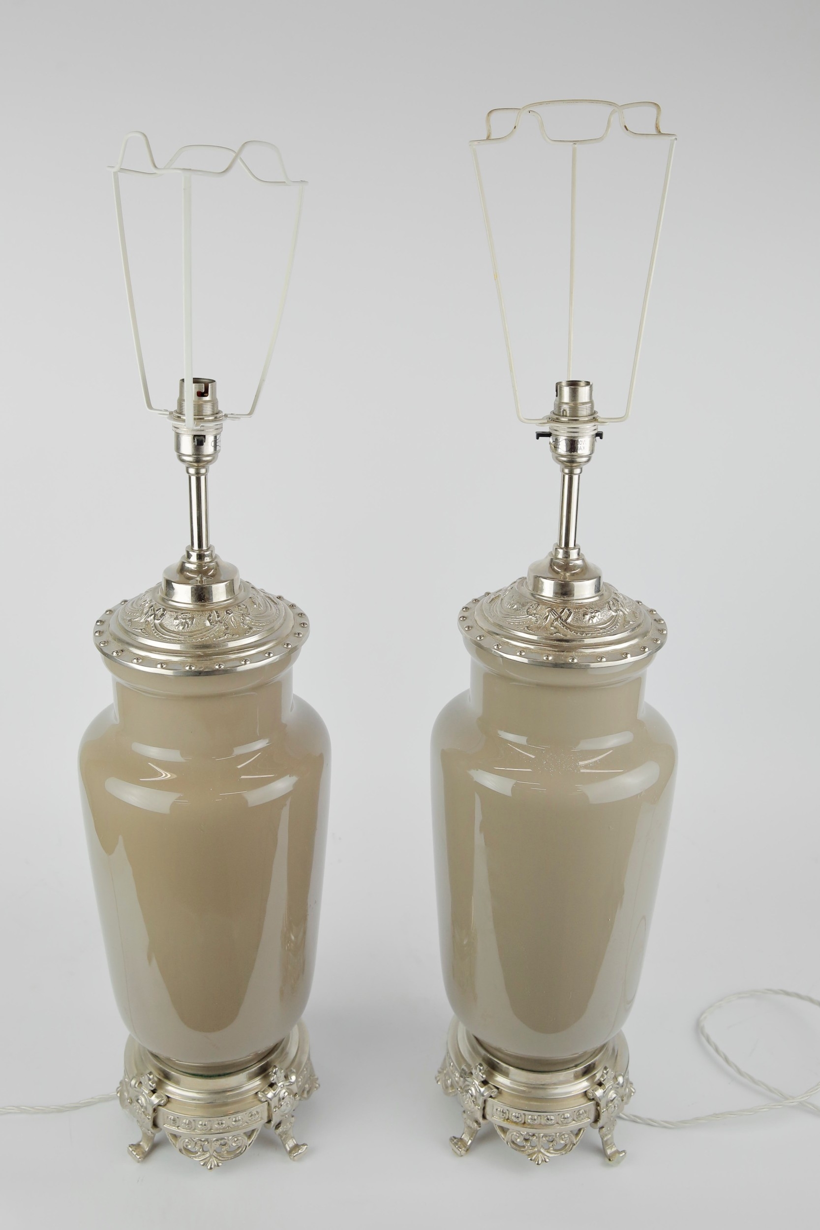 BELLA FIGURA TABLE LAMPS, A PAIR. with differing shade carriers, 58cm H each not including shade carriers approx. (2).