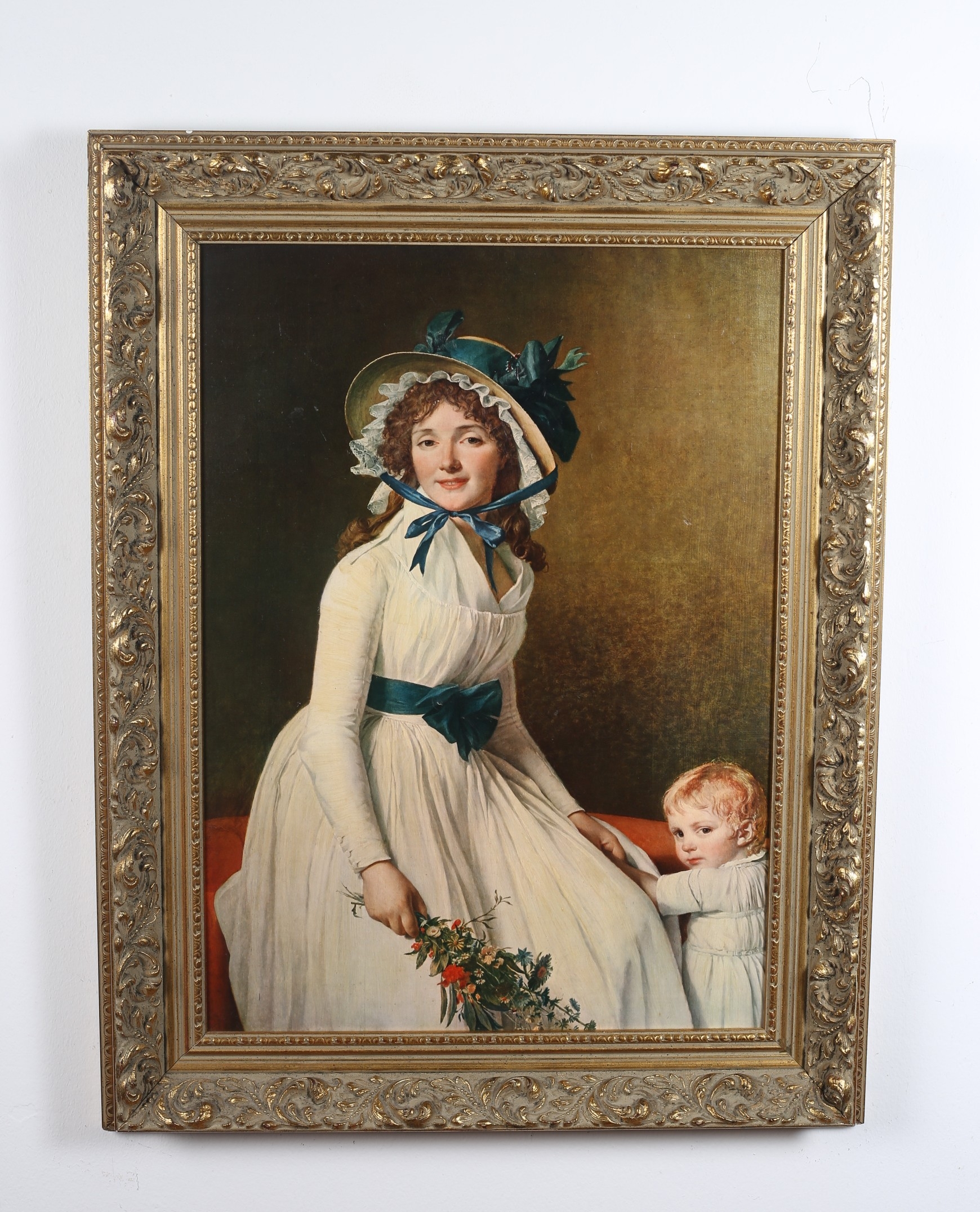 after JACQUES LOUIS DAVID Portrait of Madame Emilie Seriziat and her son An oleograph35cm (h) x 39cm (w)